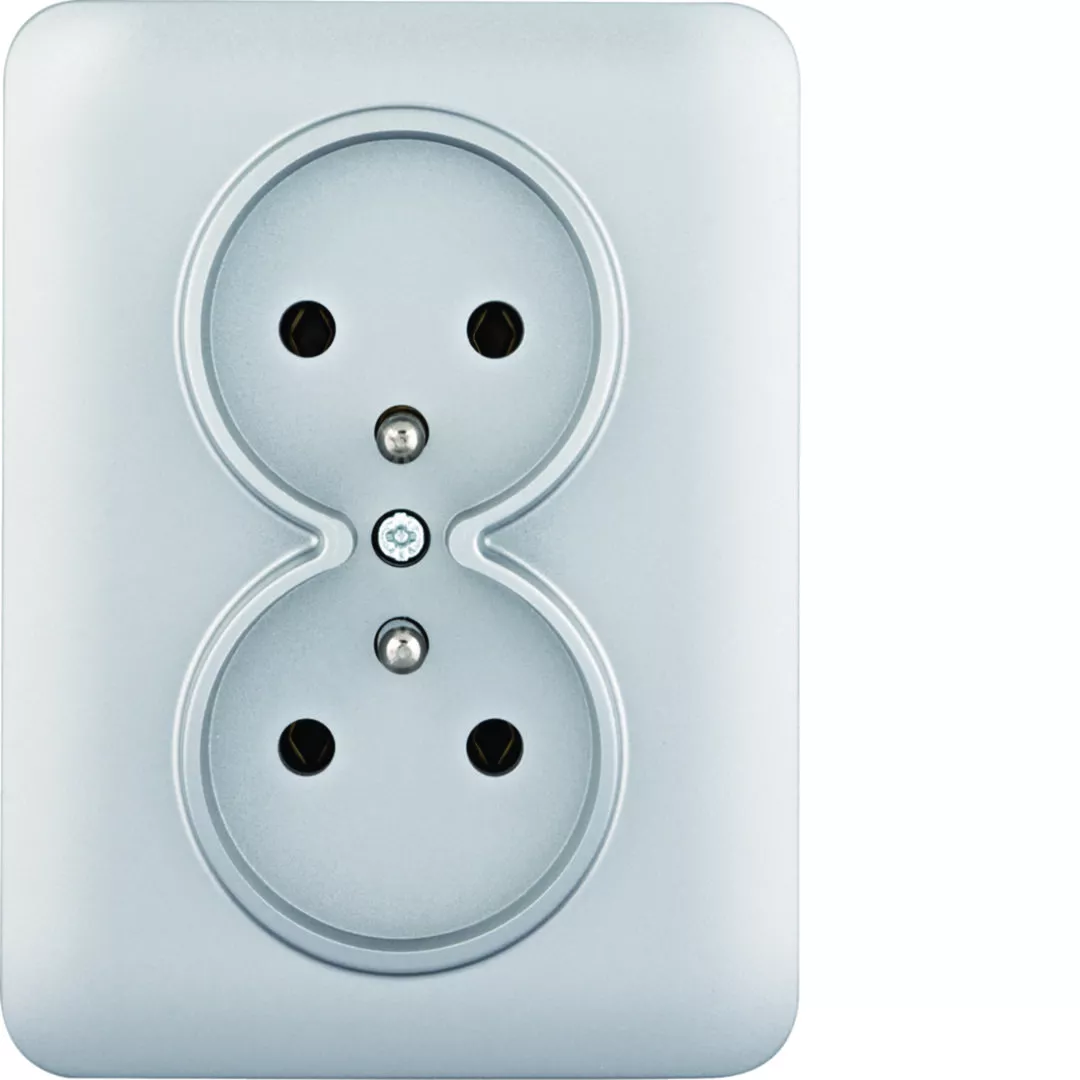 lumina Gniazdo z uziemieniem podwójne kompletne, srebrny