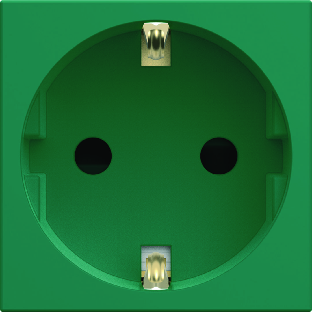 gallery Gniazdo schuko z przysłonami styków 2P+ E, 2M zielony