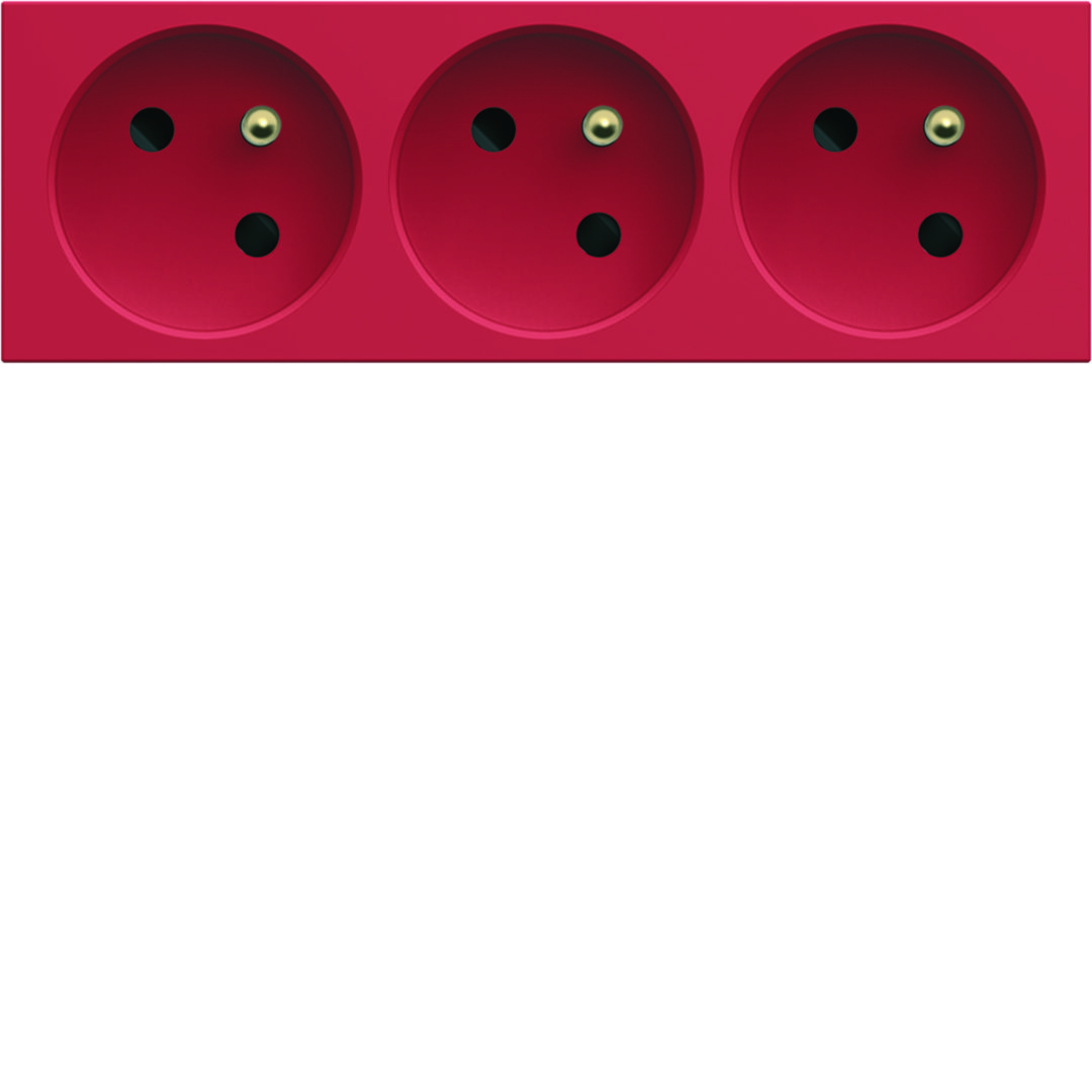 gallery Gniazdo z uziemieniem przelotowe potrójne 3x2P+E 16A 6M czerwony