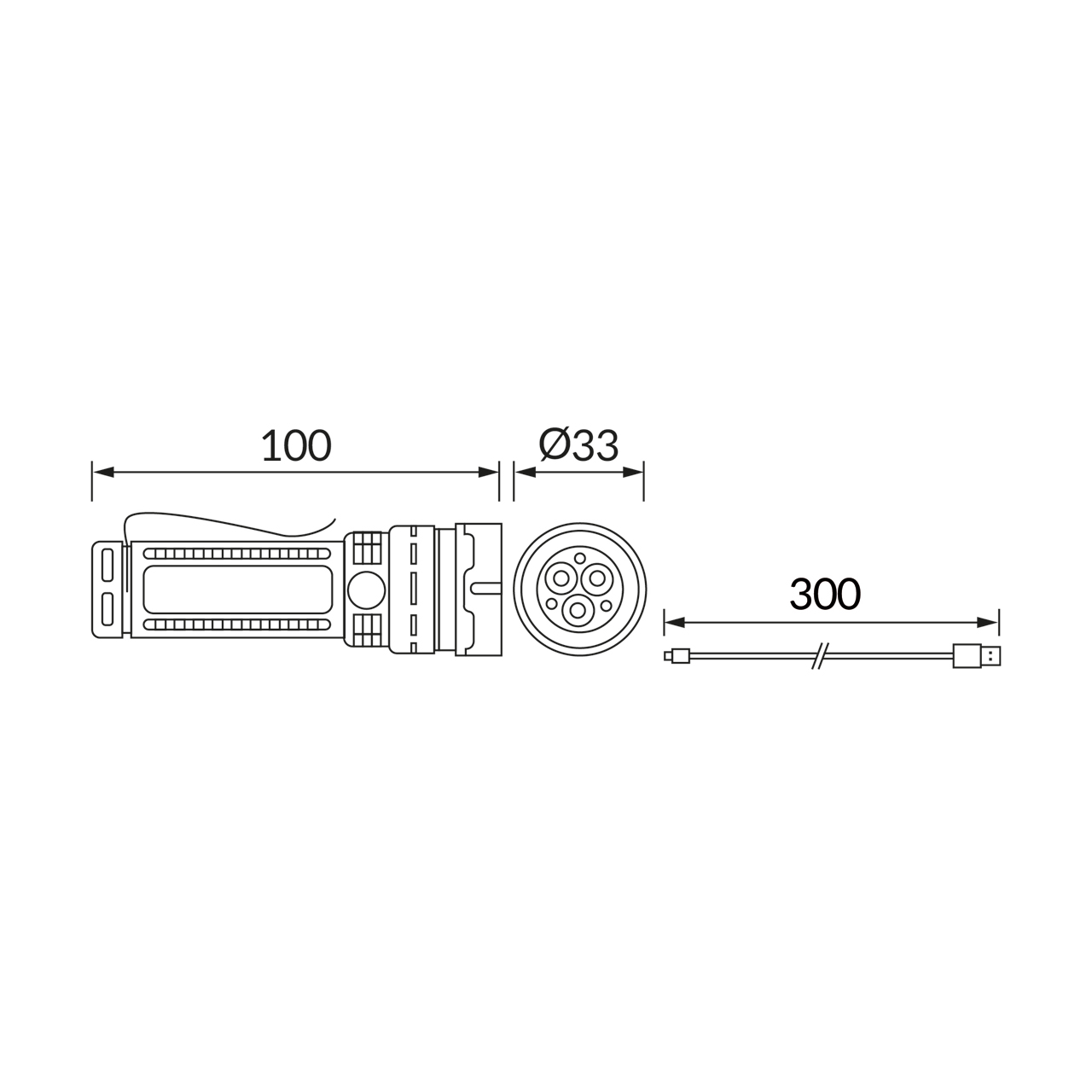 Parametr Wartość Typ PL Akumulatorowa latarka LED Zasilanie DC 5 V 2,1 A MAX USB-C Moc 1 W Kolor PL biały Źródło światła PL LED, w komplecie Wymiana źródła światła nie Temperatura barwowa 6500 Barwa światła PL zimnobiała Strumień świetlny 100 Kąt rozsyłu światłości 60 Ra 80 Klasa energetyczna F Trwałość źródła światła 0 Włącznik tak Regulacja kierunku świecenia nie IP 20 IK 0 Stosowanie na zewnątrz nie Minimalna odległość od oświetlanego obiektu 0.0 Klasa ochronności przed porażeniem elektrycznym 3 CE tak Materiał PL tworzywo sztuczne Uwagi PL akumulator w komplecie, czas świecenia dla jednego ładowania max 2 h, czas ładowania akumulatora 3 h, tryby pracy: wyłączone-> 100%-> 50%-> stroboskop-> wyłączone, przewód USB-C