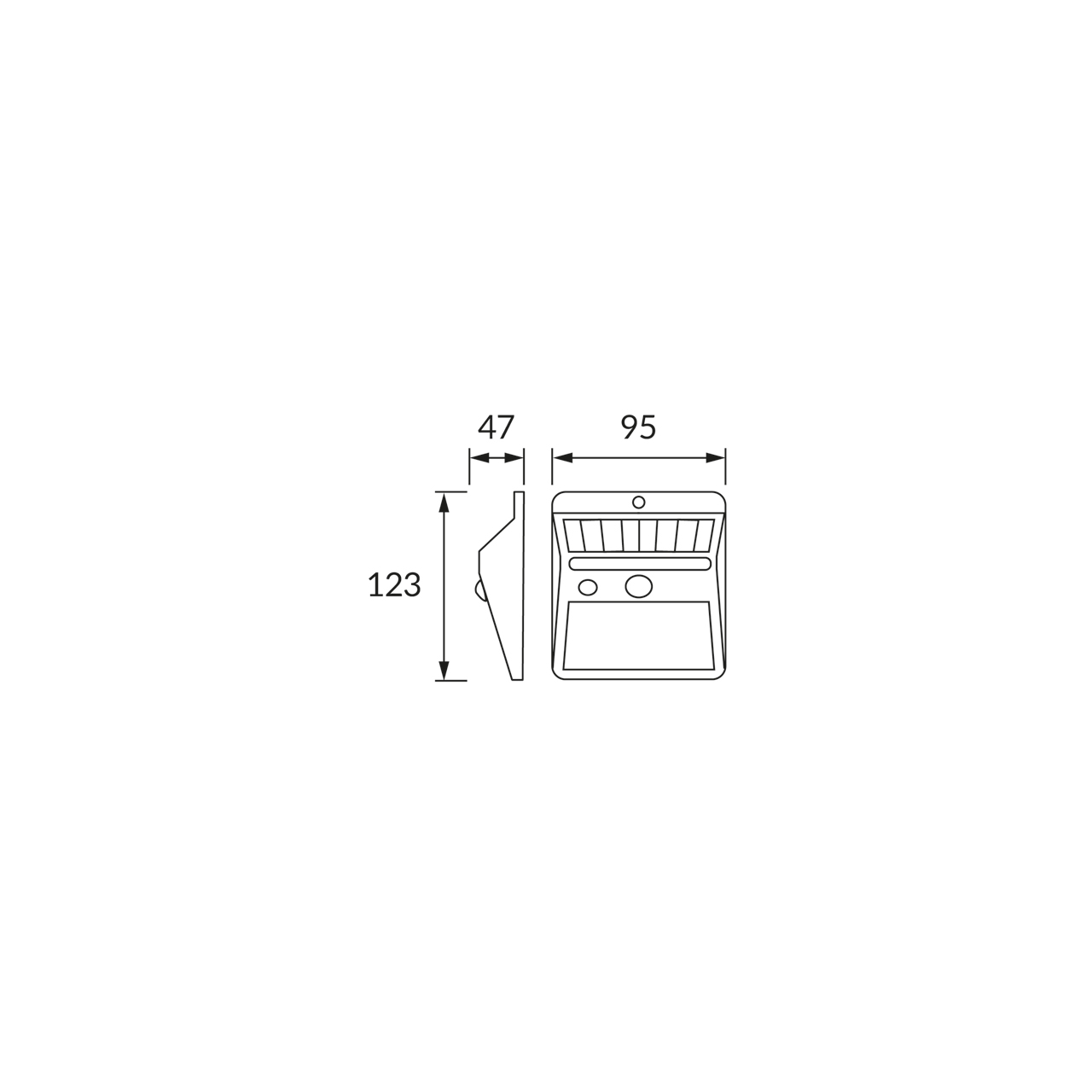 Parametr Wartość Typ PL Lampa solarna LED z czujnikiem ruchu Zasilanie DC 3,7 V 1200 mAh Li-ion Moc 2 W Kolor PL czarny Źródło światła PL LED, w komplecie Wymiana źródła światła nie Temperatura barwowa 6500 Barwa światła PL zimnobiała Strumień świetlny 200 Kąt rozsyłu światłości 160 Ra 80 Trwałość źródła światła 0 Włącznik tak Regulacja kierunku świecenia nie IP 44 IK 0 Stosowanie na zewnątrz tak Minimalna odległość od oświetlanego obiektu 0.0 Klasa ochronności przed porażeniem elektrycznym 3 CE tak Materiał PL ABS Uwagi PL akumulator w komplecie, czujnik ruchu PIR w komplecie, działa przy świetle otoczenia < 40 lx, kąt działania czujnika 120°, zasięg wykrywania ruchu < 4 m (< 24°C), czas świecenia 15 s 100%