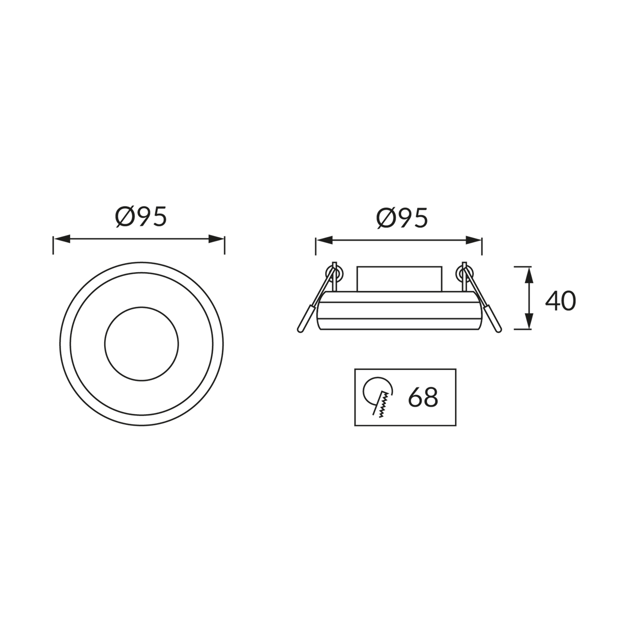 Parametr Wartość Typ PL Pierścień ozdobny Moc max 35 W Kolor PL czarny Źródło światła PL LED - GU10/MR16 Wymiana źródła światła tak Kąt rozsyłu światłości 0 Ra 0 Trwałość źródła światła 0 Włącznik nie Regulacja kierunku świecenia nie IP 20 IK 0 Stosowanie na zewnątrz nie Minimalna odległość od oświetlanego obiektu 0.0 CE tak Materiał PL odlew stopu aluminium, szkło akrylowe Otwór montażowy x 68 Otwór montażowy y 68