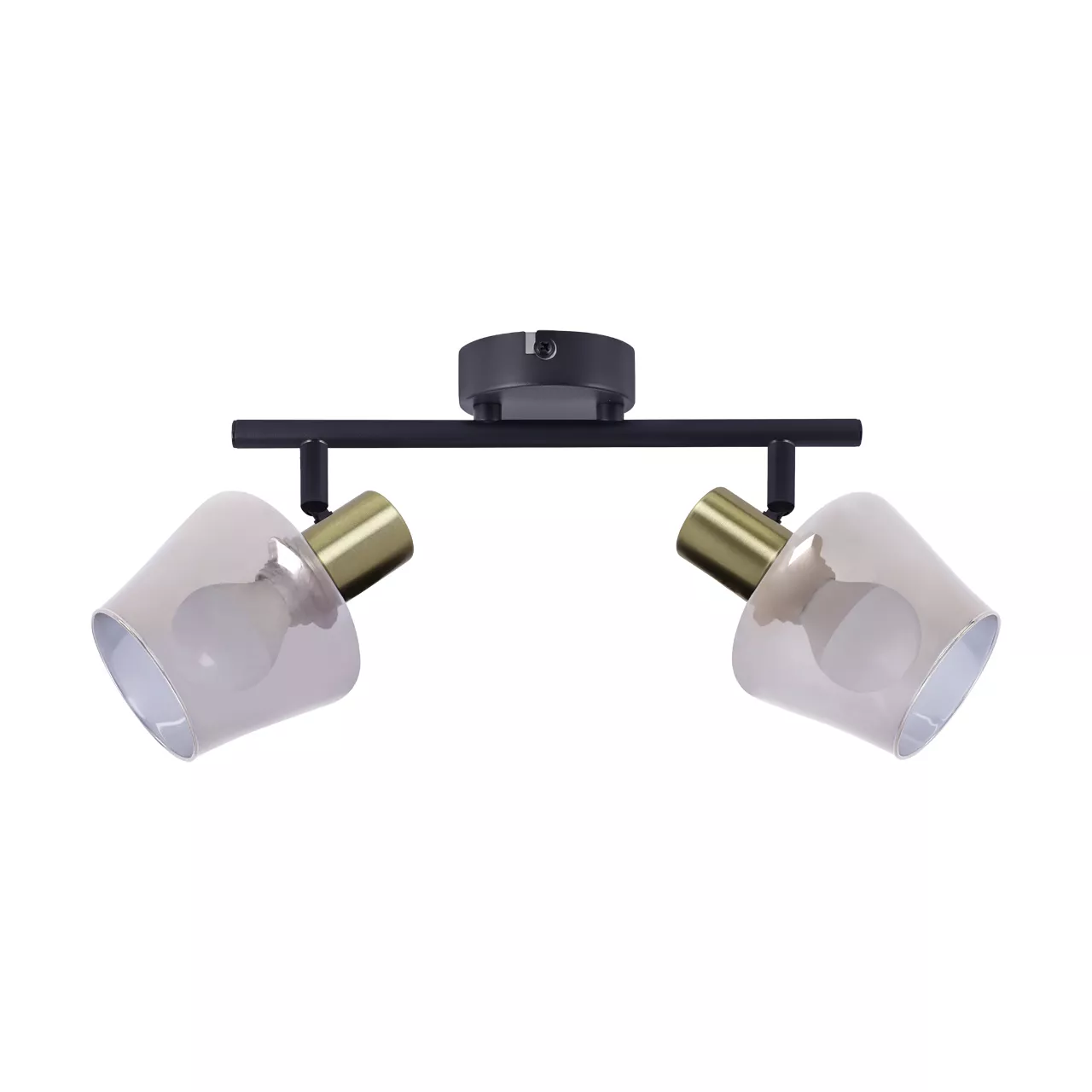 Parametr Wartość Typ PL Oprawa ścienno-sufitowa Zasilanie 220-240V 50/60Hz Moc 2 x max 40 W Kolor PL czarny/złoty Trzonek E14 Źródło światła PL LED Wymiana źródła światła tak Kąt rozsyłu światłości 0 Ra 0 Trwałość źródła światła 0 Włącznik nie Regulacja kierunku świecenia tak IP 20 IK 0 Stosowanie na zewnątrz nie Minimalna odległość od oświetlanego obiektu 0.0 Klasa ochronności przed porażeniem elektrycznym 1 CE tak Materiał PL blacha stalowa, szkło