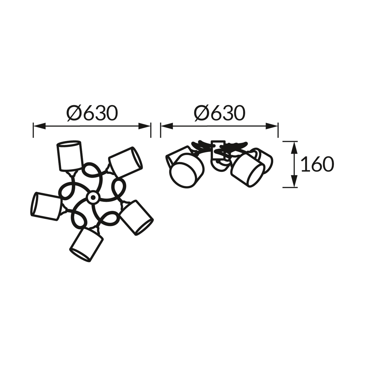 Parametr Wartość Typ PL Oprawa sufitowa Zasilanie 220-240V 50/60Hz Moc 5 x max 40 W Kolor PL czarny/złoty Trzonek E27 Źródło światła PL LED Wymiana źródła światła tak Kąt rozsyłu światłości 0 Ra 0 Trwałość źródła światła 0 Włącznik nie Regulacja kierunku świecenia nie IP 20 IK 0 Stosowanie na zewnątrz nie Minimalna odległość od oświetlanego obiektu 0.0 Klasa ochronności przed porażeniem elektrycznym 1 CE tak Materiał PL blacha stalowa, szkło