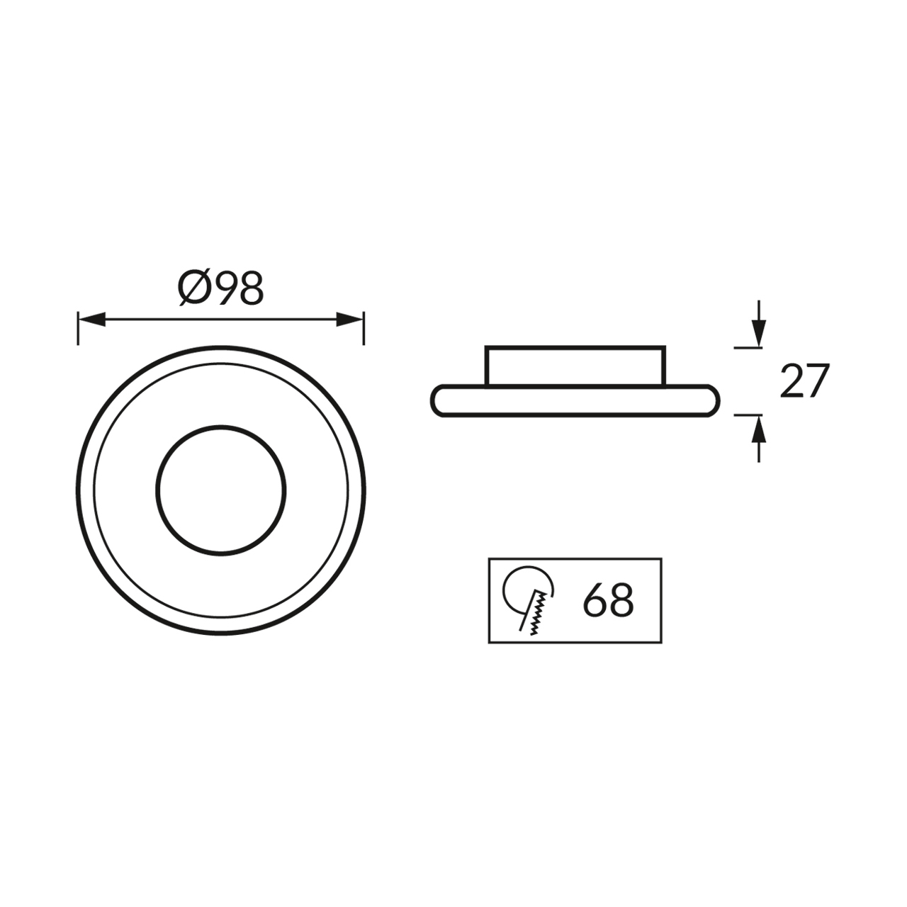Parametr Wartość Typ PL Pierścień ozdobny Moc max 35 W Kolor PL biały/czarny Źródło światła PL LED - GU10/MR16 Wymiana źródła światła tak Kąt rozsyłu światłości 0 Ra 0 Trwałość źródła światła 0 Włącznik nie Regulacja kierunku świecenia nie IP 20 IK 0 Stosowanie na zewnątrz nie Minimalna odległość od oświetlanego obiektu 0.0 CE tak Materiał PL aluminium Otwór montażowy x 68 Otwór montażowy y 68