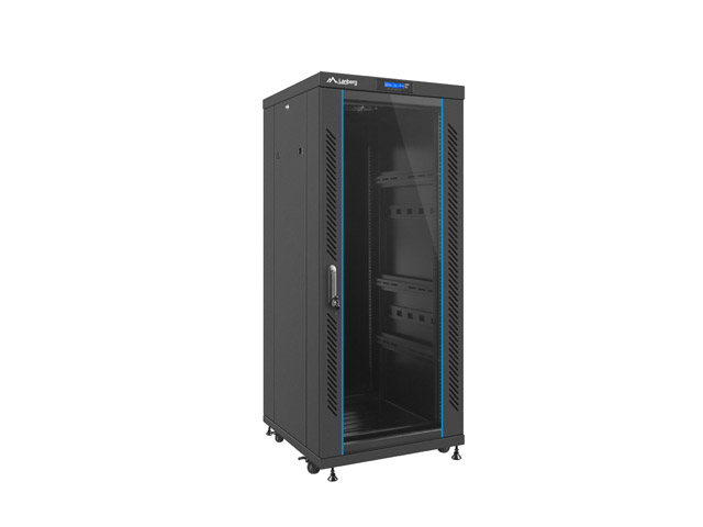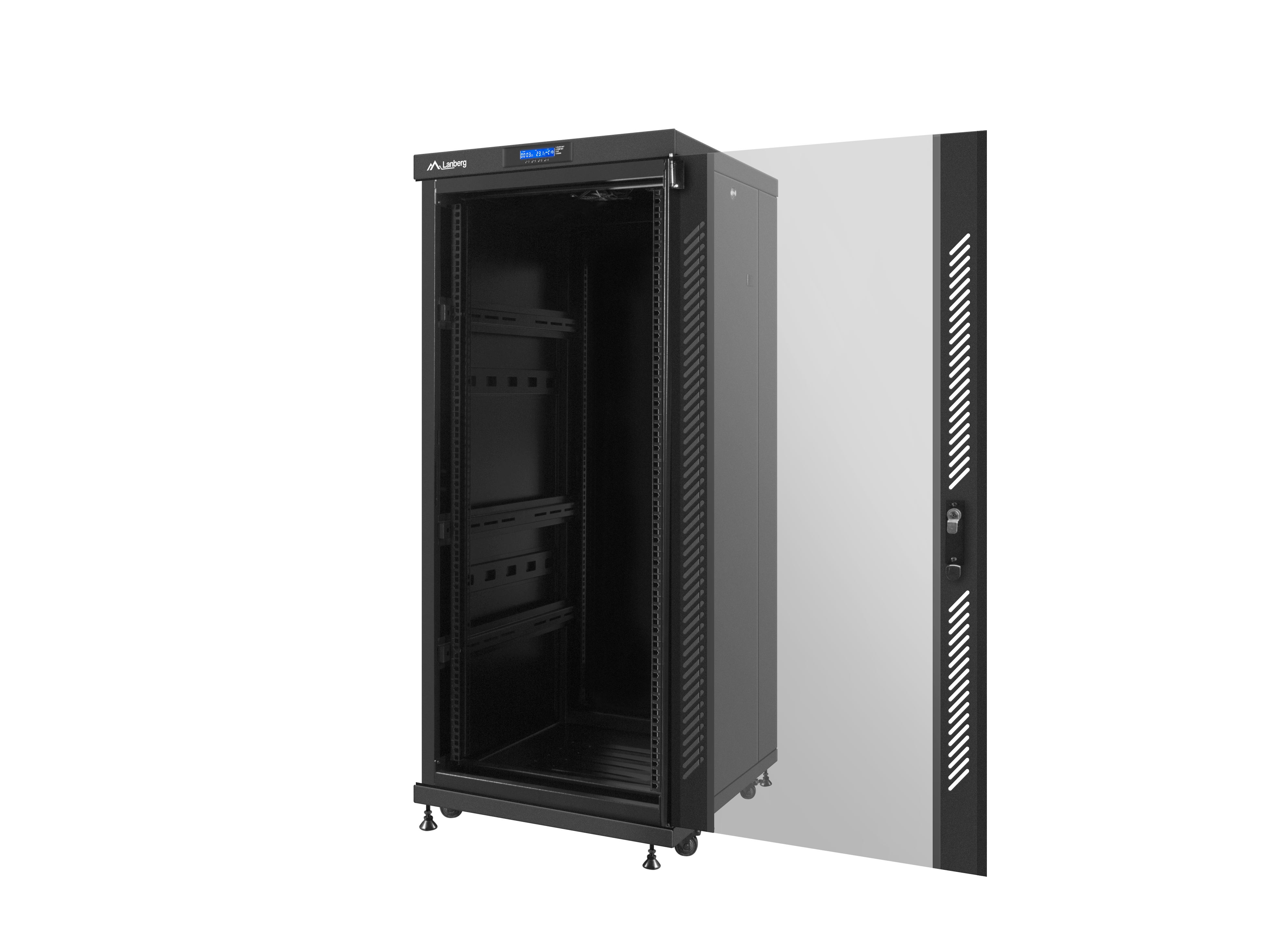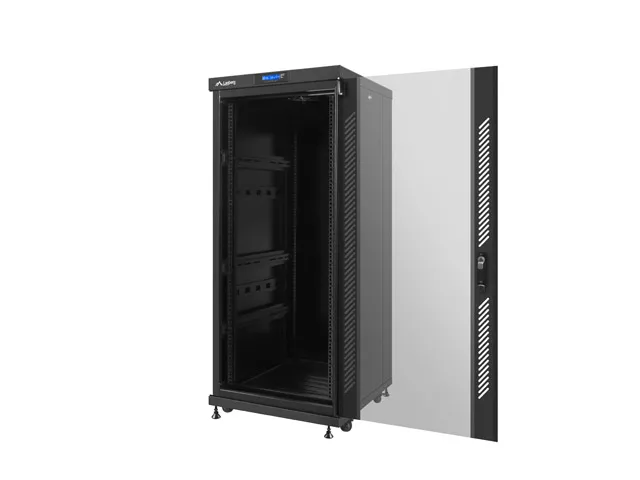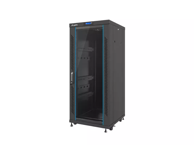 Szafa stojąca jednosekcyjna Lanberg FF02-6627L-12B to rozwiązanie z całkowicie nową konstrukcją przeznaczone do budowy sieci, montażu okablowania oraz sprzętu w rozmiarze 19” o maksymalnym łącznym udźwigu do 800 kg.