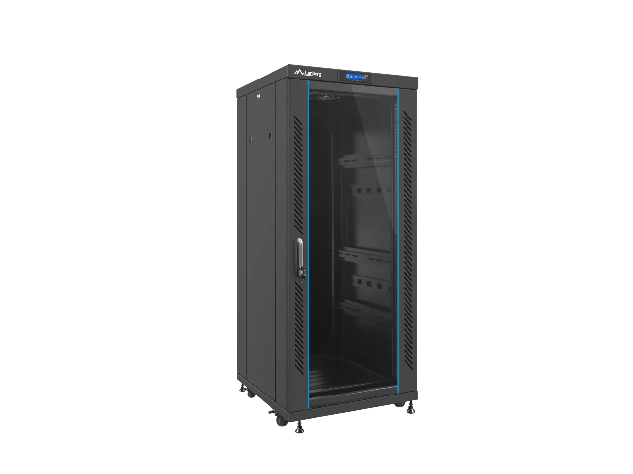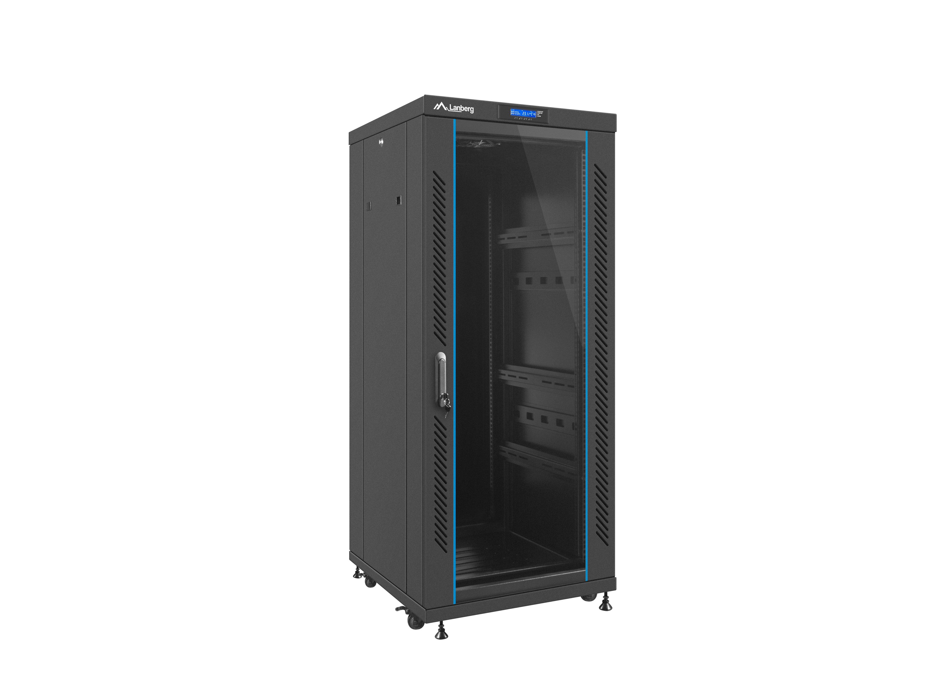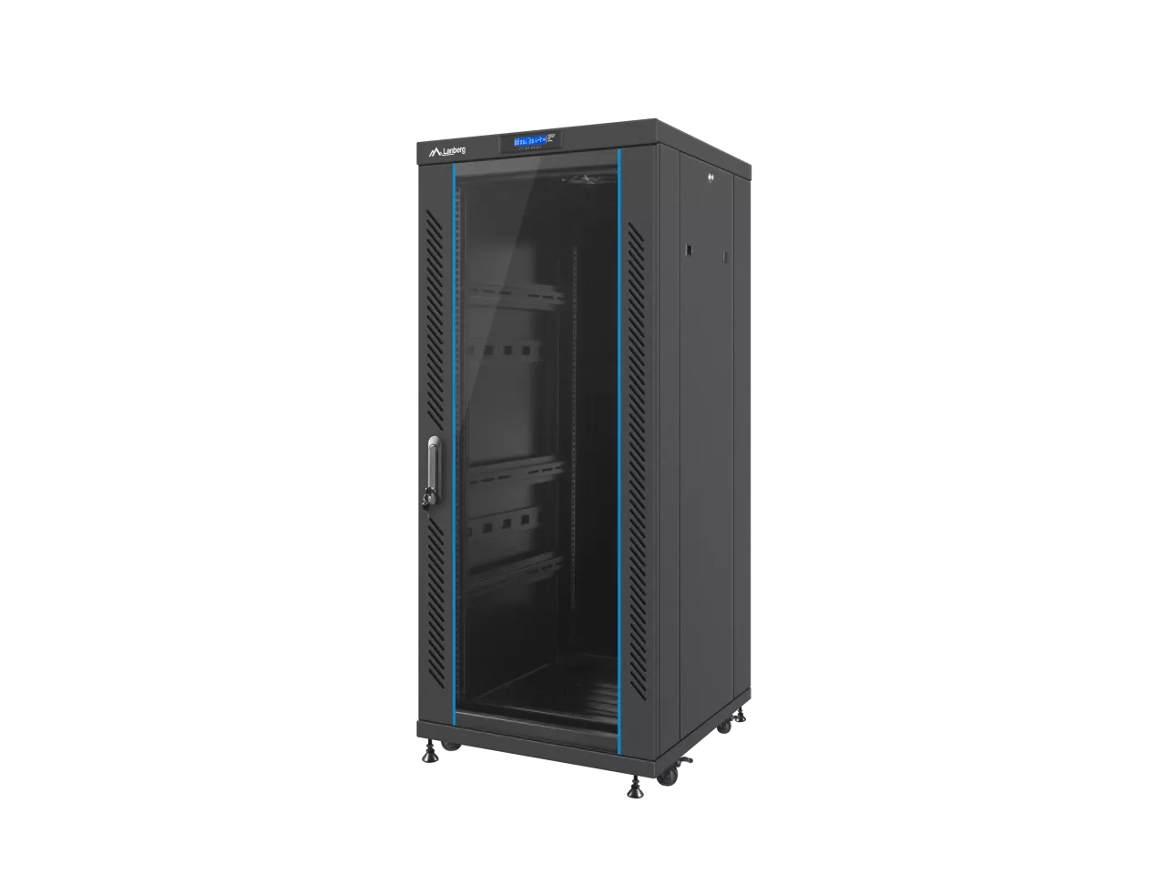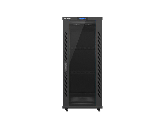SZAFA INSTALACYJNA RACK STOJĄCA 19" 27U 600X600 CZARNA DRZWI SZKLANE LCD LANBERG (FLAT PACK)
