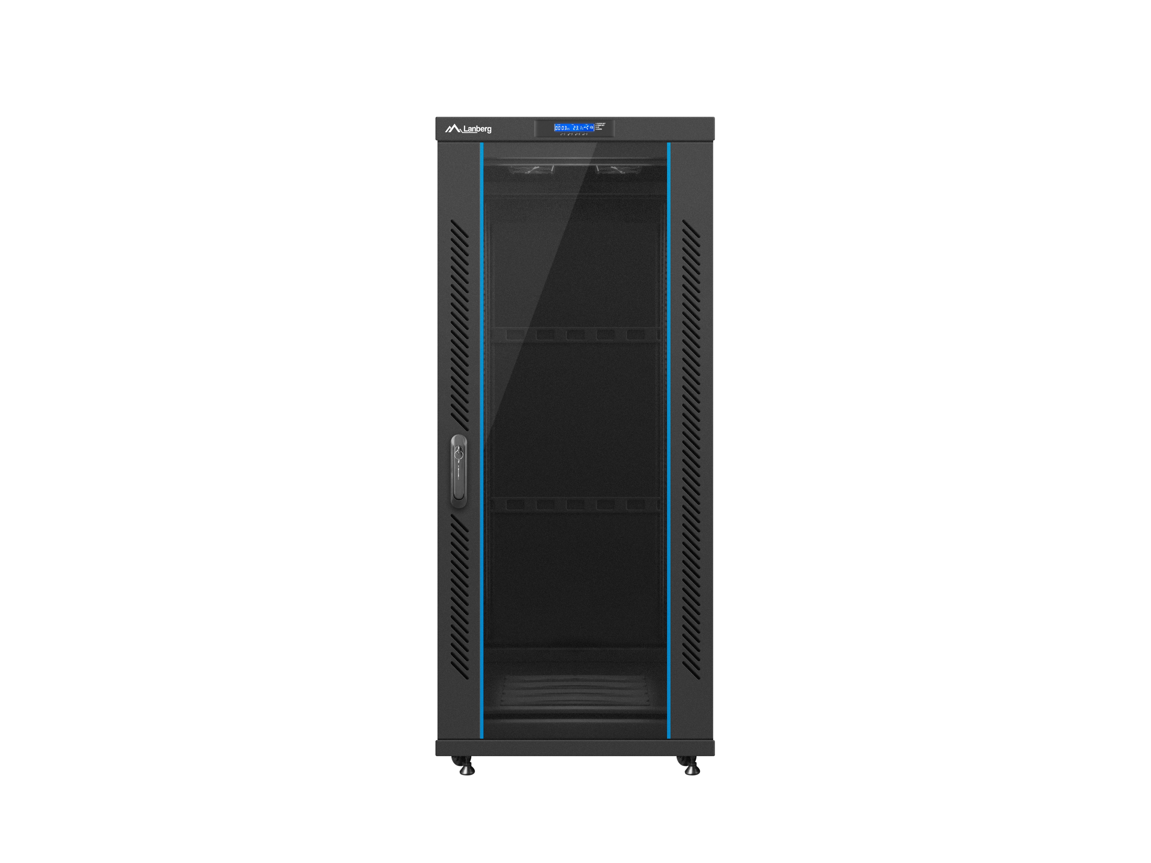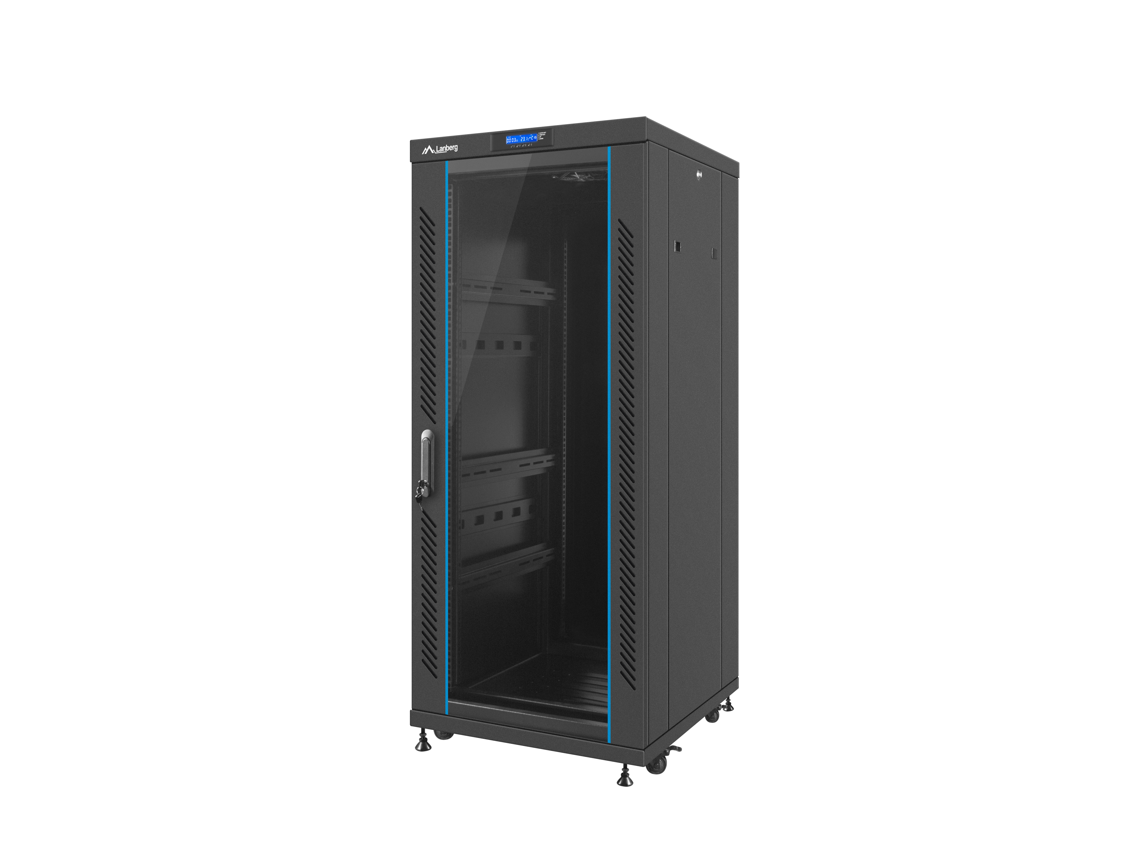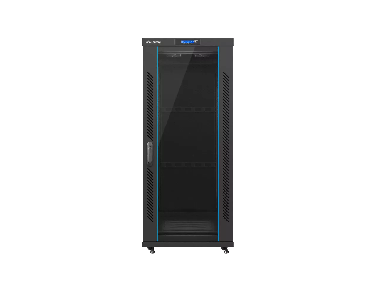 SZAFA INSTALACYJNA RACK STOJĄCA 19" 27U 600X600 CZARNA DRZWI SZKLANE LCD LANBERG (FLAT PACK)