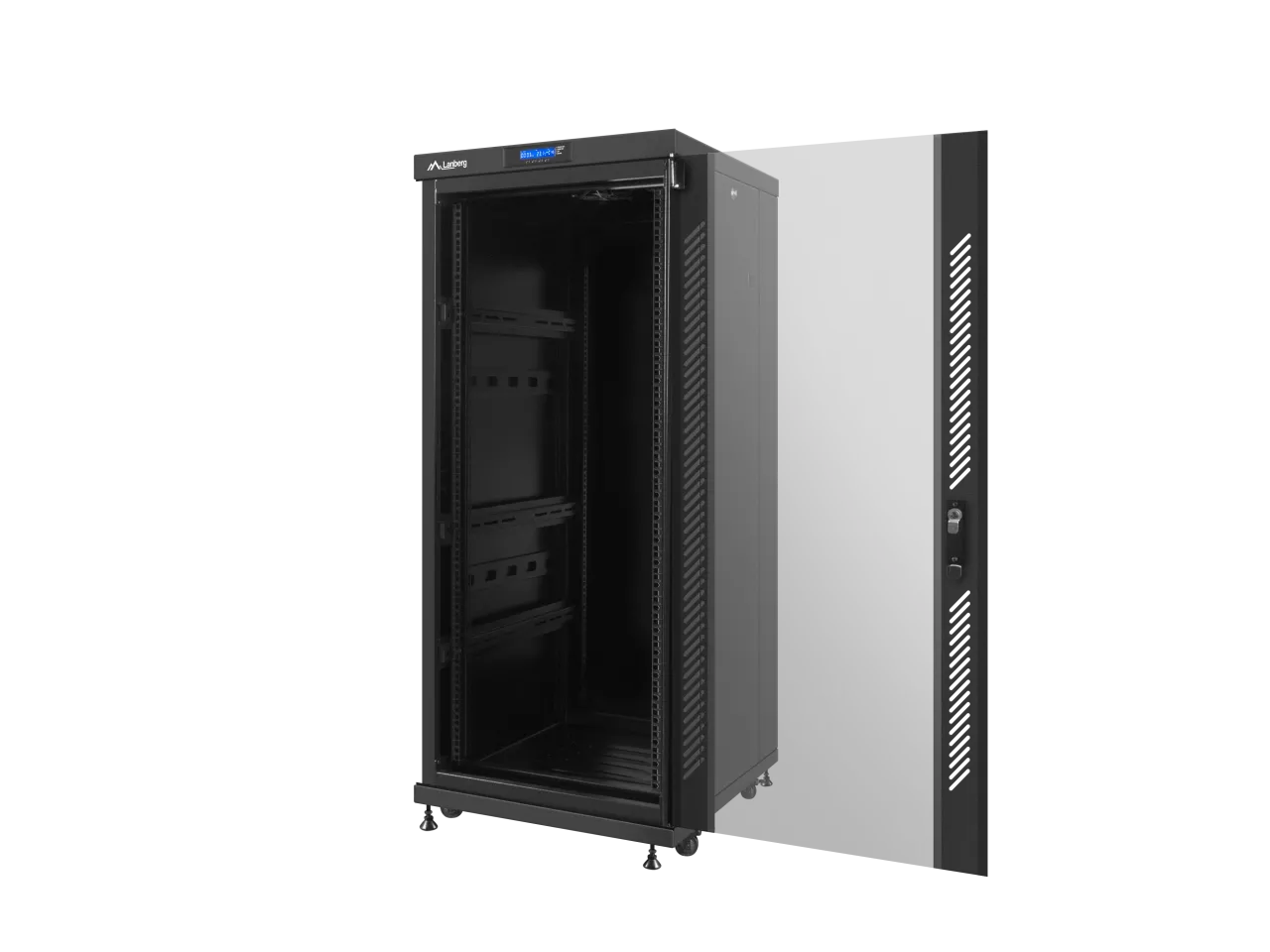 Montaż drzwi jest bardzo prosty i elastyczny – można je zamontować lewo- lub prawo-stronnie. Panele boczne szafy FF02 można łatwo zdemontować, dzięki czemu montaż szerokich urządzeń sieciowych nie będzie problemem. Wszystkie drzwi / panele boczne są wyposażone w zamki boczne.