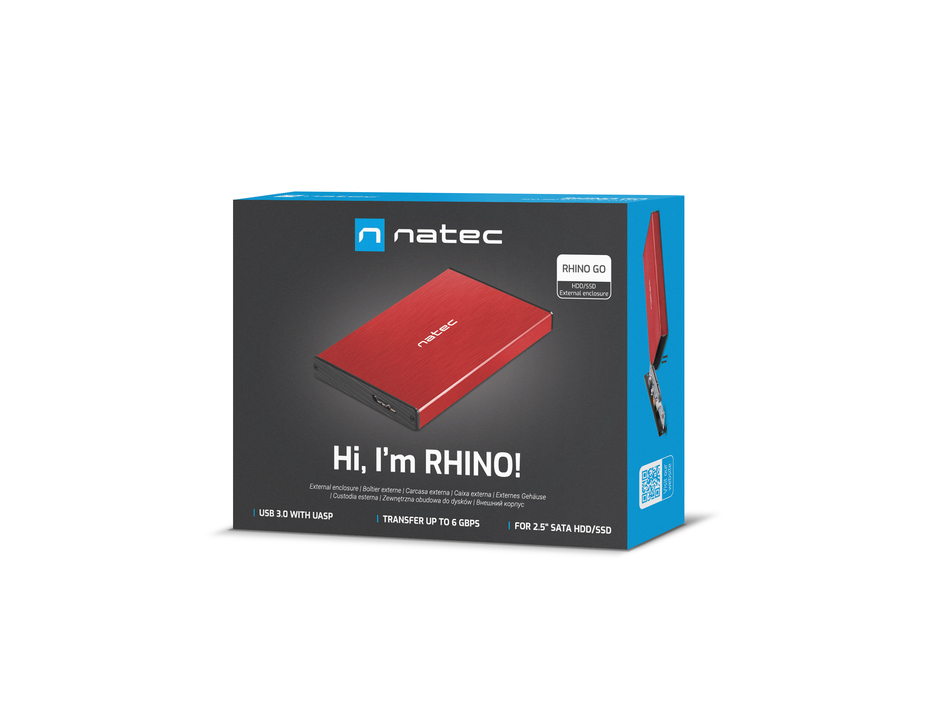 OBUDOWA HDD/SSD ZEWNĘTRZNA NATEC RHINO GO SATA 2.5" USB 3.0 CZERWONA