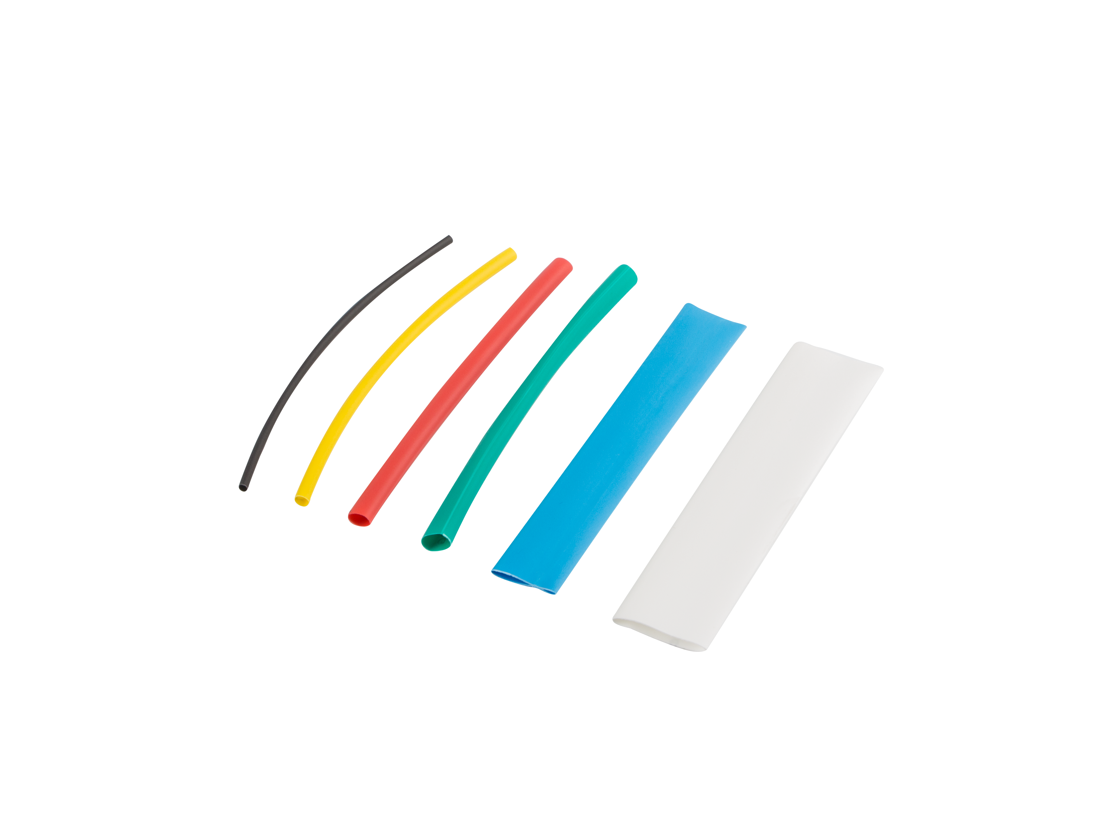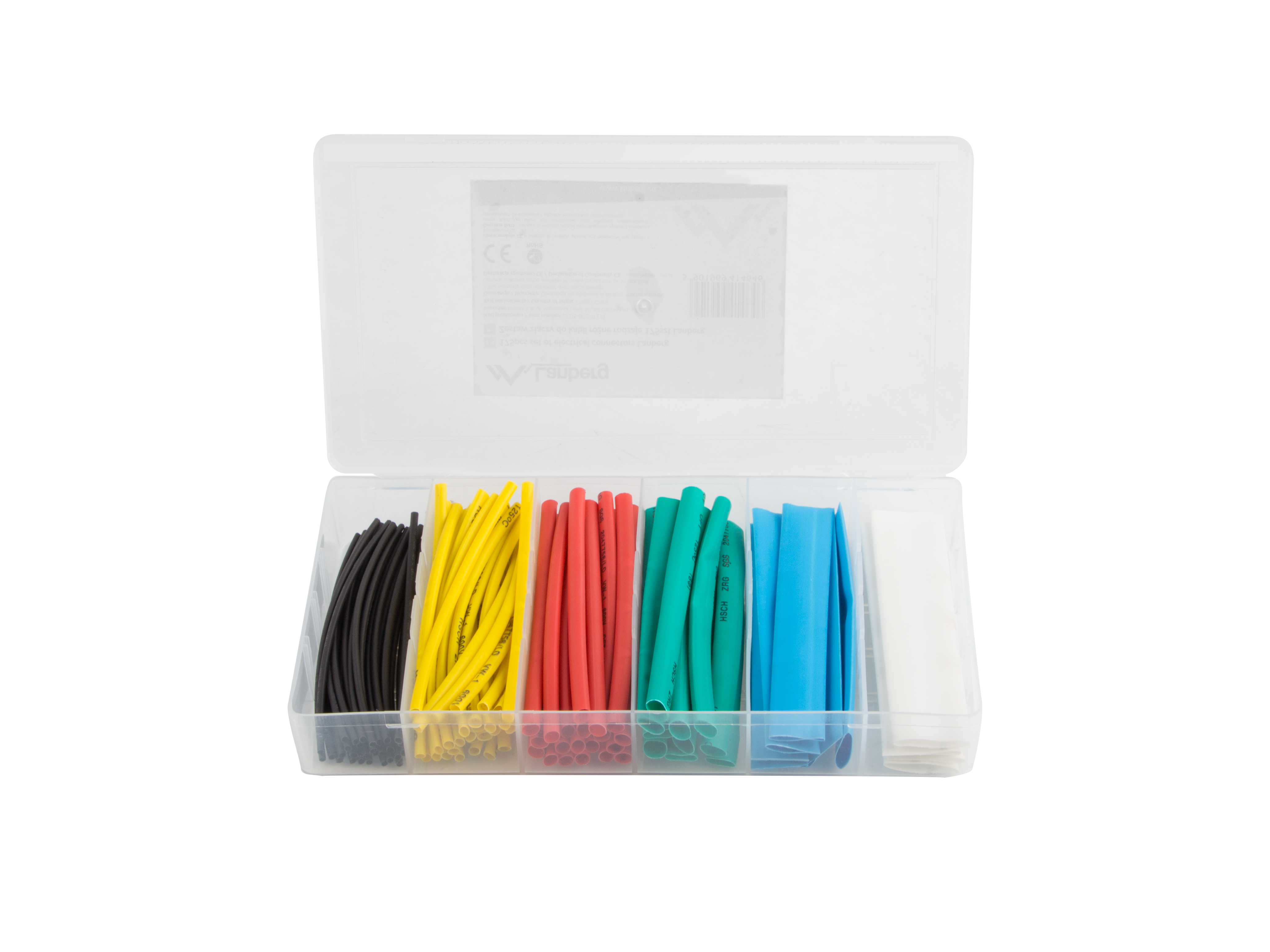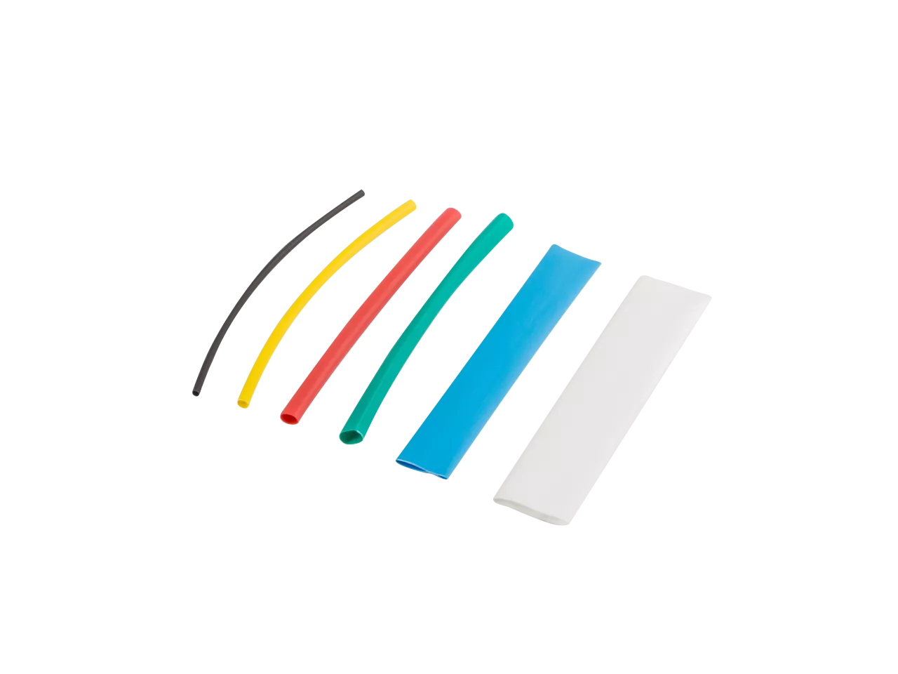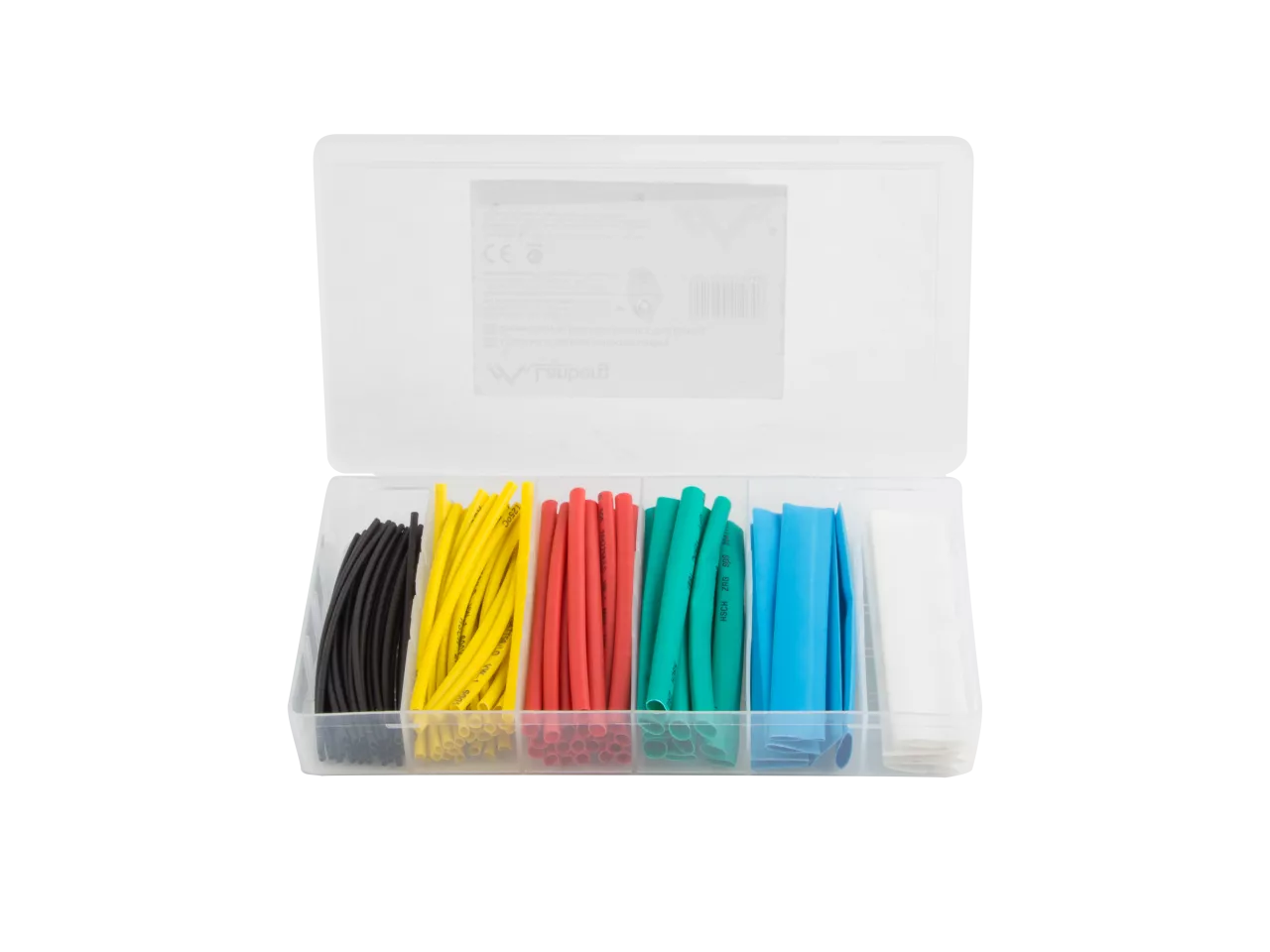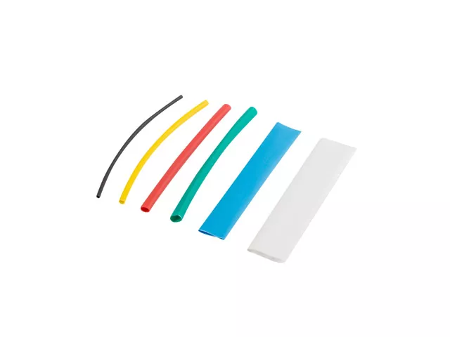 Zestaw kolorowych rurek termokurczliwych o długości 100mm. Całość znajduje się w przezroczystym opakowaniu. Średnice: 1,5mm czarne - 30szt 2,5mm żółte - 30szt 4mm czerwone - 20szt 6mm zielone - 10szt 10mm niebieskie - 6szt 13mm białe - 4szt