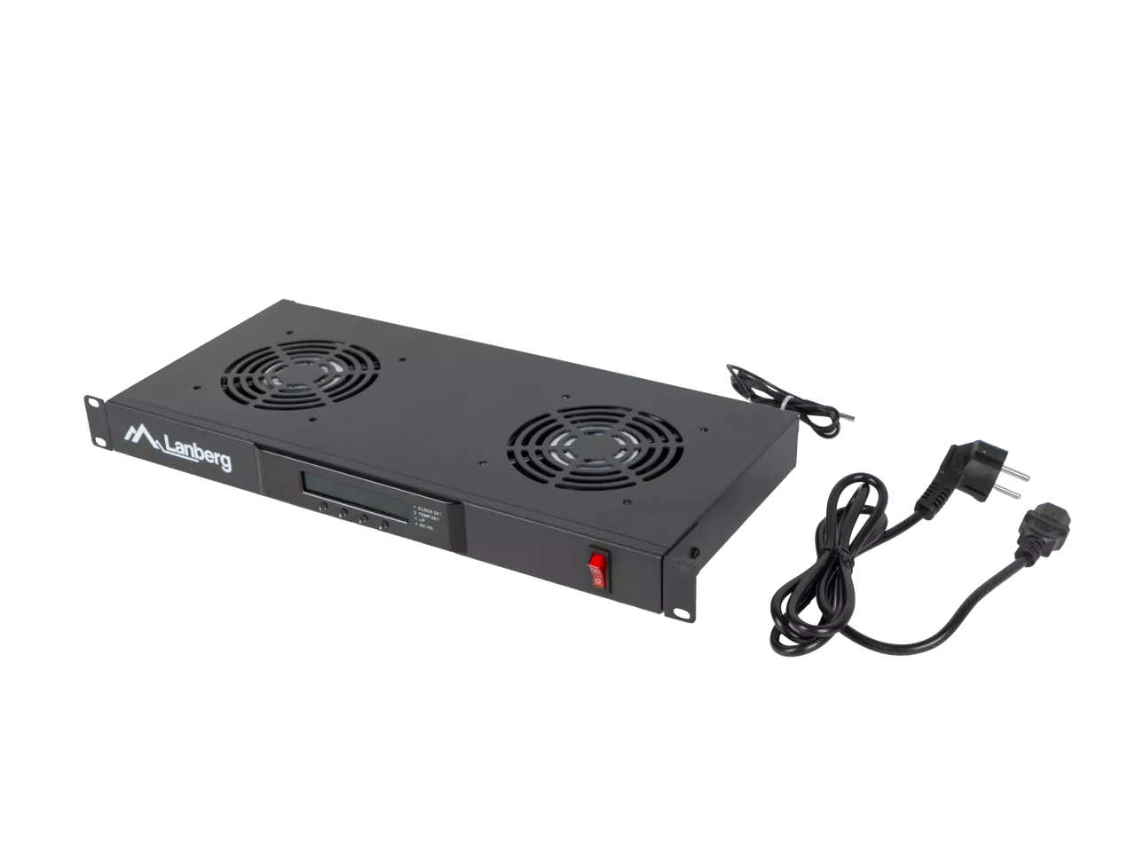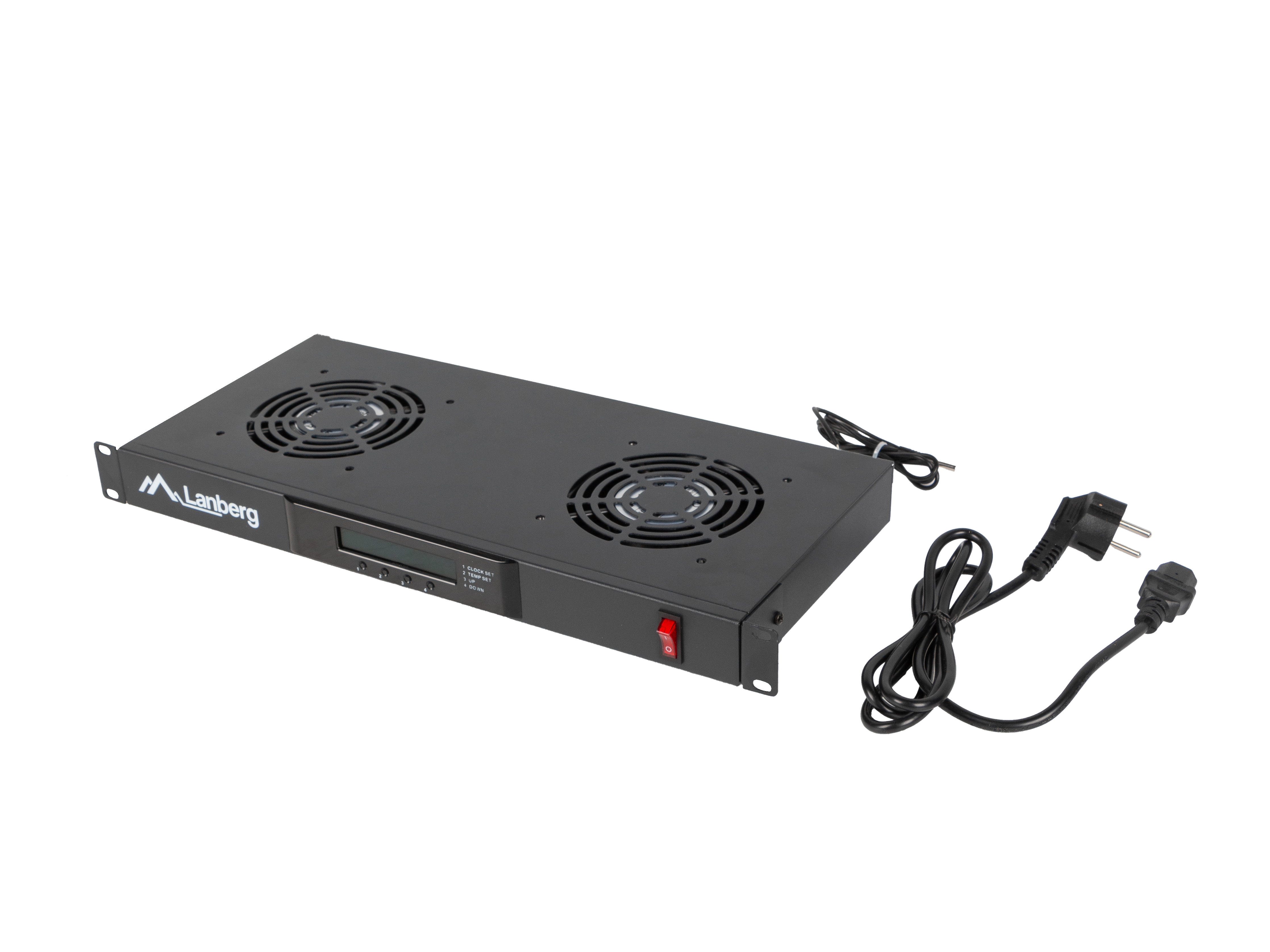 Poziomy panel wentylacyjny LCD 1U 230V Lanberg z 2 wentylatorami + termostatem przeznaczony do szaf 19".