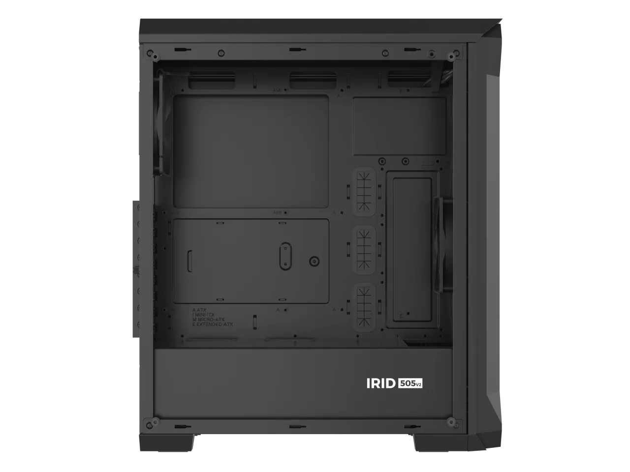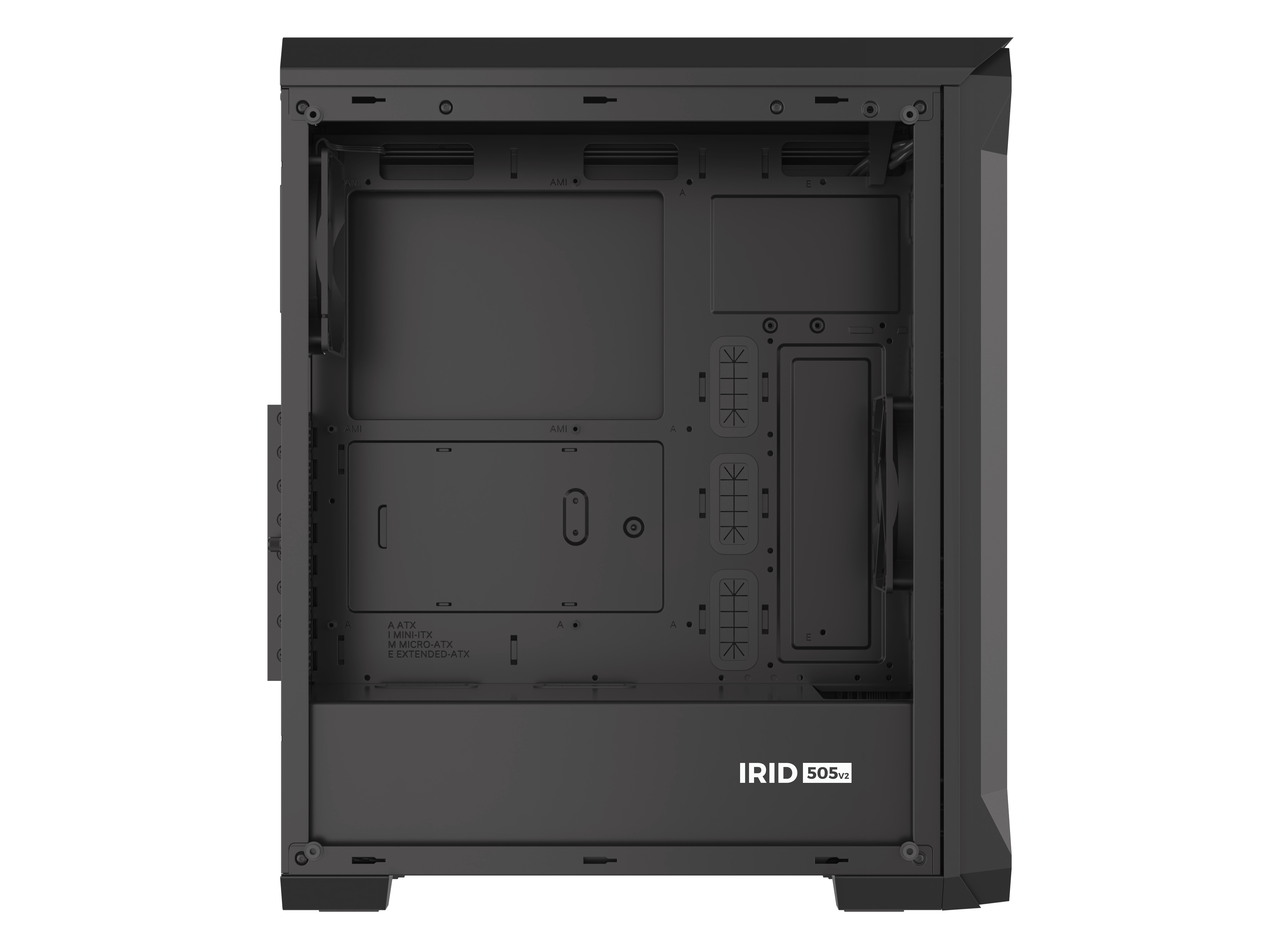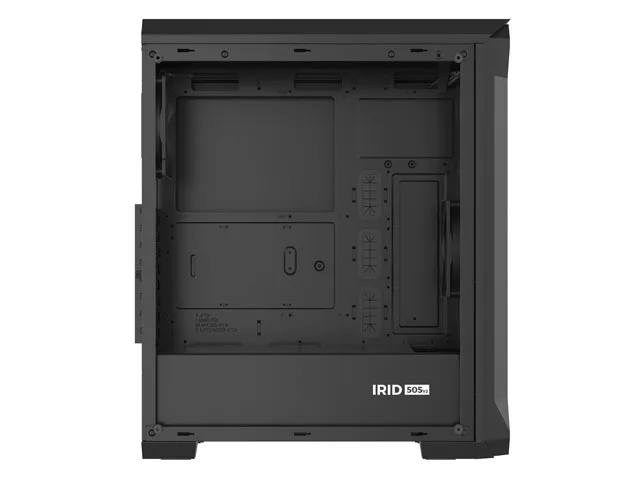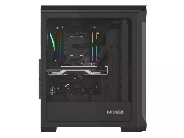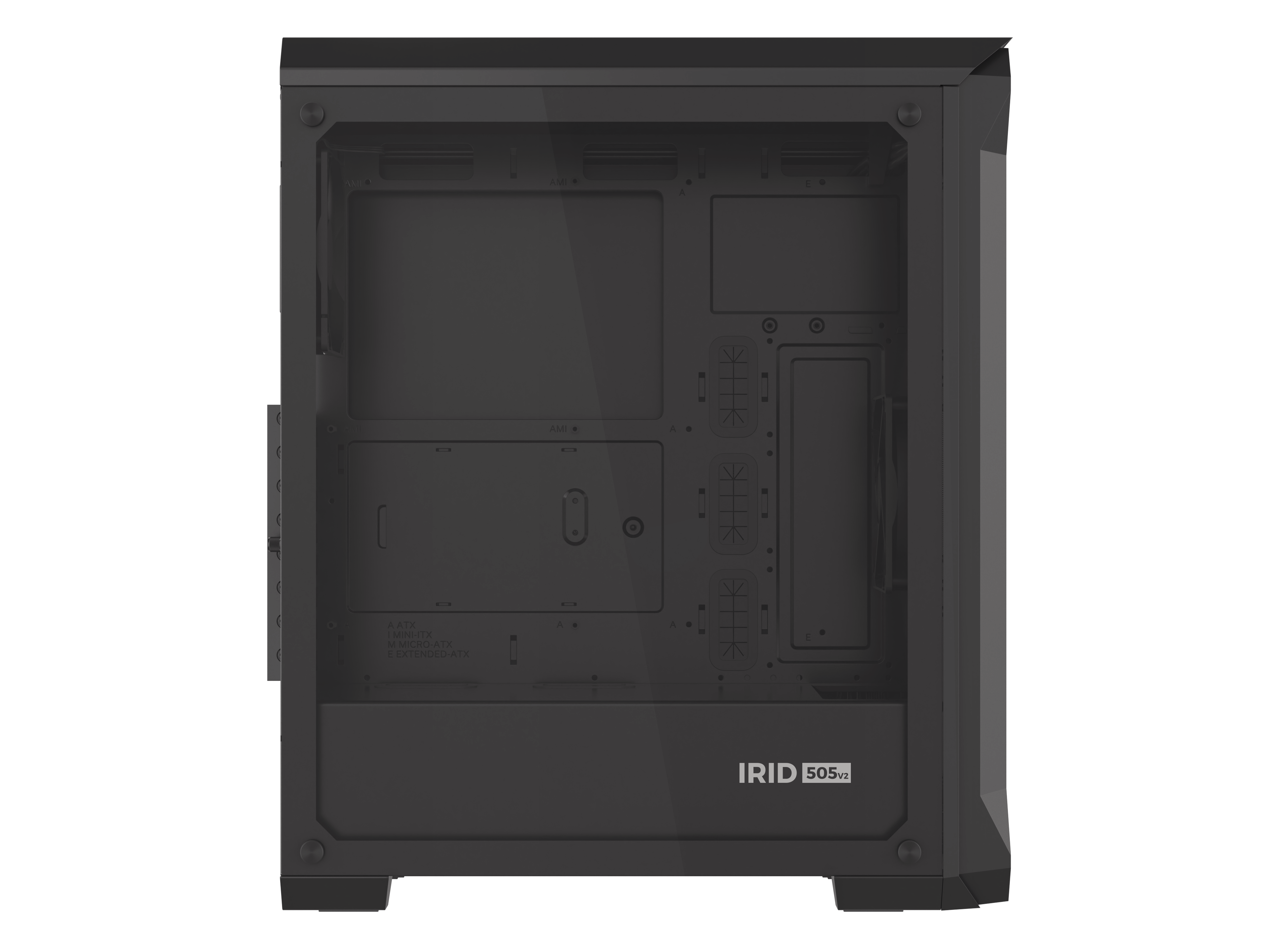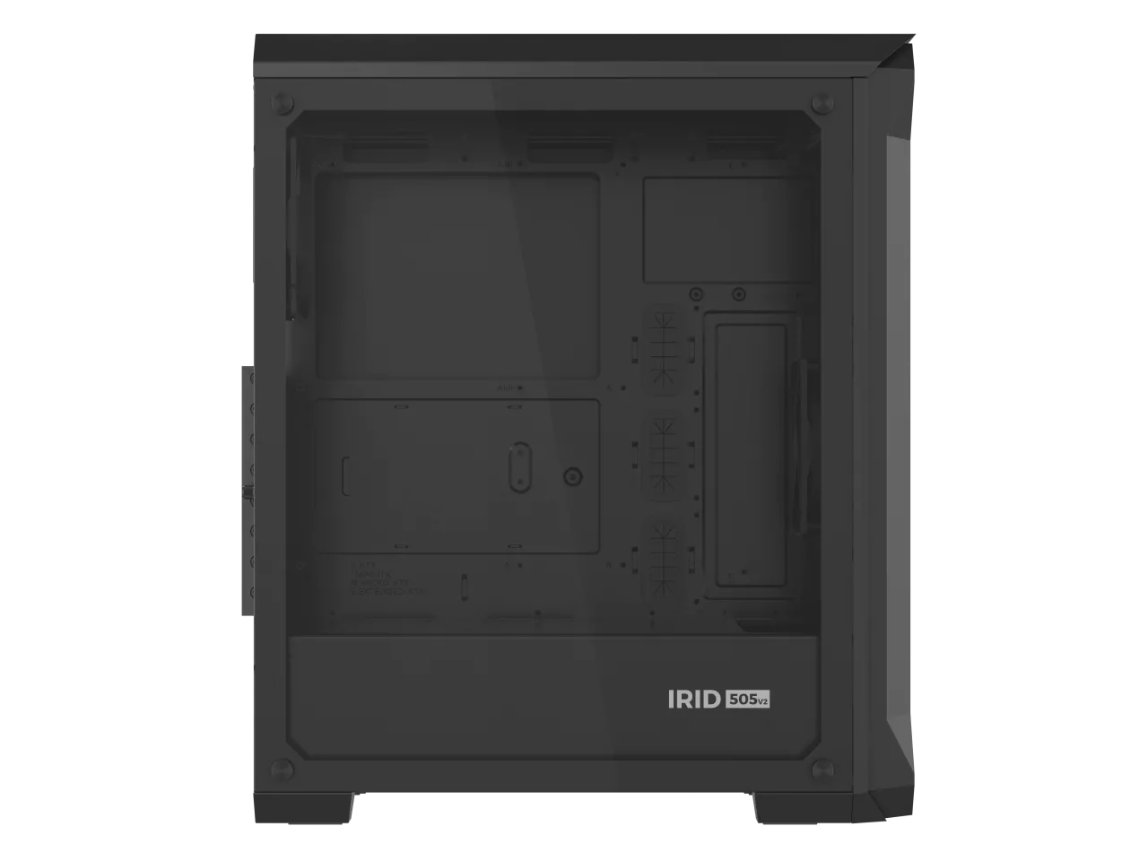 Obudowę wyposażono w perforowany przód, natomiast panel boczny został wykonany z hartowanego szkła z estetycznym, czarnym nadrukiem. Znakomicie prezentująca się czarna stal zamienia pudło na komponenty w eleganckie dzieło sztuki. Irid 505 V2 zachwyca nie tylko funkcjonalnością, ale również świetnym designem, który doda Twojemu pomieszczeniu klasy ciesząc Twoje oko.