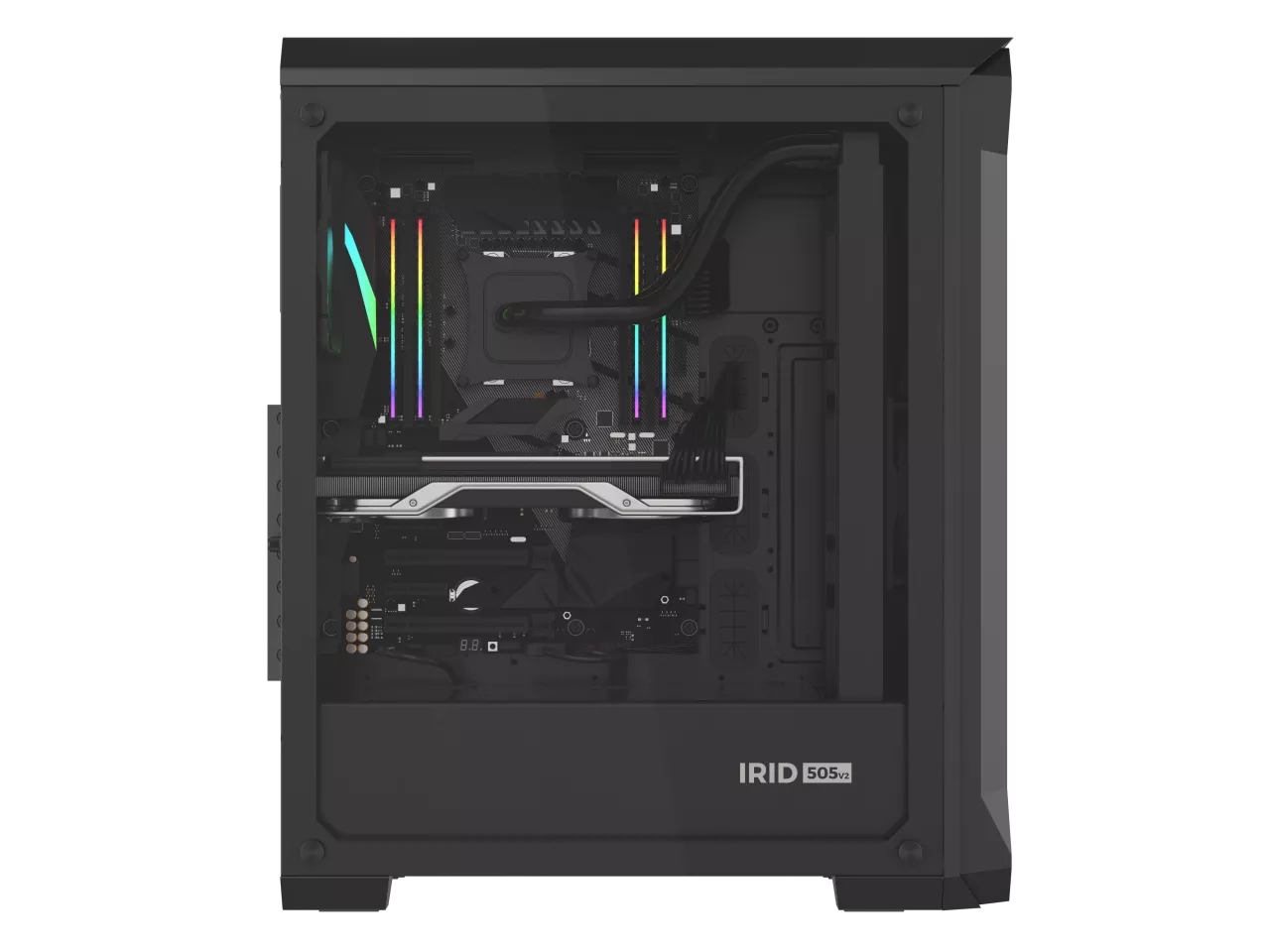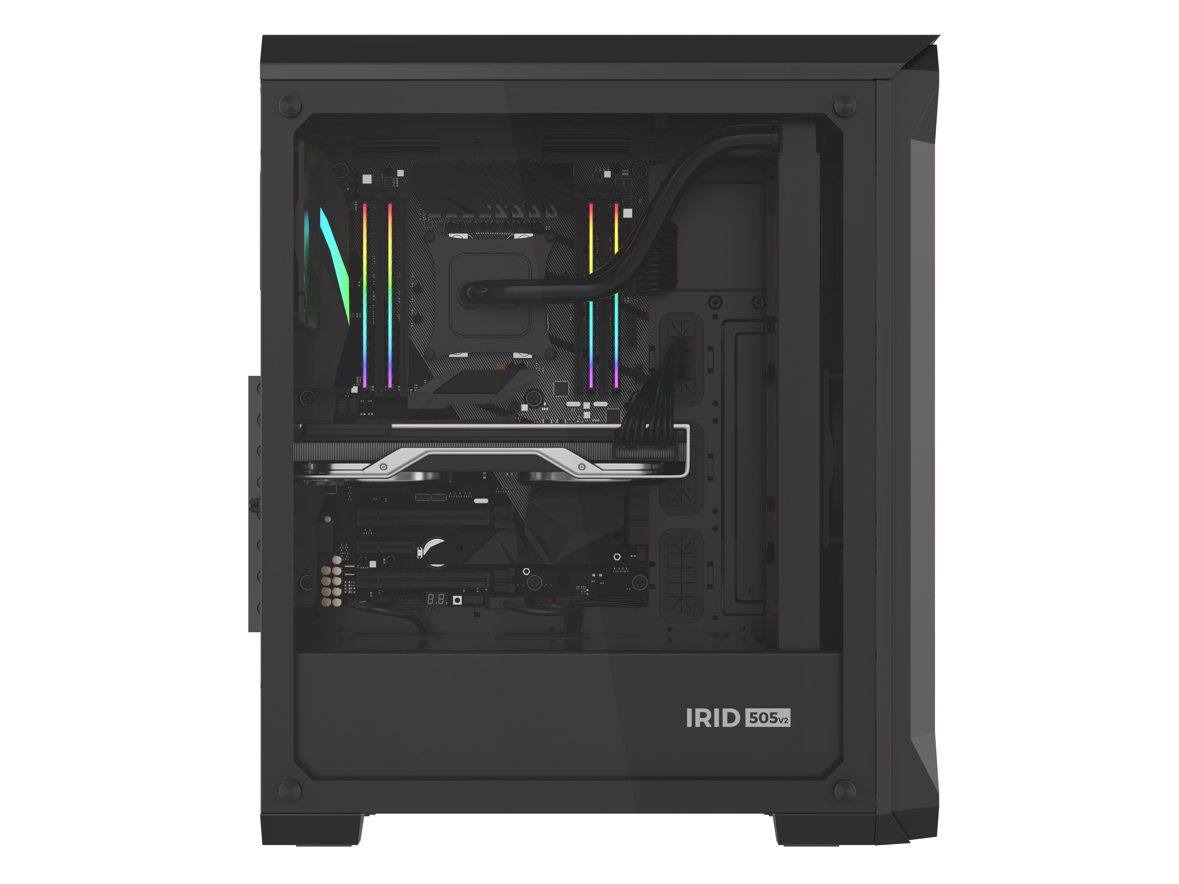 Zaślepki gniazd rozszerzeń są przykręcane, a nie wyłamywane, umożliwiając tym samym ich ponowny montaż w razie potrzeby. Otwieraj tylko to, co jest potrzebne i zakręcaj, gdy gniazdo zostanie puste. W Irid 505 V2 wszystko zawsze ma wyglądać schludnie i zachwycająco. Co więcej, dzięki bocznemu panelowi ze szkła hartowanego bez problemu podejrzysz wszystkie pracujące podzespoły.