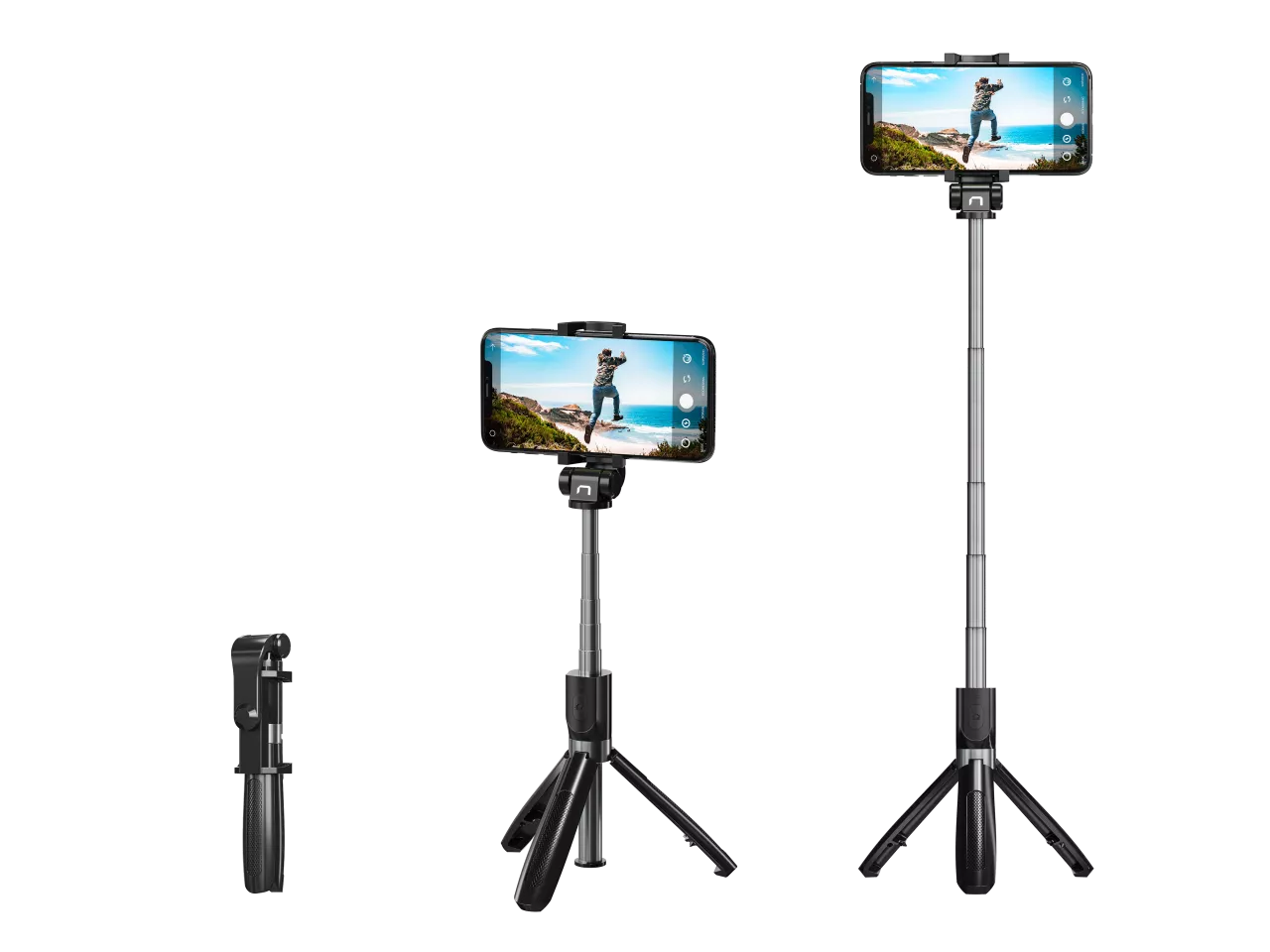 Do Twojej dyspozycji trafia wysokiej jakości selfie stick oferujący możliwość wykorzystania go również w postaci Tripodu, którego możesz wygodnie postawić w dogodnym miejscu i zdalnie wykonać odpowiednie zdjęcie za pomocą pilota BT 4.0. Solidne materiały spotykają się z szeroką funkcjonalnością gwarantując Tobie najlepsze wrażenia podczas korzystania z Alvito i wykonywania nim zdjęć wyrażających więcej niż 1000 słów.