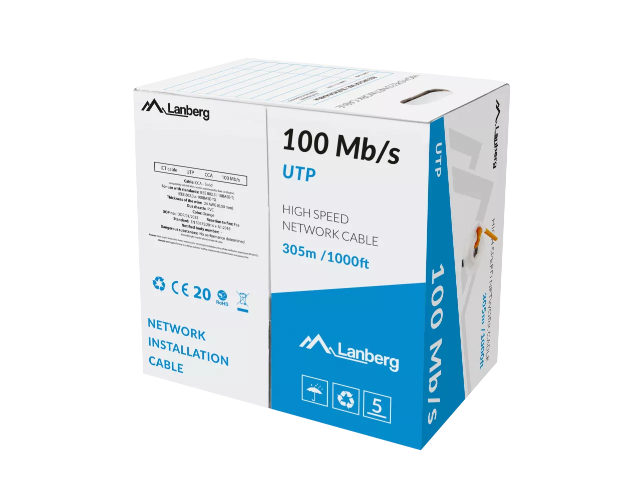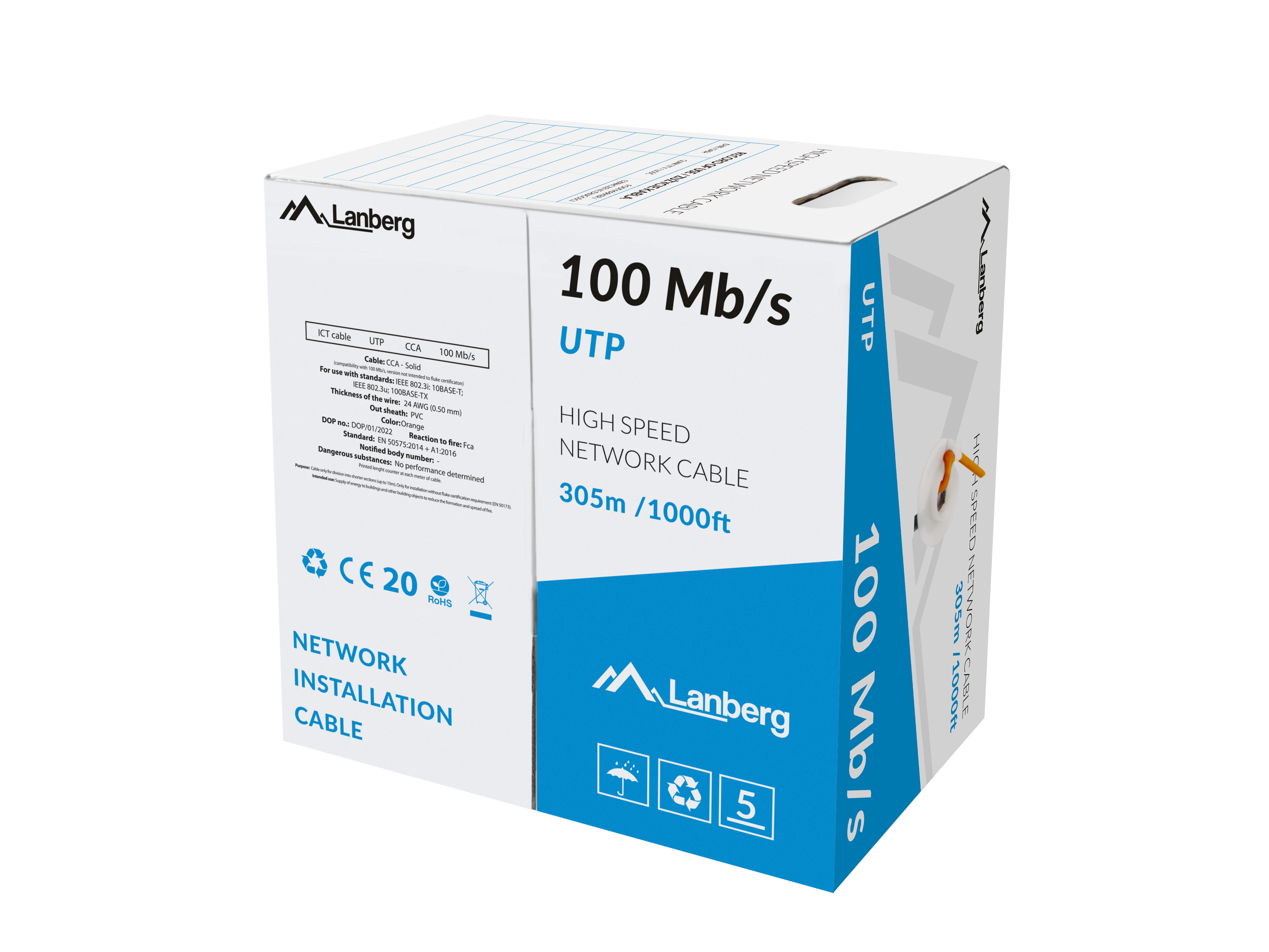 Kabel sieciowy LAN ethernet 305m UTP CCA drut pomarańczowy