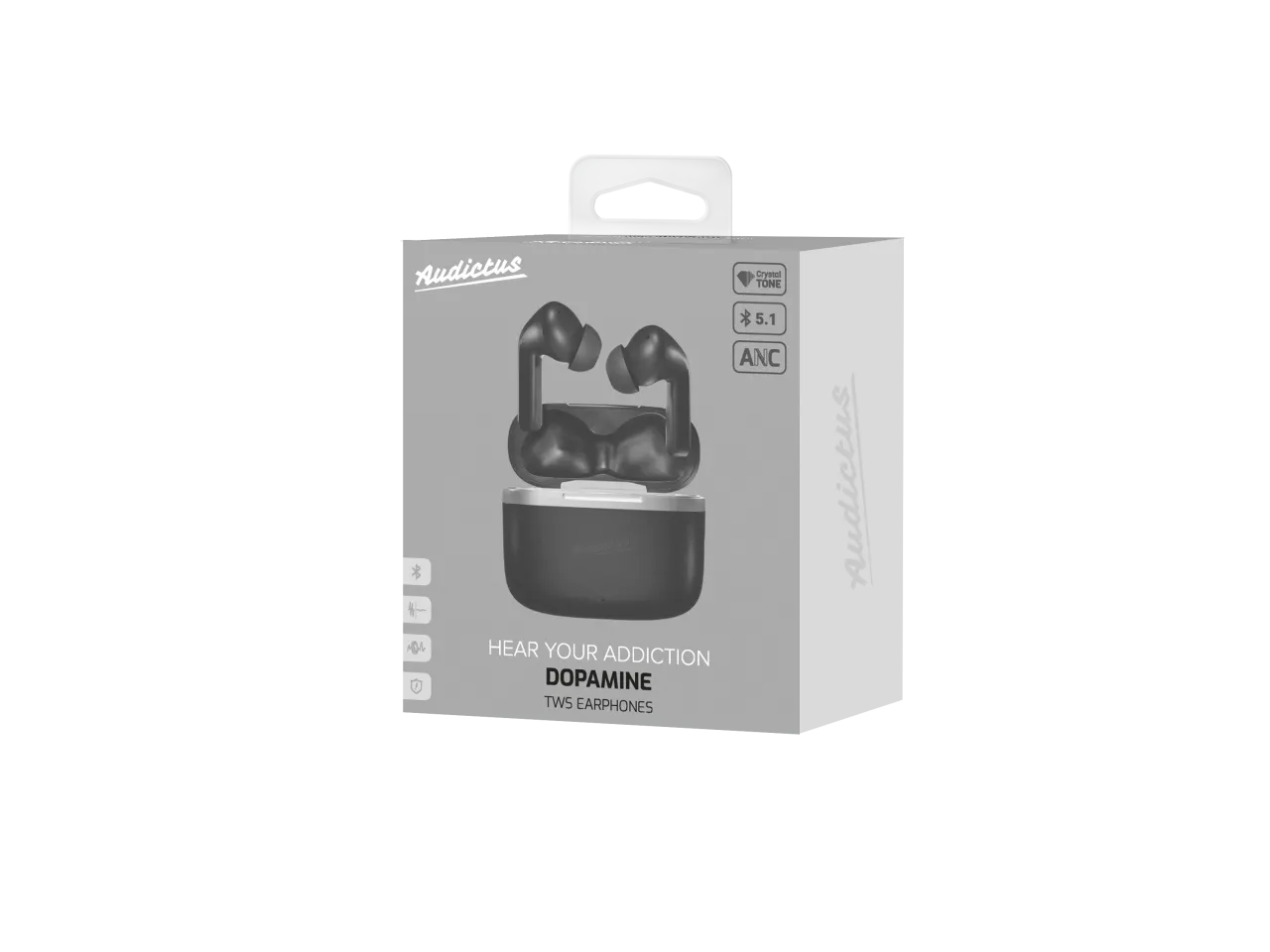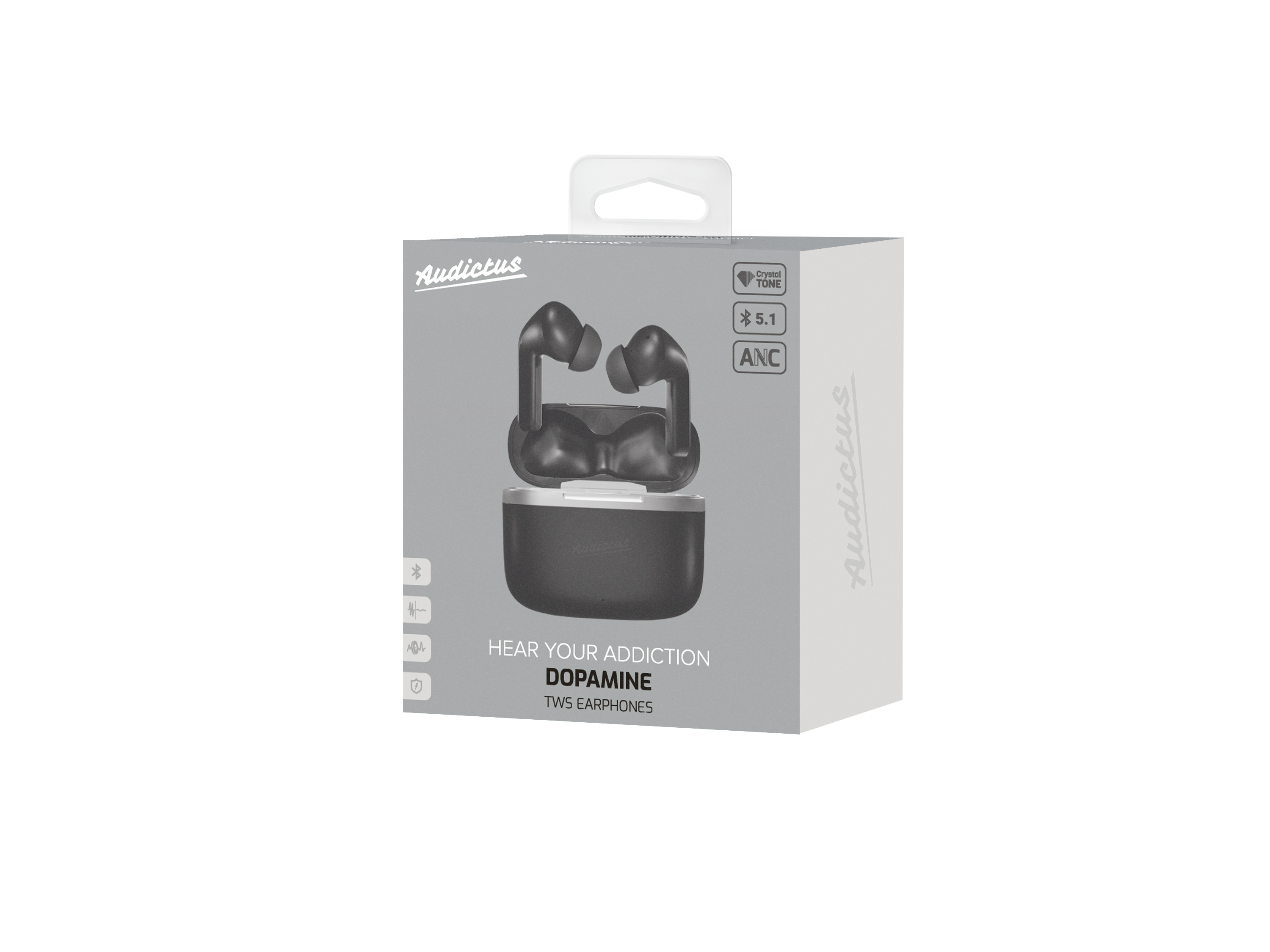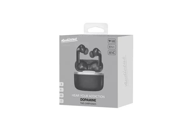 SŁUCHAWKI DOKANAŁOWE AUDICTUS DOPAMINE TWS ANC BEZPRZEWODOWE Z MIKROFONEM Z UCHWYTEM CZARNE