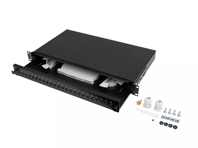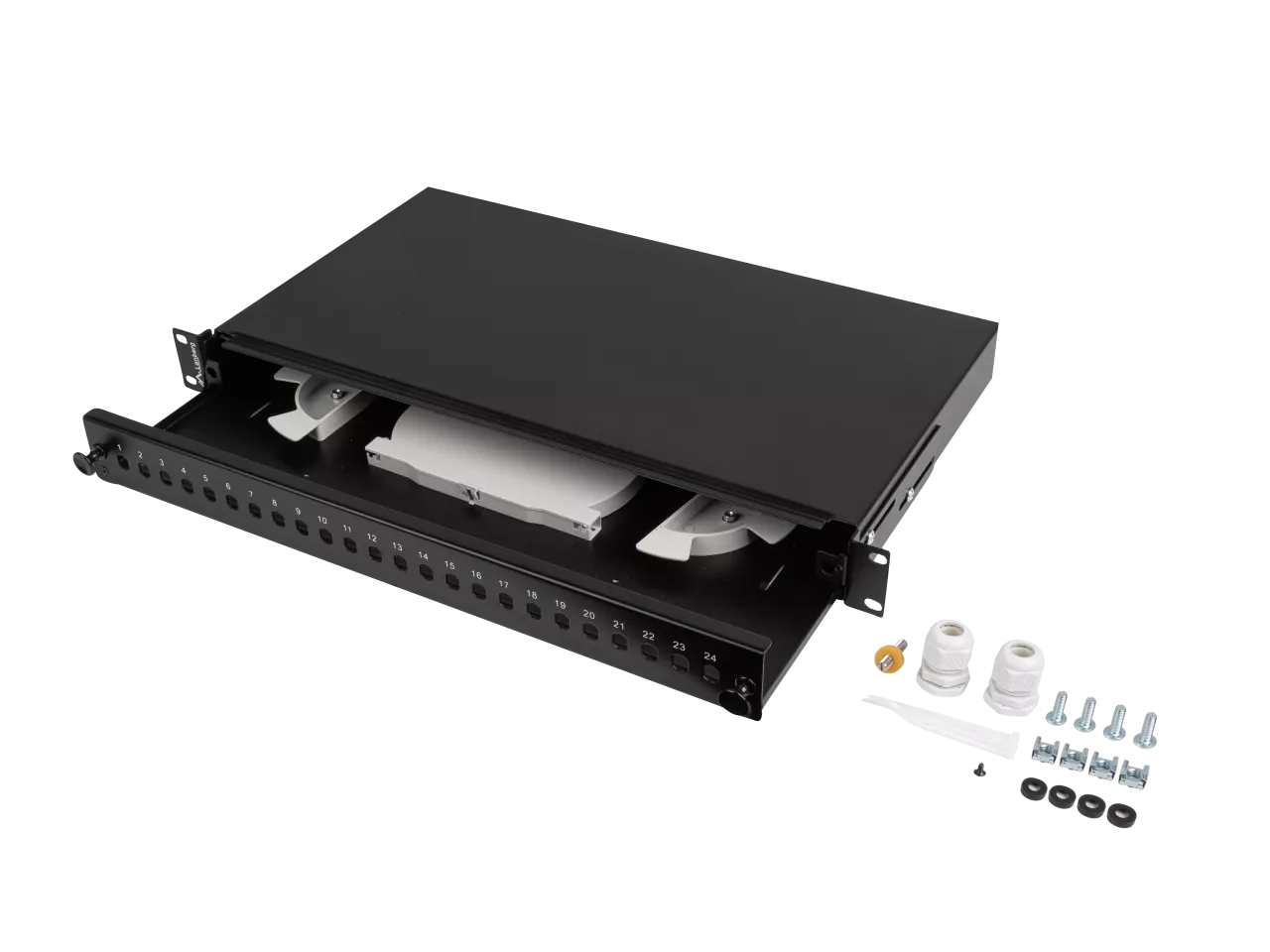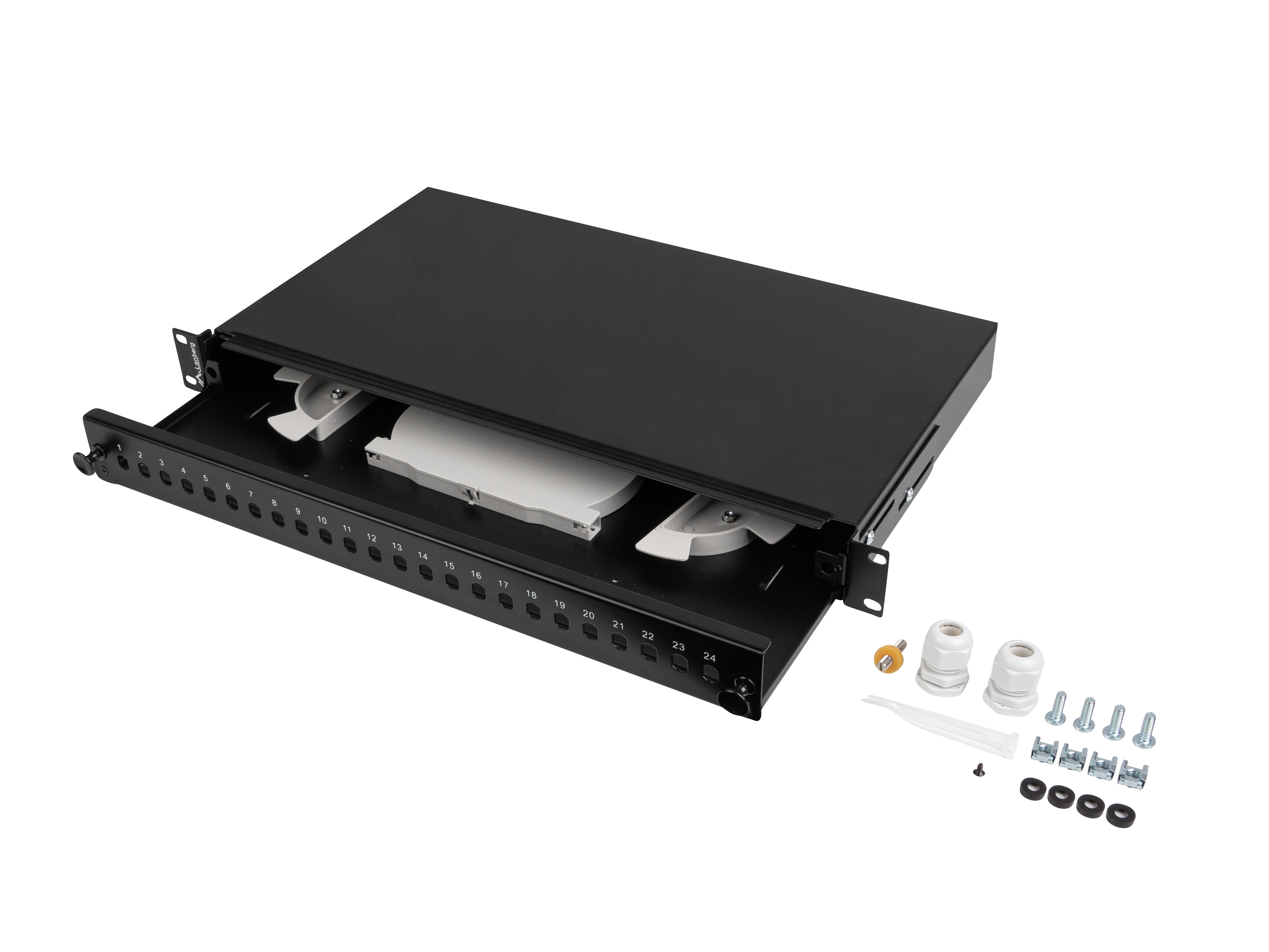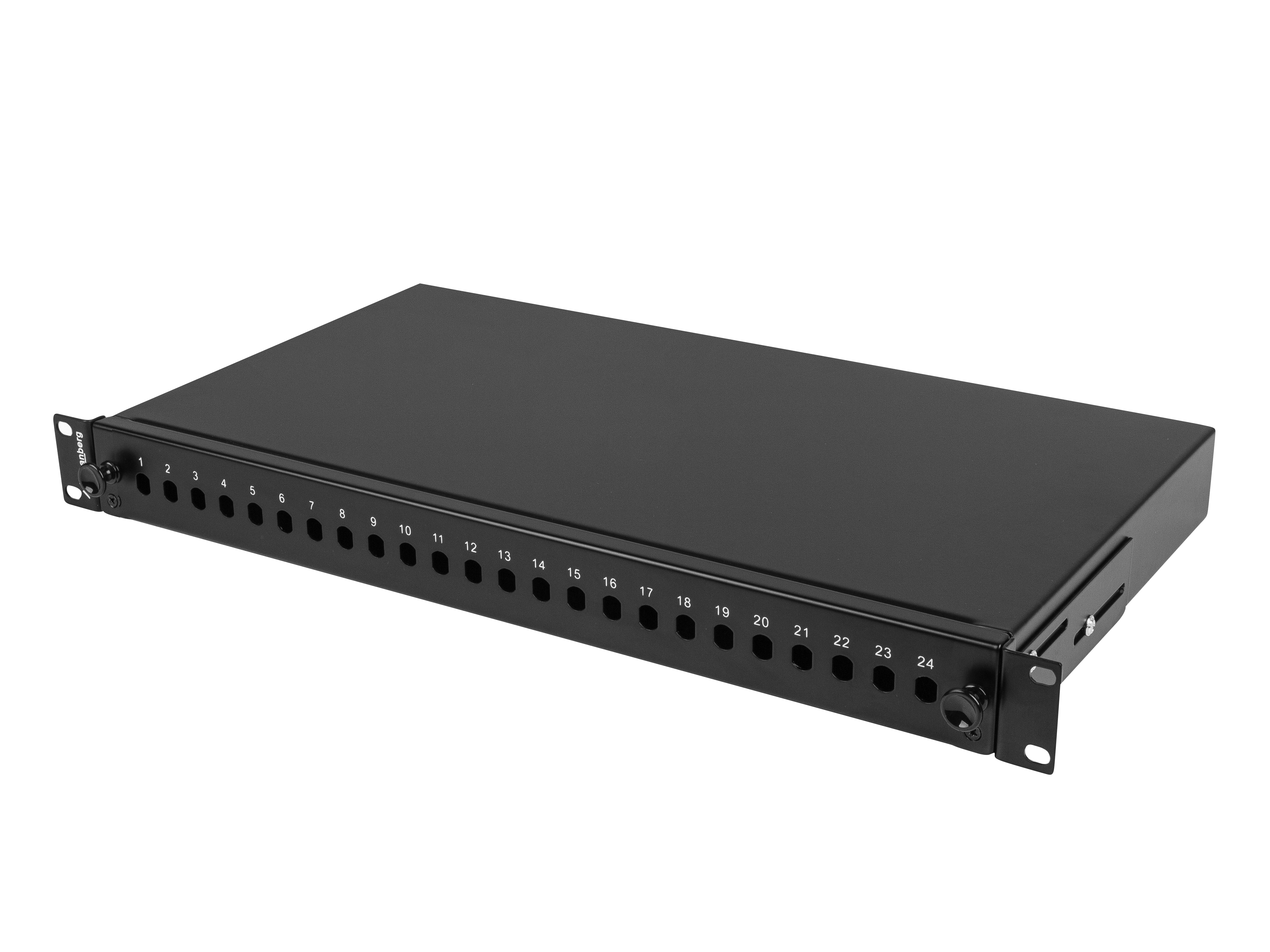 PRZEŁĄCZNICA ŚWIATŁOWODOWA LANBERG 24XST / 24XFC D-HOLE RACK 19" 1U CZARNA + AKCESORIA