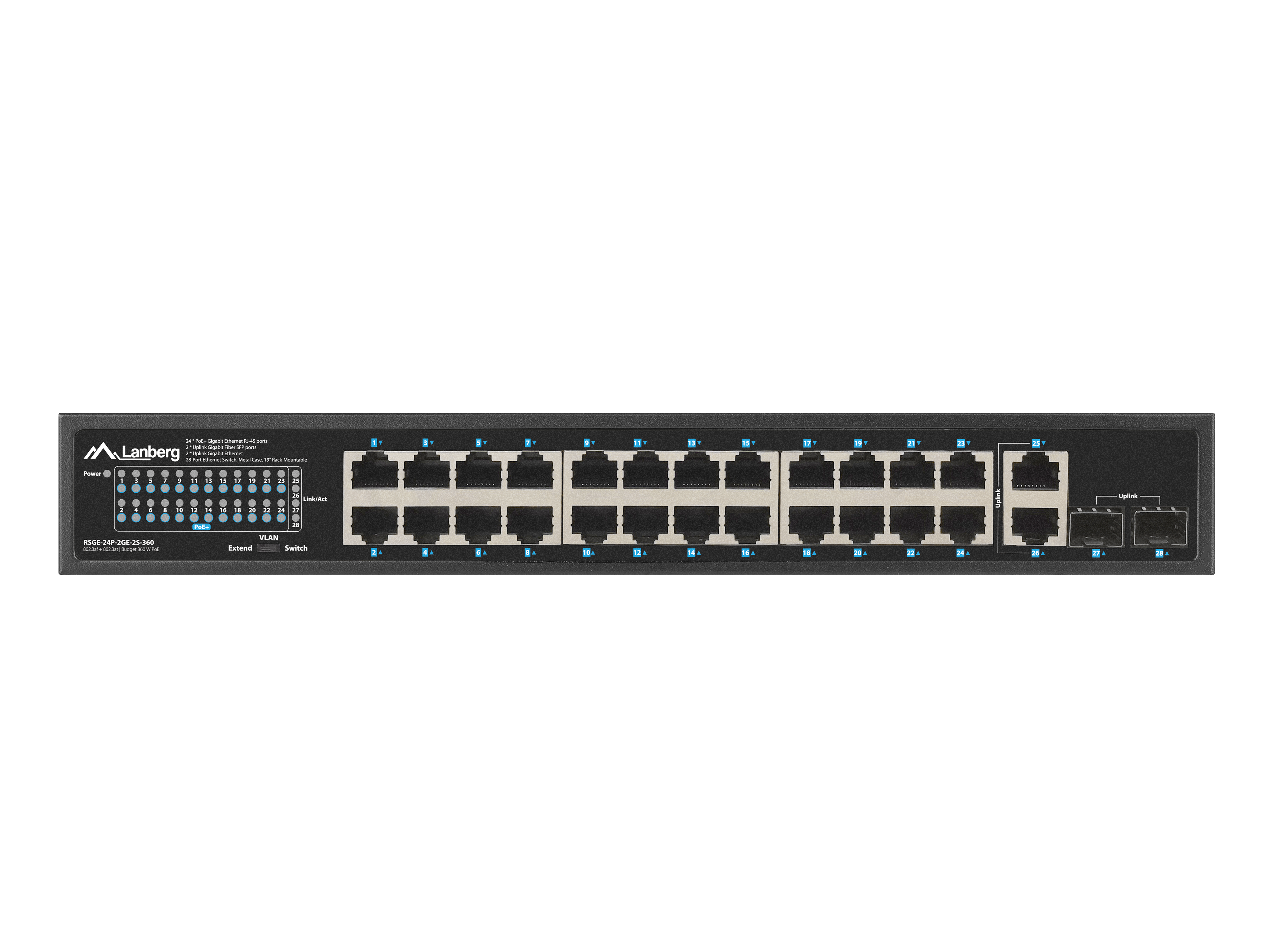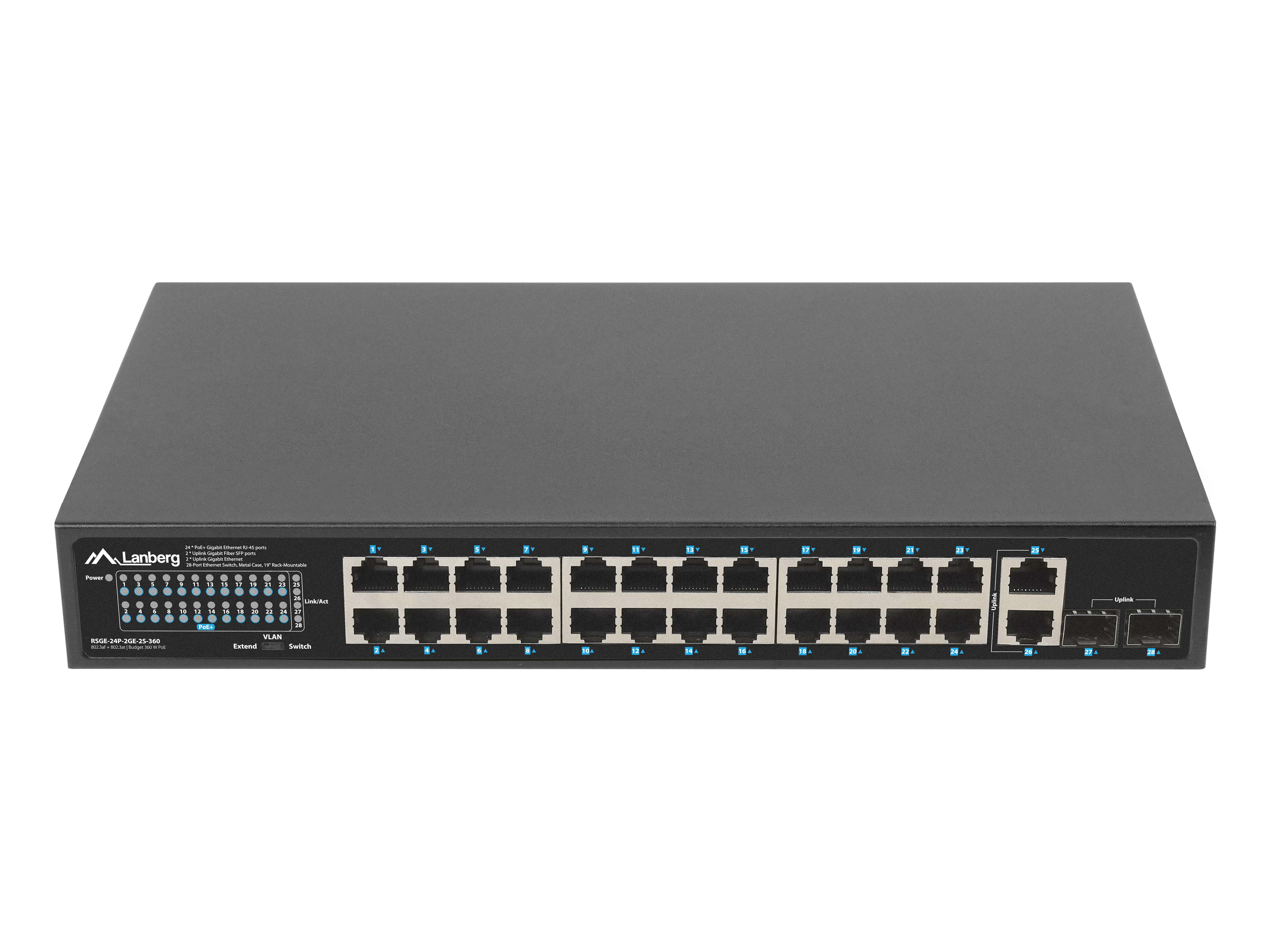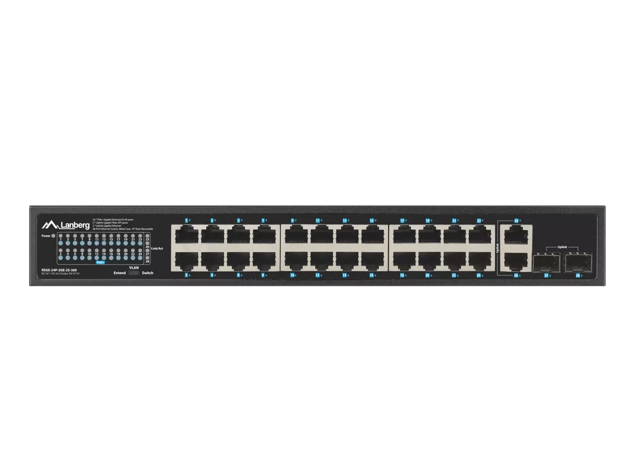 SWITCH LANBERG RSGE-24P-2GE-2S-360 24X 1GB POE+/2X GB 2X SFP RACK 19" GIGABIT ETHERNET 360W