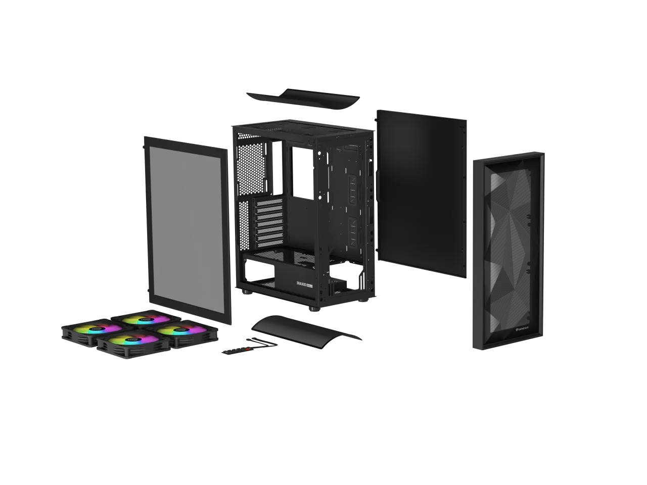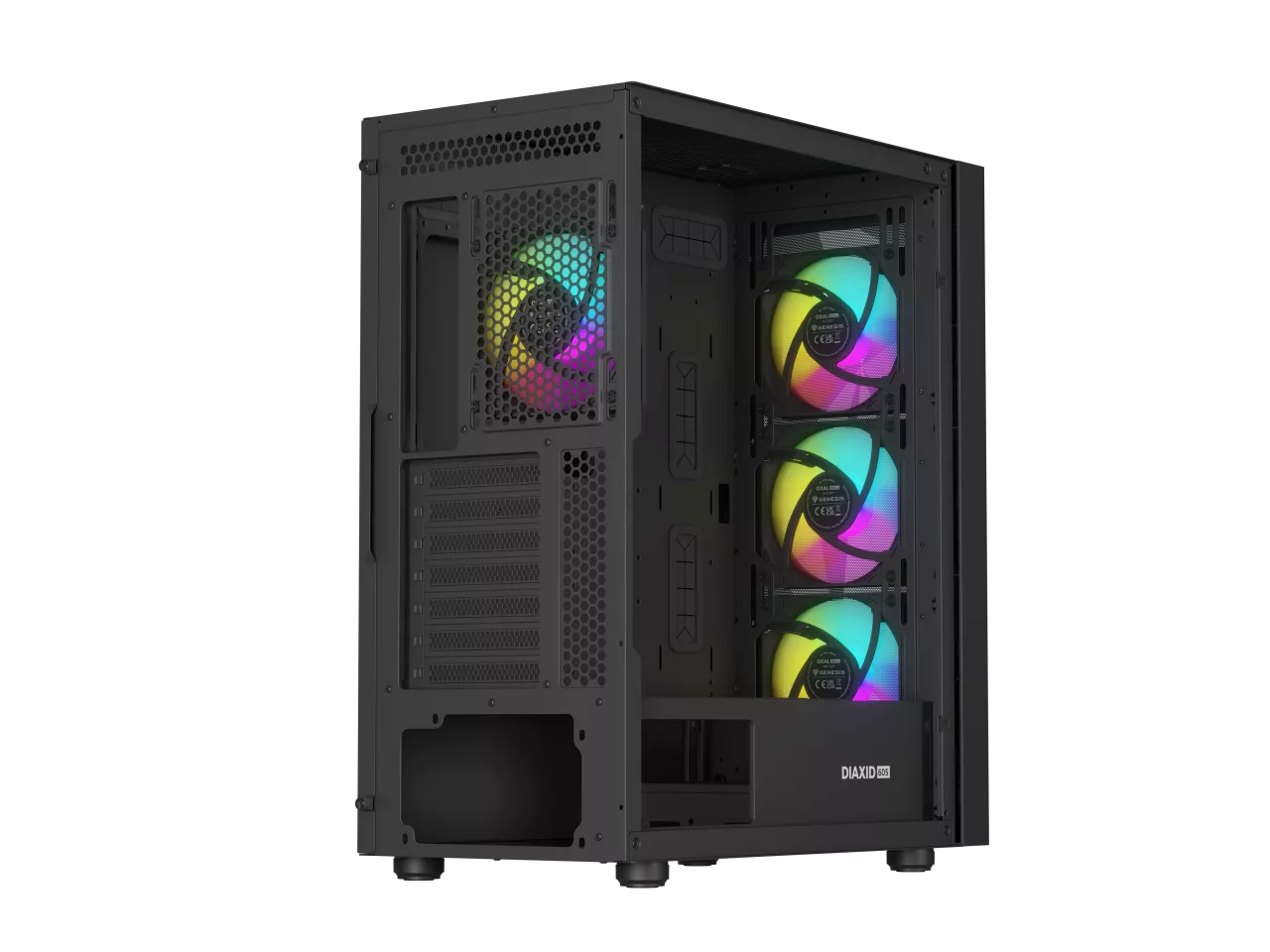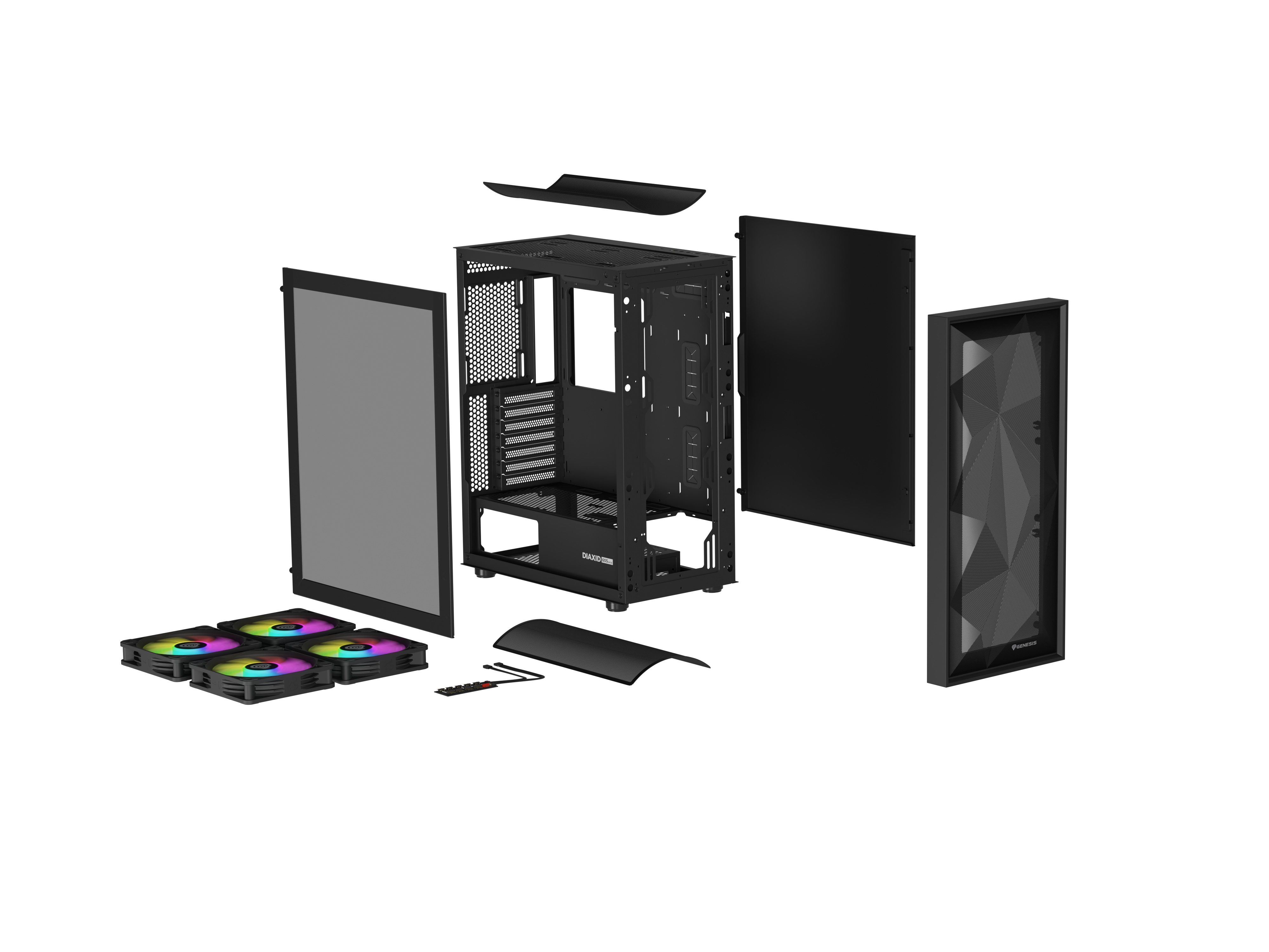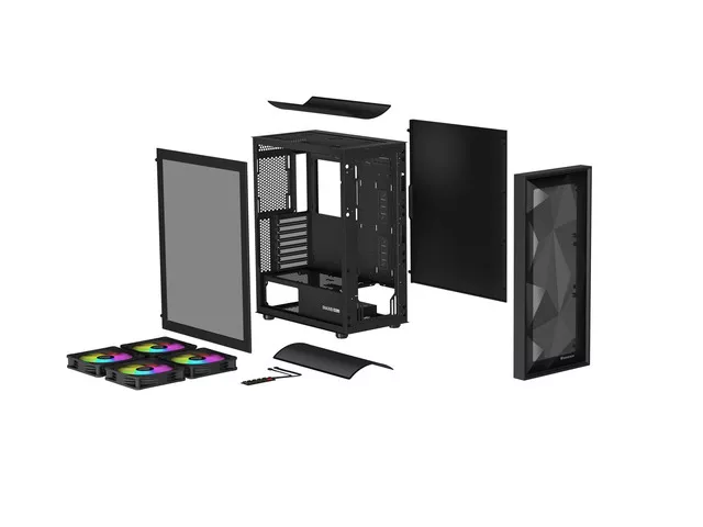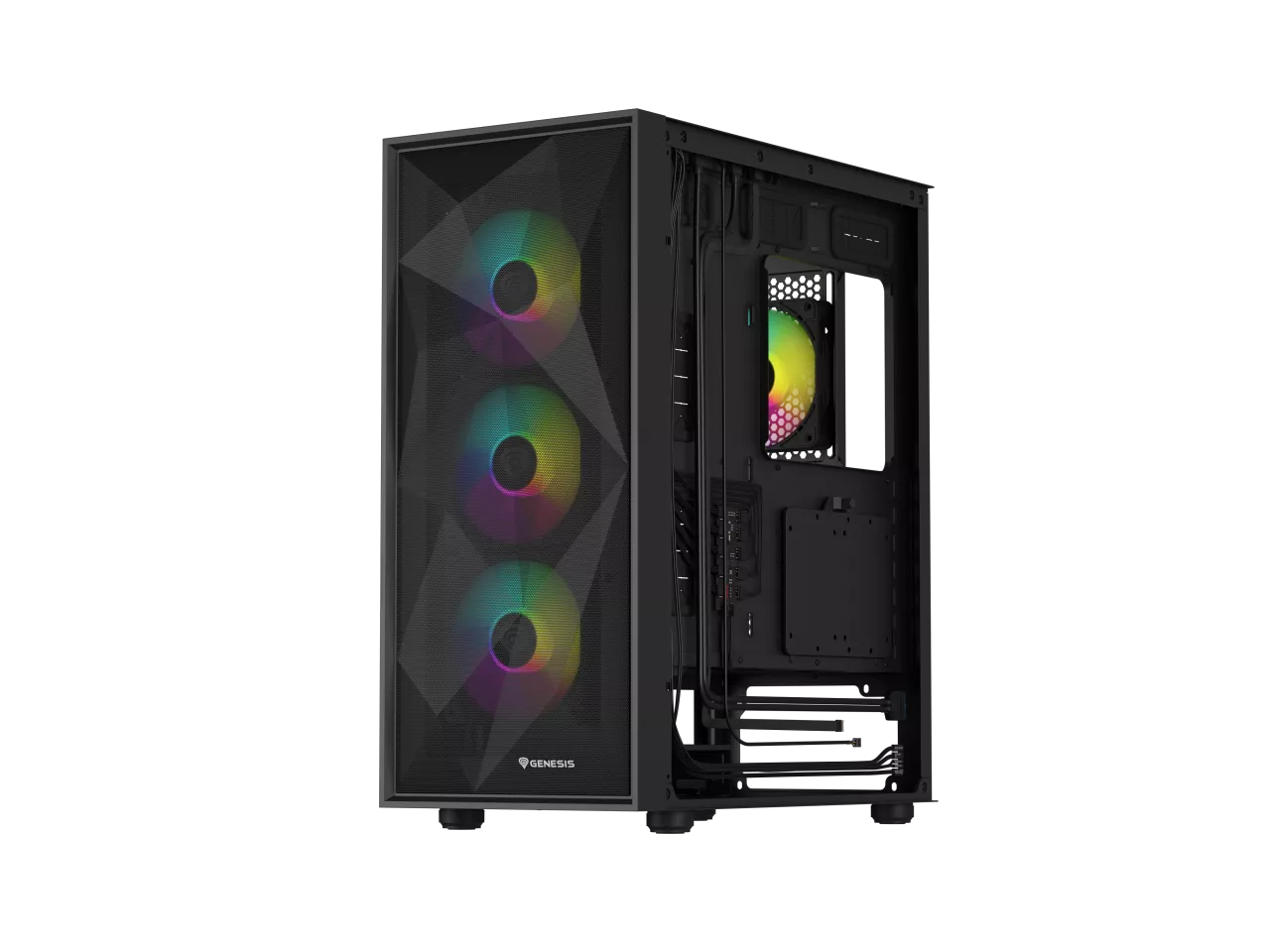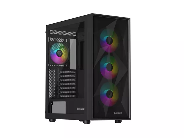 GENESIS Diaxid 605 ARGB to model, który stworzyliśmy z myślą o możliwościach budowy wydajnych jednostek. Oznacza to nie tylko doskonałe właściwości chłodzenia, ale też możliwości montażu podzespołów w pełni przemyślany sposób. Kompatybilność z płytami ATX, microATX, mini-ITX, 2 miejsca na nośniki SSD 2.5”, 1 miejsce na HDD 3.5” oraz 1 slot hybrydowy 2.5"/3.5”. Do tego karty graficzne o maksymalnej długości ~351 mm i chłodzenia wieżowe o wysokości ~168 mm. Postaw na obudowę, która spełni Twoje oczekiwania.