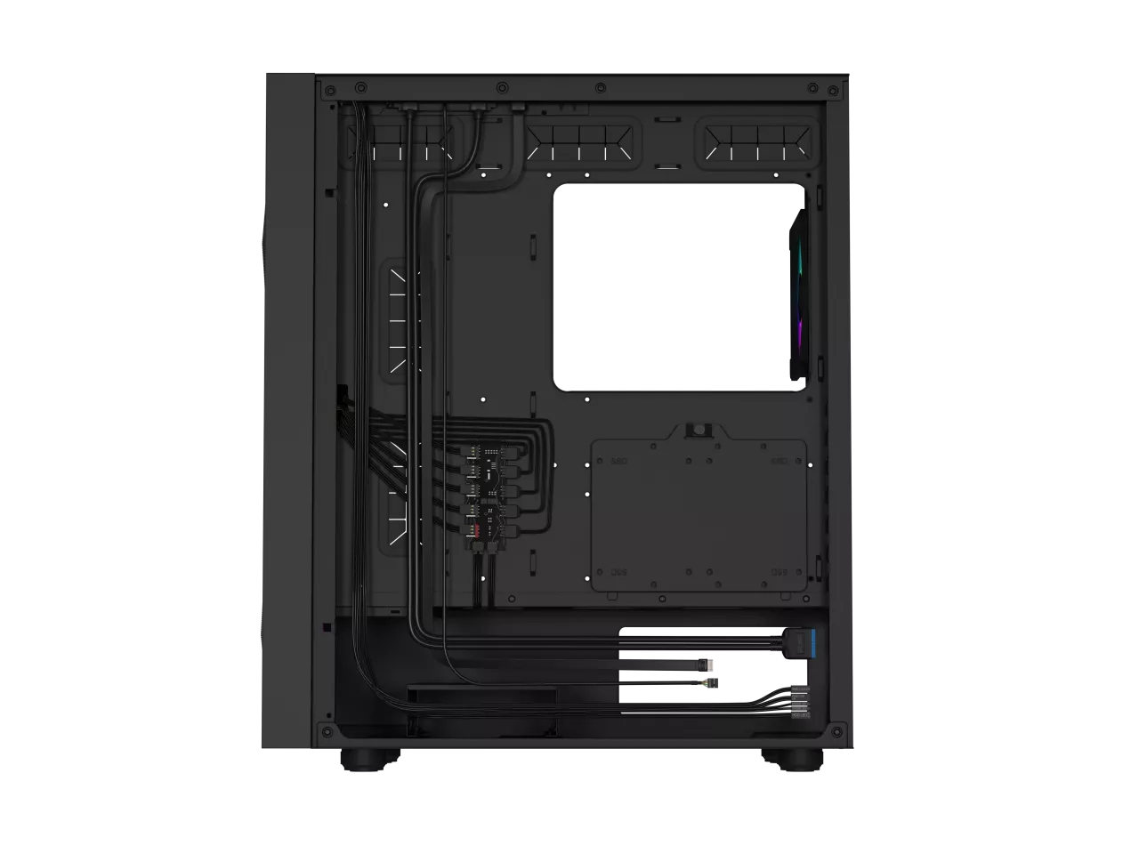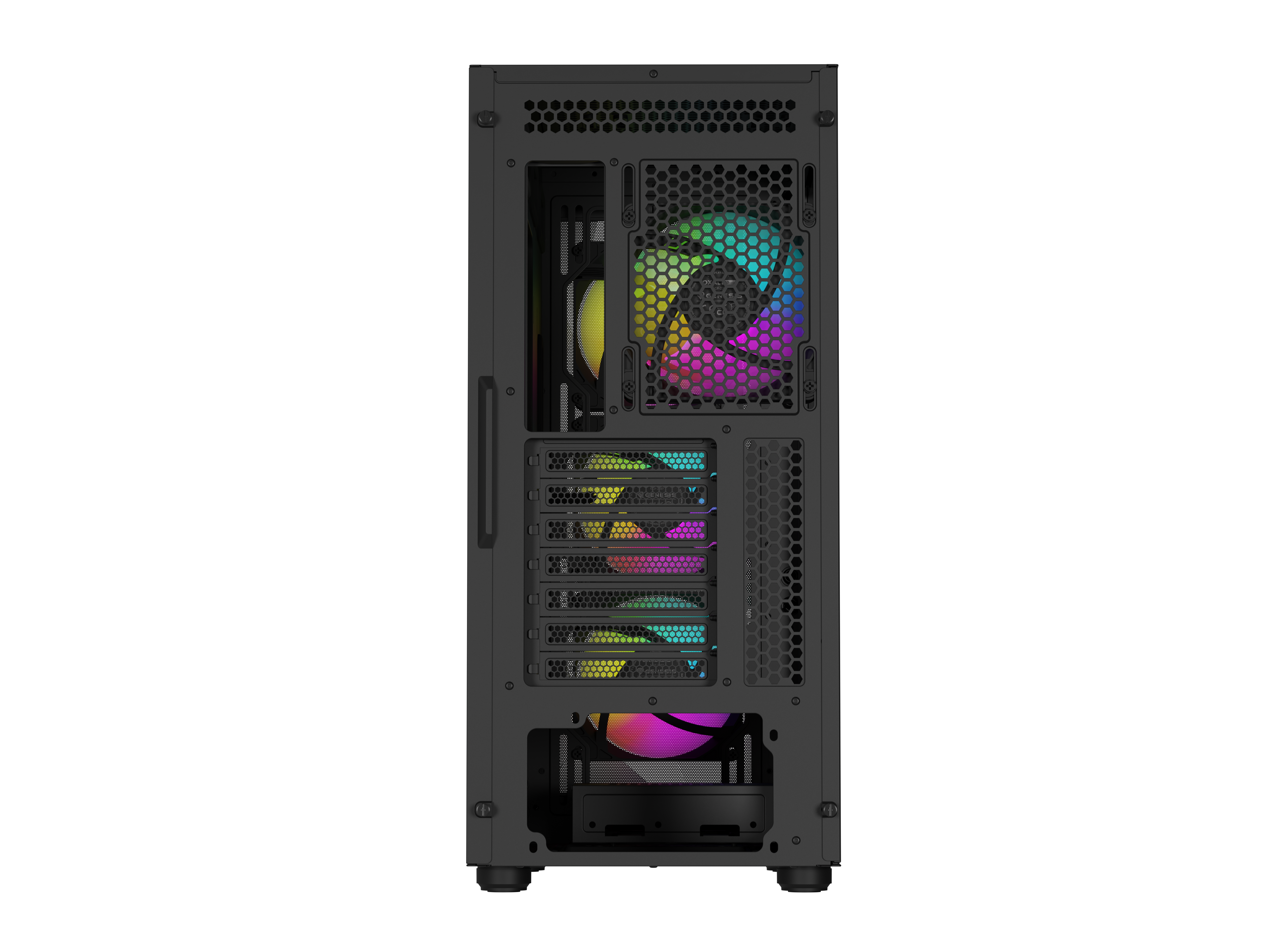 Przywitaj aż 4 wentylatory GENESIS Oxal 120 ARGB oferujące nie tylko wysoką wydajność, ale i możliwość sterowania przy pomocy płyty głównej. Oprócz oryginalnego wyglądu zapewnią one również ciszę i optymalne temperatury nawet w najgorętsze dni. Aż 3 z nich (tłoczące powietrze do środka) znajdziesz z przodu, z kolei pozostały (wyciągowy) w tylnej części. Dzięki takiej konfiguracji możesz liczyć na dodatnie ciśnienie wewnątrz obudowy, co w połączeniu z pełnym ofiltrowaniem jeszcze lepiej chroni przed kurzem. Za mało? 2 dodatkowe miejsca na górze i spodzie obudowy pozwolą Ci łatwo rozbudować jednostkę wedle własnego uznania (w tym zamocować aż 3 wentylatory 140 mm na froncie)