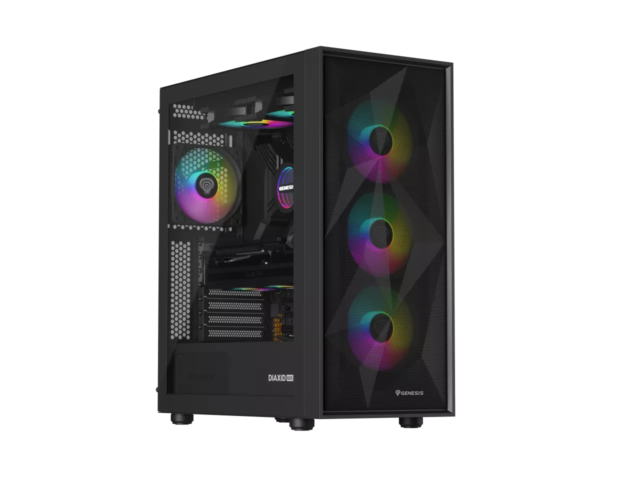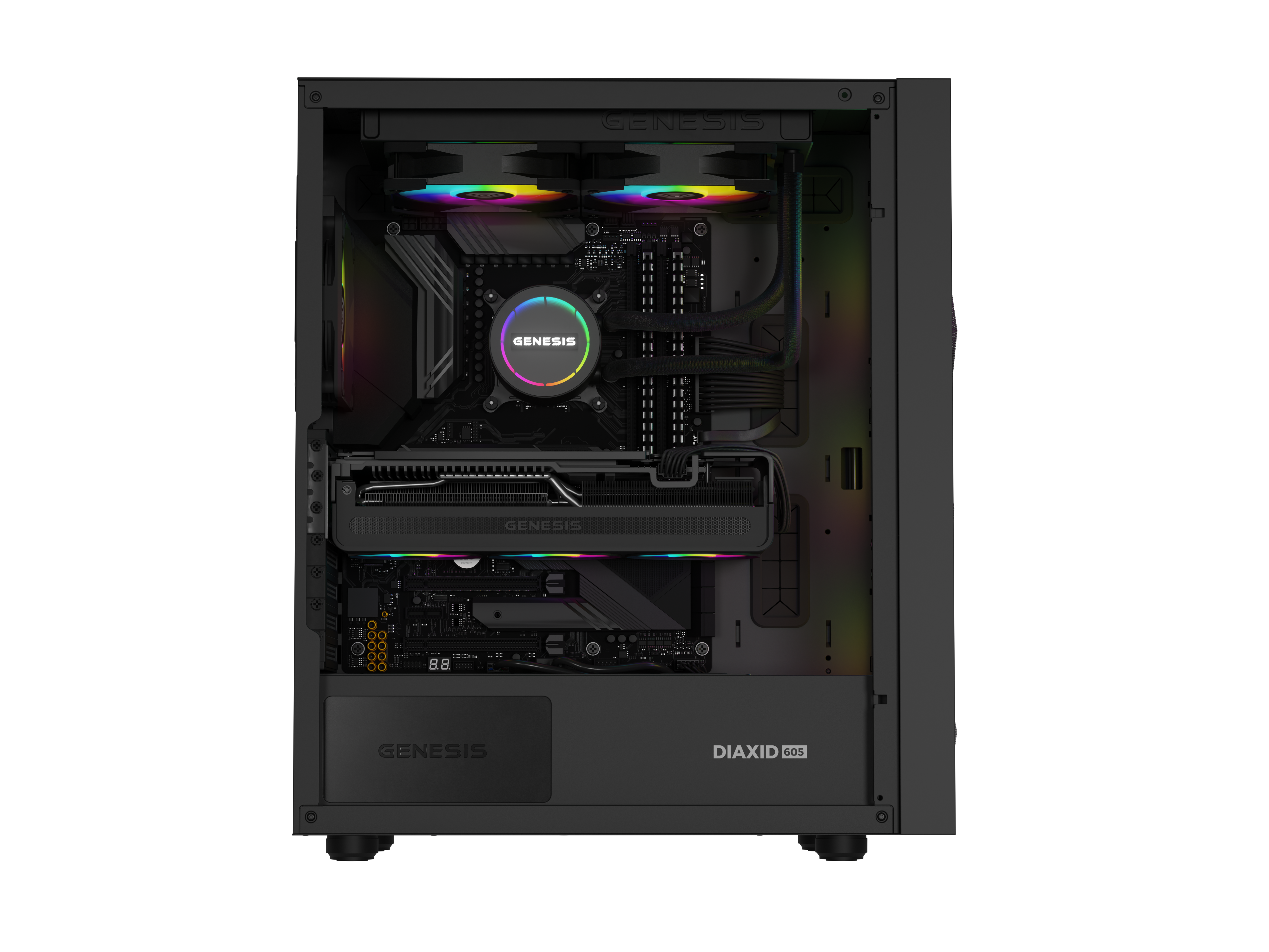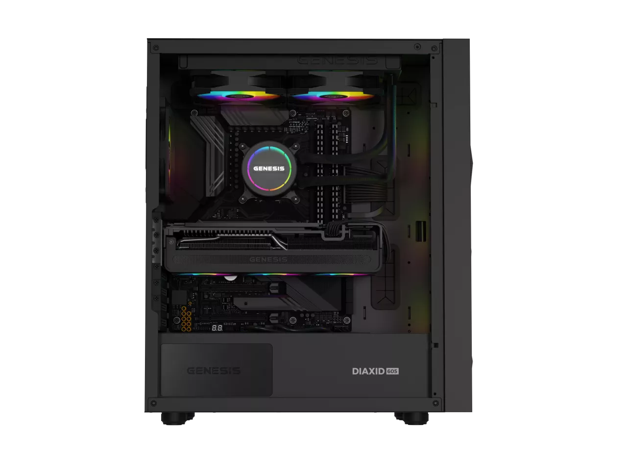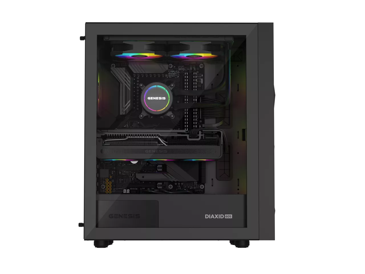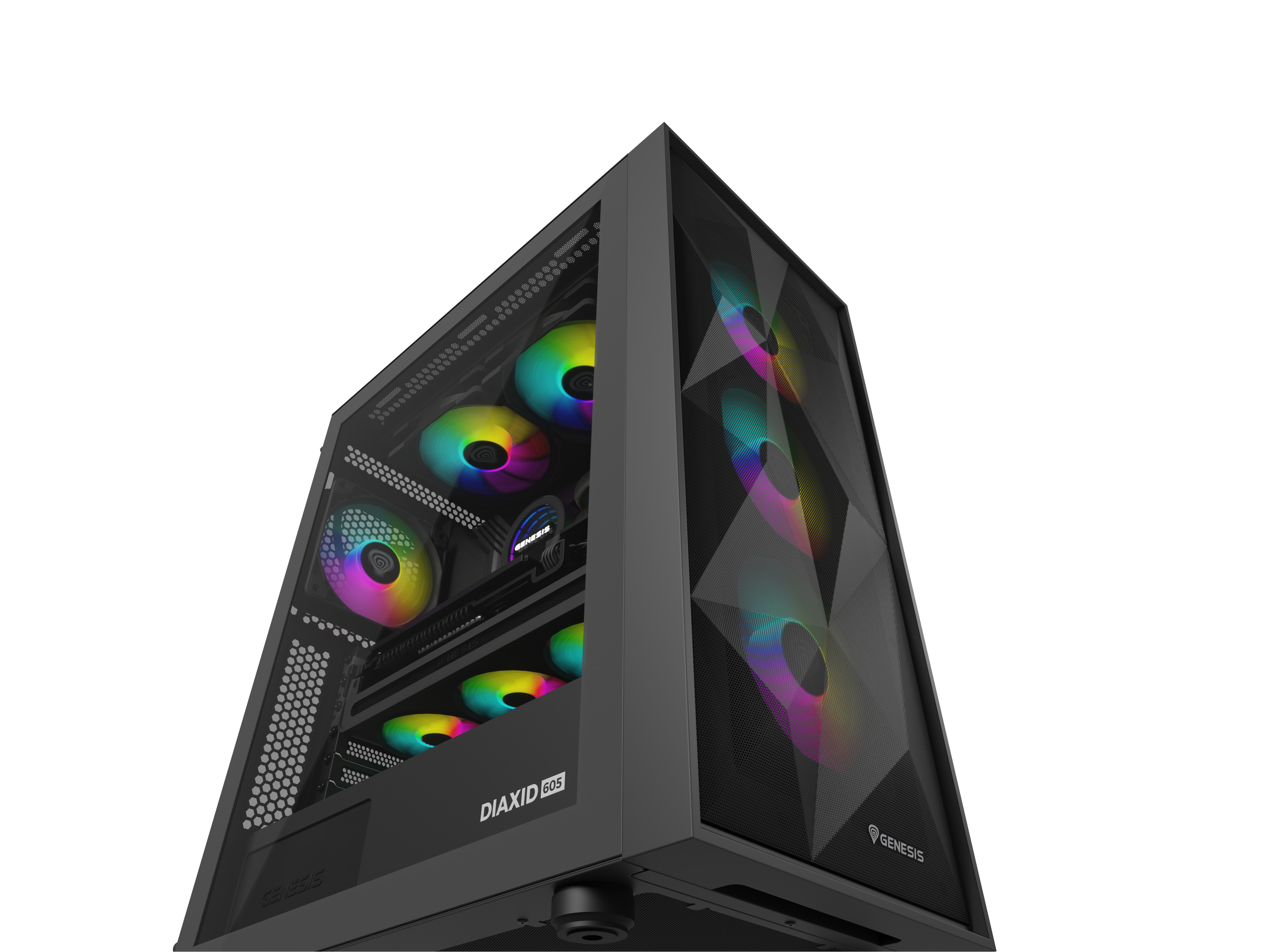 Wytrzymała, elegancka, wydajna. W skrócie? GENESIS Diaxid 605 ARGB. Poznaj obudowę, którą stworzyliśmy z myślą o fanach niskich temperatur, dużych osiągów i unikalnego stylu. Kompatybilność z chłodzeniami AIO 420, aż 4 wentylatory GENESIS Oxal 120 ARGB i pełne ofiltrowanie przeciwkurzowe. Do tego szerokie możliwości montażu podzespołów. Podejmij wyzwanie i przekonaj się, jak łatwo zbudować komputer marzeń z GENESIS Diaxid 605 ARGB.