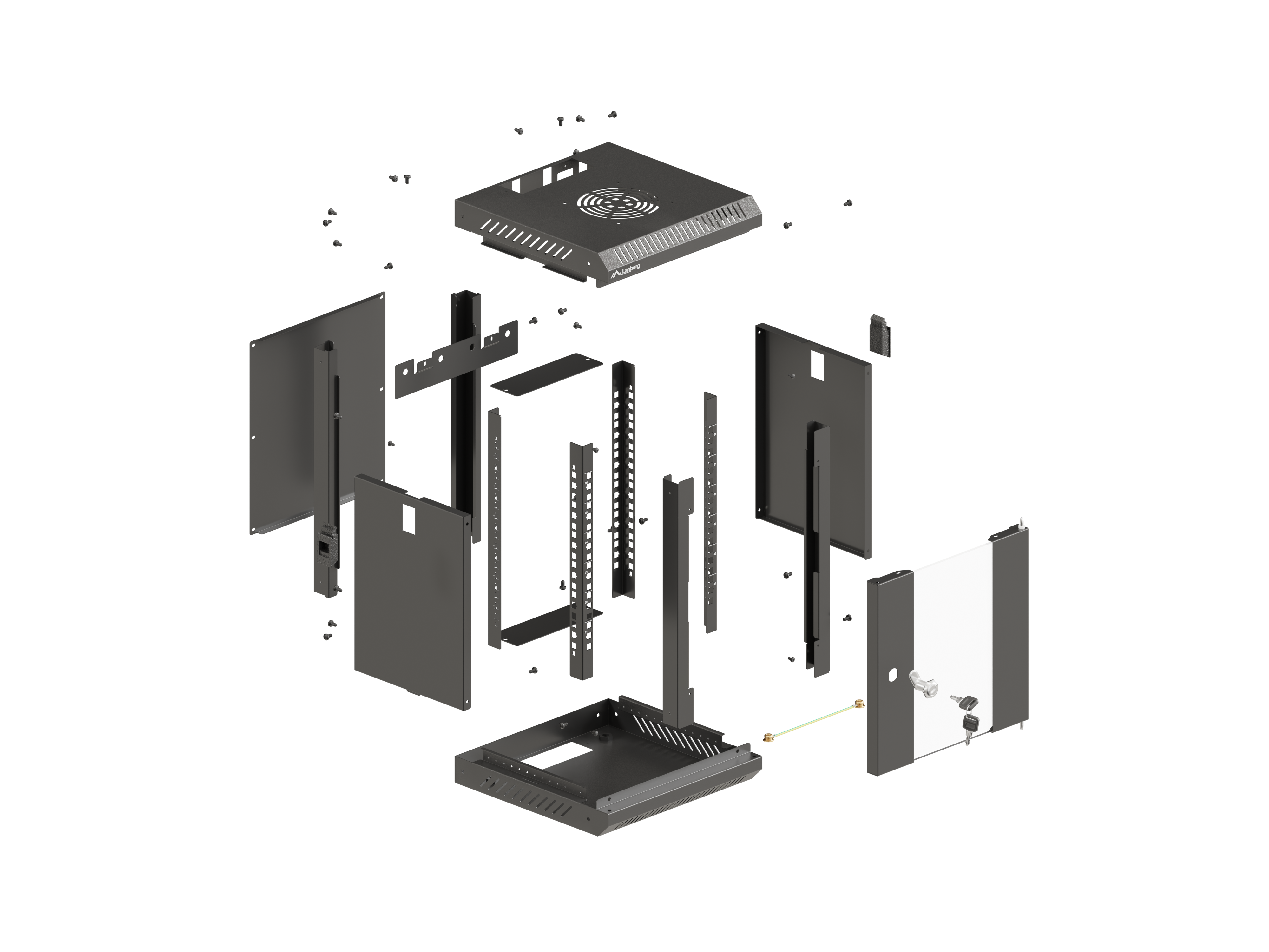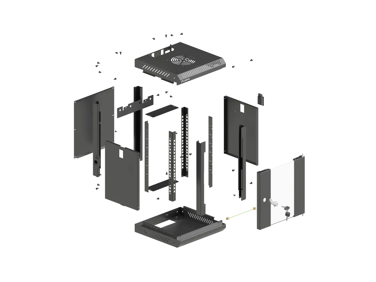 Szafy wiszące RACK 10" WF11 zostały zaprojektowane z myślą o łatwym i szybkim montażu, zarówno dla laików, jak i profesjonalnych instalatorów. Dołączona do zestawu tylna listwa montażowa to znaczne ułatwienie, pozwalające na znaczącą elastyczność i oszczędność czasu w zakresie montażu ściennego. Dostęp boczny dzięki ściąganym drzwiom bocznym, możliwość ustawienia drzwi frontowych jako prawo lub lewostronnych oraz opcja demontażu tylnej ściany ułatwiają instalację i modyfikację sprzętu wewnątrz szafy. Zarządzanie infrastrukturą sieciową nigdy nie było prostsze.