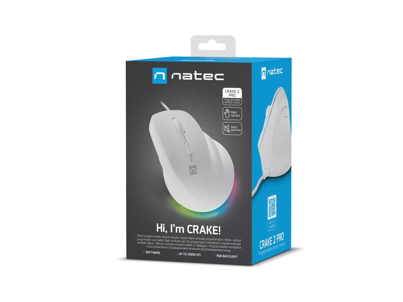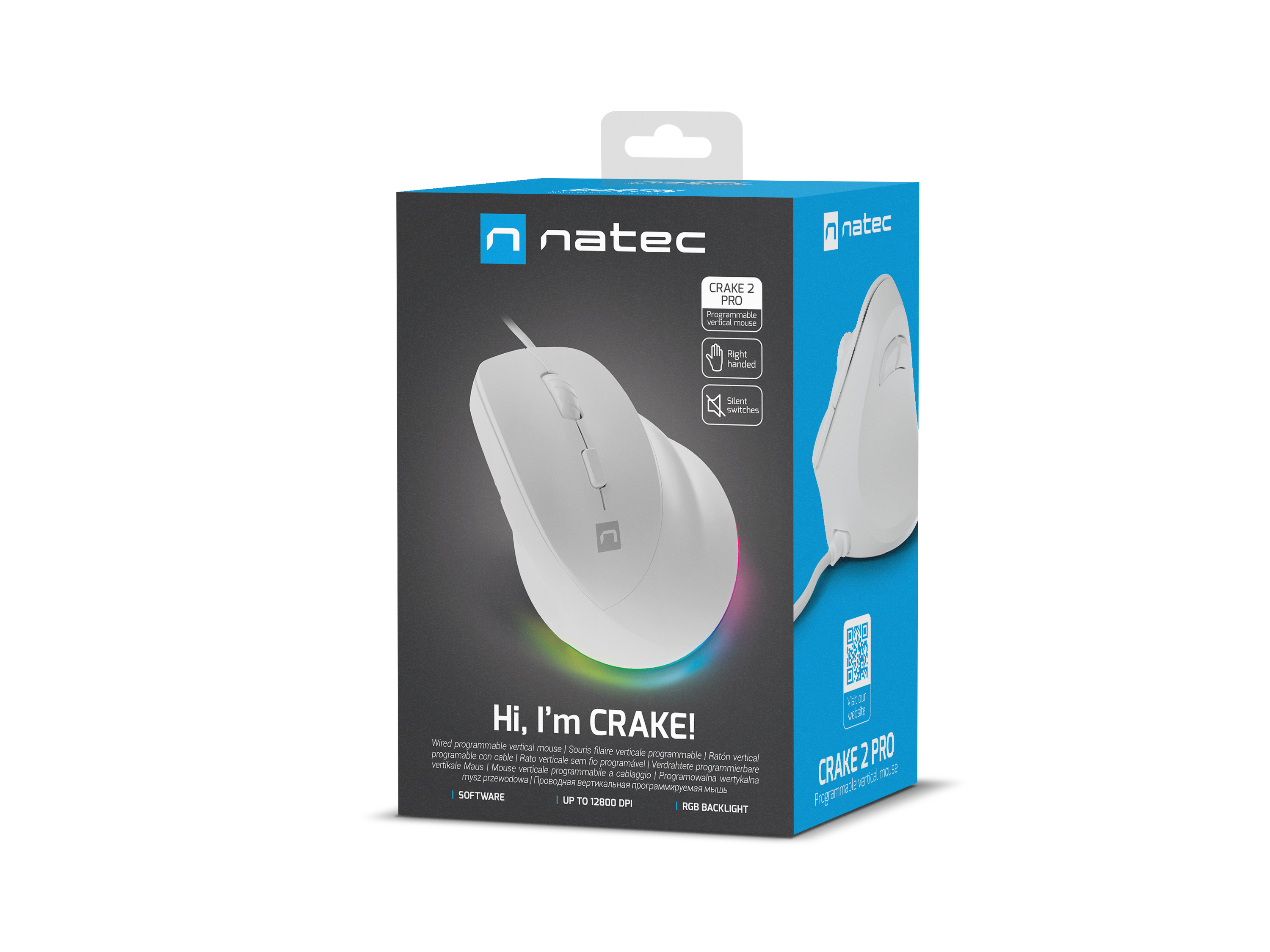 MYSZ WERTYKALNA NATEC CRAKE 2 PRO 12800DPI BIAŁA PROGRAMOWALNA OPTYCZNA