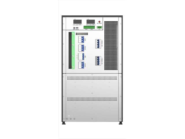 Ten konkretny model zasilacza UPS VFI 30K TAP PF1 3/3 BE nie posiada fabrycznie baterii, ale może być w jednostki 12V 9Ah poźniej wyposażony w postaci dwóch łańcuchów / stringów, każdy z 32-40 akumulatorami. Aby działać poprawnie, każdy ciąg akumulatorów musi mieć takie samo napięcie, a łączna liczba akumulatorów nie może przekraczać 80.