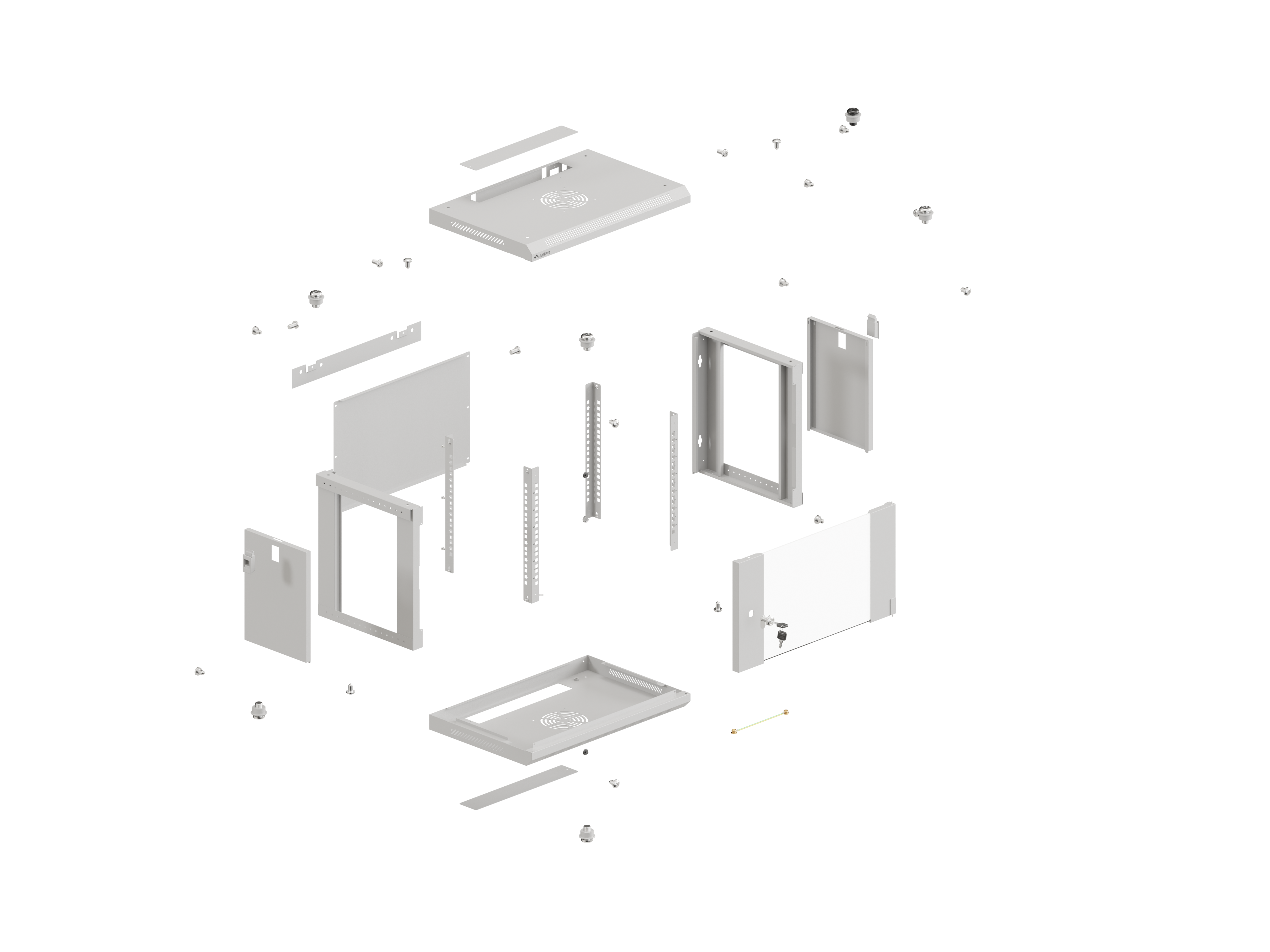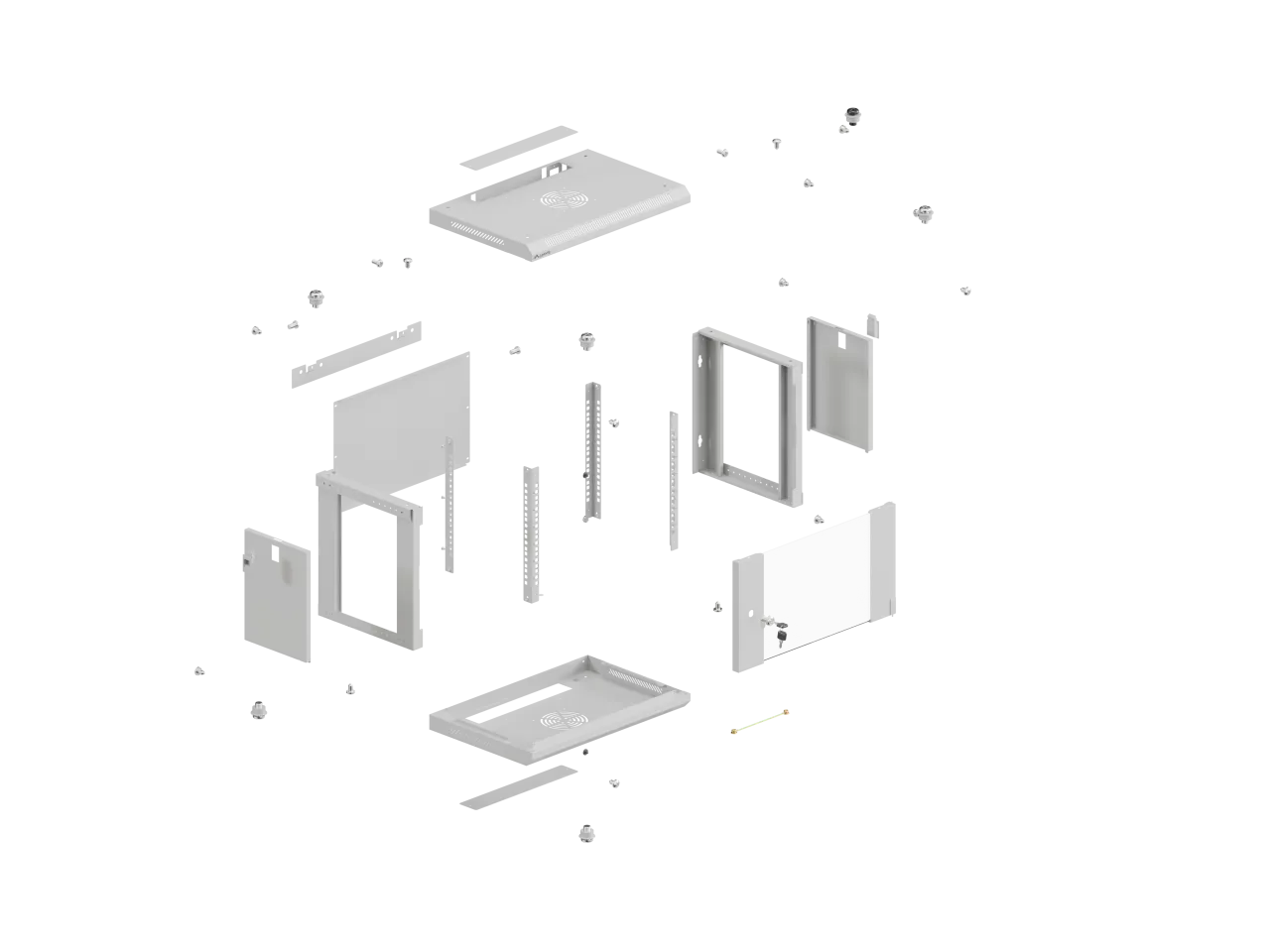 Przeszklone drzwi z przodu oraz dostęp z boków i tyłu szafy przez zdejmowane panele boczne oraz zdejmowany panel tylny oznaczają zarówno wysoką funkcjonalność, jak i zabezpieczenie urządzeń przed przypadkowym wyłączeniem czy uszkodzeniem. Dodatkowo istnieje możliwość montażu szafy bezpośrednio na ścianie (przez otwory w ramie) lub za pomocą specjalnej listwy, co znacznie ułatwia instalację w różnych warunkach.