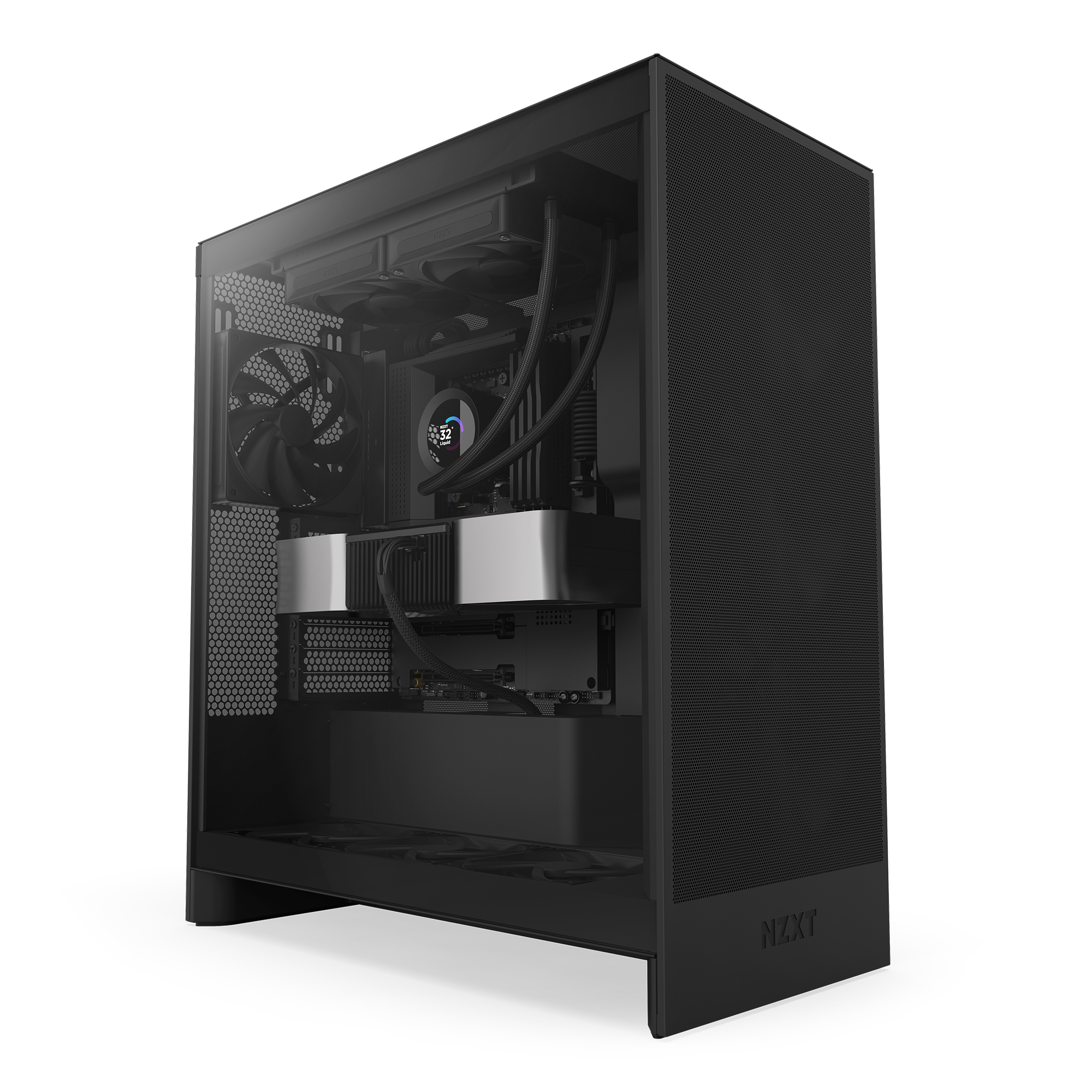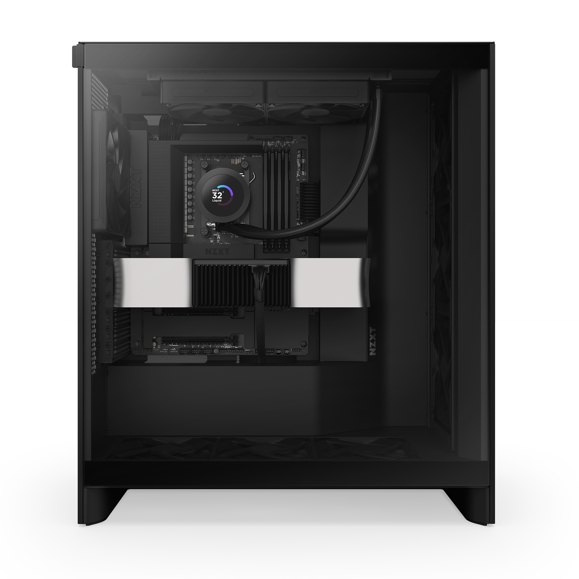 Spersonalizowany ekran LCD: Wyświetlaj w czasie rzeczywistym temperatury systemu, animowane GIF-y, własne obrazy lub integracje z aplikacjami (np. Spotify, YouTube) na jasnym ekranie LCD o przekątnej 1,54” — w pełni konfigurowalnym dzięki oprogramowaniu NZXT CAM.