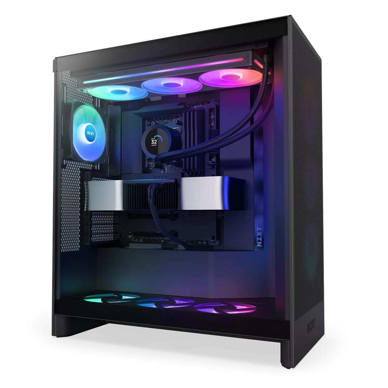 Spersonalizowany ekran LCD: Wyświetlaj w czasie rzeczywistym temperatury systemu, animowane GIF-y, własne obrazy lub integracje z aplikacjami (np. Spotify, YouTube) na jasnym ekranie LCD o przekątnej 1,54” — w pełni konfigurowalnym dzięki oprogramowaniu NZXT CAM.