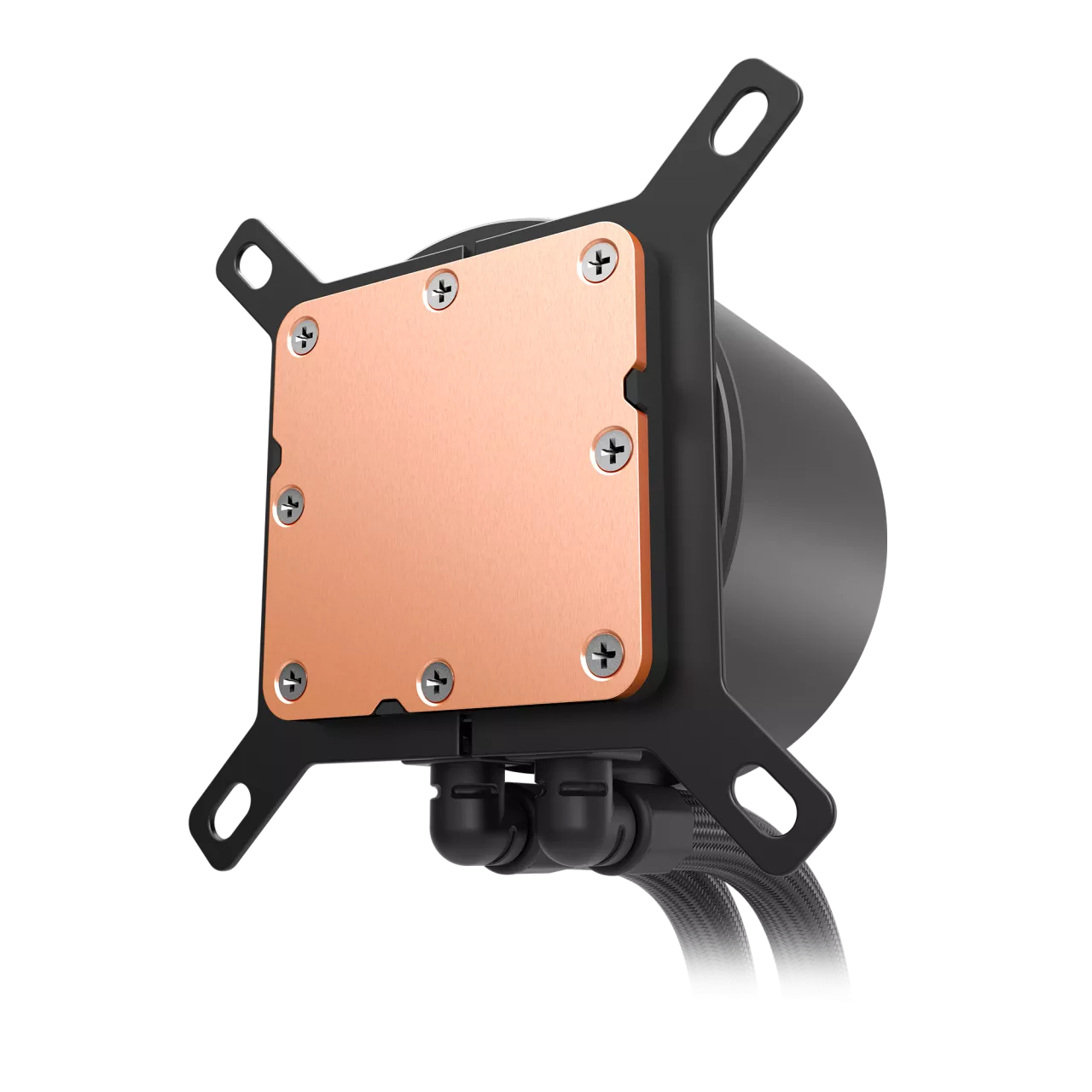 Udoskonalony COLD PLATE: Miedziana płytka z kanałami rozdzielającymi przepływ kieruje ciecz do najgorętszych miejsc procesora, co poprawia transfer ciepła, obniża temperatury i stabilizuje wydajność termiczną.