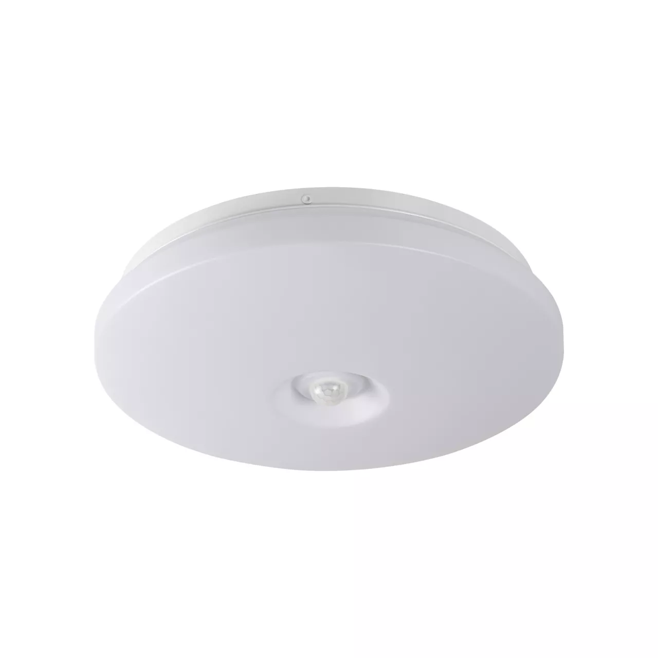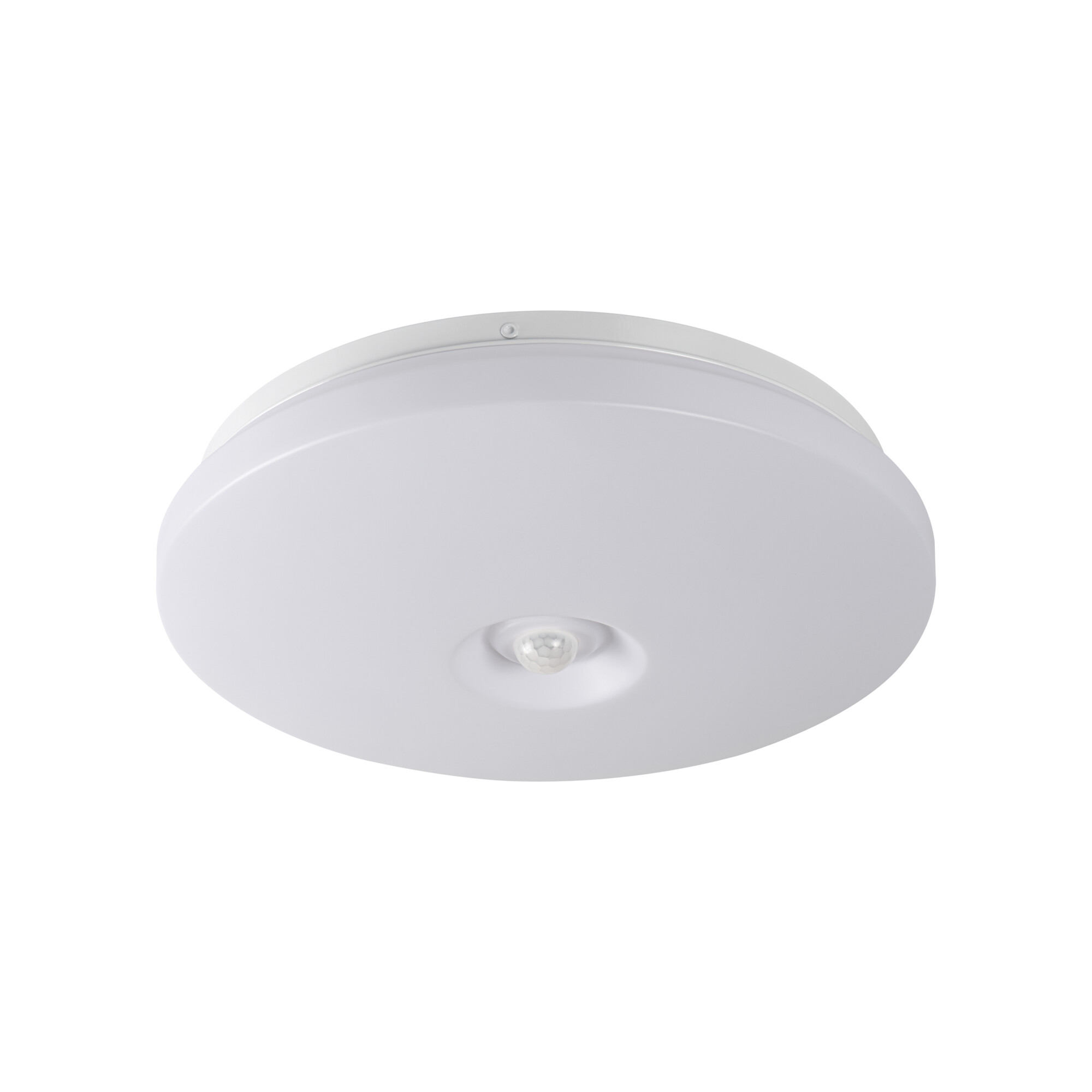 Plafoniera LED, Średnica [mm]: 280, Wysokość [mm]: 65, Typ: PlafonieryTechniczne, Barwa światła: biała, Czas działania czujnika [sekunda-minuta]: 2-2, Częstotliwość znamionowa [Hz]: 50, Ilość cykli wł/wył: ≥20000, Jednolitość barw [SDCM]: 6, Kąt działania czujnika [°]: 360, Kąt świecenia [°]: 120, Klasa ochronności przed porażeniem elektrycznym: I, Kolor: biały, Materiał klosza: tworzywo sztuczne, Materiał obudowy: metal, Miejsce montażu: do nadbudowania na ścianie,do nadbudowania na suficie, Miejsce zastosowania: wewnątrz, Minimalna odległość od oświetlanego obiektu: 0,5m, Moc maksymalna [W]: 12, Możliwość łączenia przelotowego opraw: 1, Możliwość współpracy ze ściemniaczem: nie, Napięcie znamionowe [V]: 220-240 AC, Nastawa poziomu natężenia oświetlenia, przy którym czujnik wykrywa ruch [lx]: 15-2000, Rodzaj czujnika: PIR, Rodzaj diody: LED SMD, Rodzaj przyłącza: kostka samozaciskowa, Skuteczność świetlna lampy [lm/W]: 83, Stopień IP: 20, Strumień świetlny oprawy [lm]: 1000, Temperatura barwowa [K]: 4000, Trwałość [h]: 25000, Współczynnik oddawania barw Ra: 80, Współczynnik zachowania strumienia świetlnego na zakończenie nominalnego okresu trwałości: L70B50, Zakres przekrojów stosowanych przewodów [mm2]: 1-1,5, Zasięg czujnika [m]: 6, Zawartość rtęci: nie, Zintegrowane źródło światła LED: 1, Zastosowana technologia oświetleniowa: LED, Bezkierunkowe lub kierunkowe źródło światła: NDLS, Źródło światła zasilane lub niezasilane napięciem sieciowym: NMLS, Połączone źródło światła (CLS): nie, Źródło światła z możliwością zmiany barwy światła: nie, Źródło światła o wysokiej luminancji: nie, Osłona przeciwolśnieniowa: nie, Funkcja ściemniania: nie, Użyteczny strumień świetlny źródła światła Φuse [lm]: 580, Wartość wskaźnika oddawania barw R9: 0, Współczynnik zachowania strumienia świetlnego: 0,96, Współczynnik trwałości: 0.9, Współrzędne chromatyczności (x): 0,38, Współrzędne chromatyczności (y): 0,38, Dodatkowe informacje: Produkt wyposażony (CP), Liczba modułów: 3, Gwarancja [lat]: 2,
