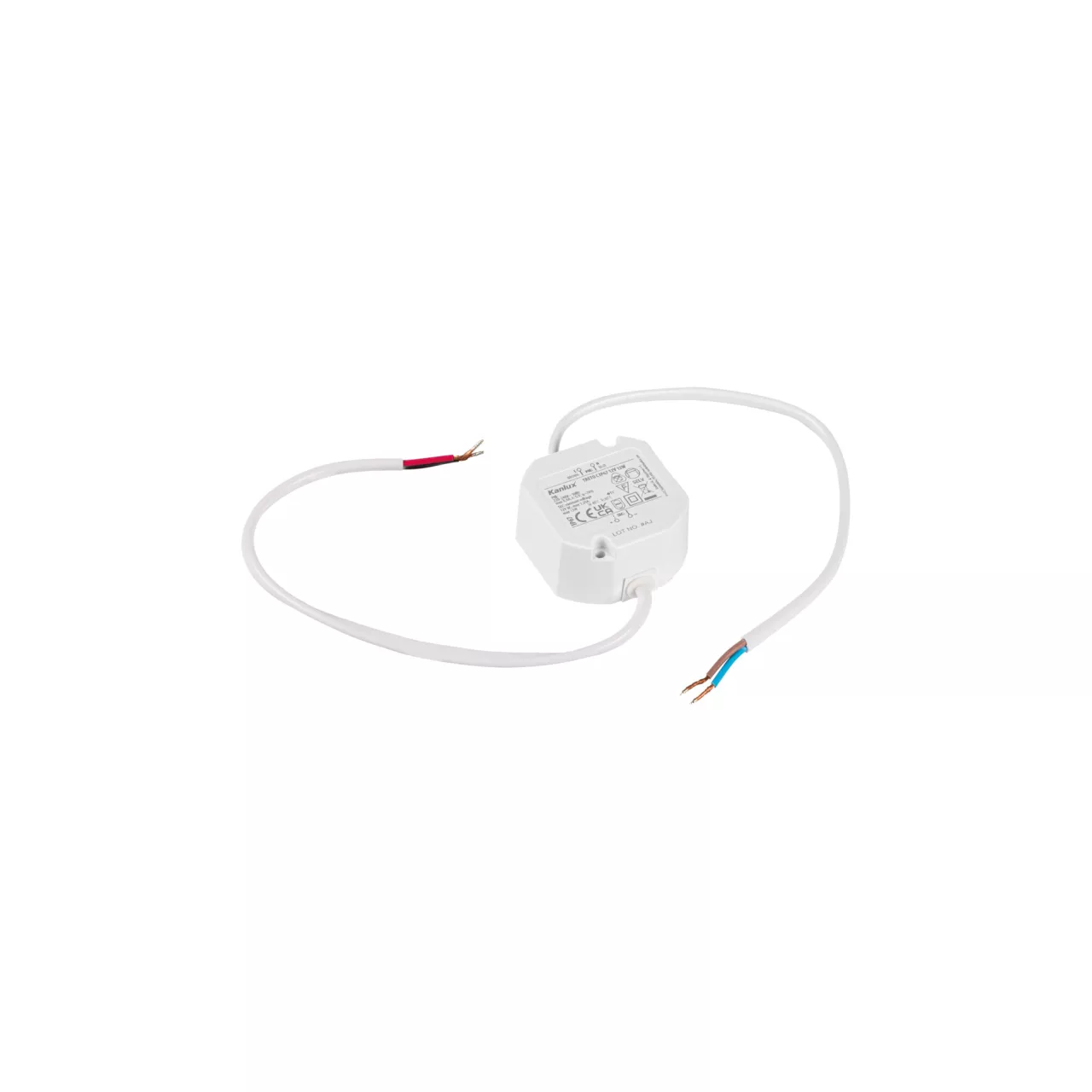 Zasilacz CV, Długość [mm]: 49, Szerokość [mm]: 50, Wysokość [mm]: 27, Typ: Zasilacze, Częstotliwość znamionowa [Hz]: 50, Długość przewodu [m]: 0.19, Klasa ochronności przed porażeniem elektrycznym: II, Kolor: biały, Maksymalna temperatura Ta [°C]: 40, Materiał: tworzywo sztuczne, Miejsce zastosowania: wewnątrz i na zewnątrz, Moc maksymalna [W]: 15, Moc znamionowa [W]: max 15, Możliwość montażu na powierzchniach normalnie palnych: tak, Możliwość współpracy ze ściemniaczem: nie, Napięcie wejściowe - PRI [V]: 220-240, Napięcie wyjściowe - SEC [V]: 12 DC, Napięcie znamionowe [V]: 220-240 AC, Prąd znamionowy [A]: max 0,4, Rodzaj przyłącza: wolne końce przewodów, Rodzaj zasilacza: stałonapięciowy, Stopień IP: 67, Przekrój przewodu [mm2]: PRI: 0,75 / SEC: 0,75, Tc [°C]: 85, Zabezpieczenie przeciążeniowe: 1, Zabezpieczenie zwarciowe: 1, Prąd wyjściowy - SEC [mA]: max 1250, λ: 0,9,