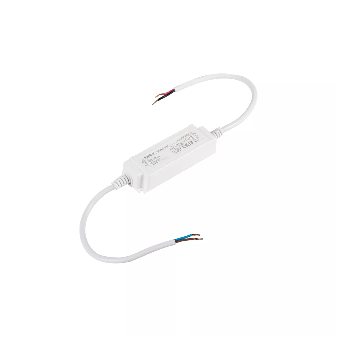 Zasilacz CV, Długość [mm]: 121, Szerokość [mm]: 37, Wysokość [mm]: 26, Typ: Zasilacze, Częstotliwość znamionowa [Hz]: 50, Długość przewodu [m]: 0.19, Klasa ochronności przed porażeniem elektrycznym: II, Kolor: biały, Maksymalna temperatura Ta [°C]: 45, Materiał: tworzywo sztuczne, Miejsce zastosowania: wewnątrz i na zewnątrz, Moc maksymalna [W]: 40, Moc znamionowa [W]: 16-40, Możliwość montażu na powierzchniach normalnie palnych: tak, Możliwość współpracy ze ściemniaczem: nie, Napięcie wejściowe - PRI [V]: 220-240, Napięcie wyjściowe - SEC [V]: 12 DC, Napięcie znamionowe [V]: 220-240 AC, Prąd znamionowy [A]: max 0,2, Rodzaj przyłącza: wolne końce przewodów, Rodzaj zasilacza: stałonapięciowy, Stopień IP: 67, Przekrój przewodu [mm2]: PRI: 1 / SEC: 1, Tc [°C]: 85, Zabezpieczenie przeciążeniowe: 1, Zabezpieczenie zwarciowe: 1, Prąd wyjściowy - SEC [mA]: max 3330, λ: 0,9,