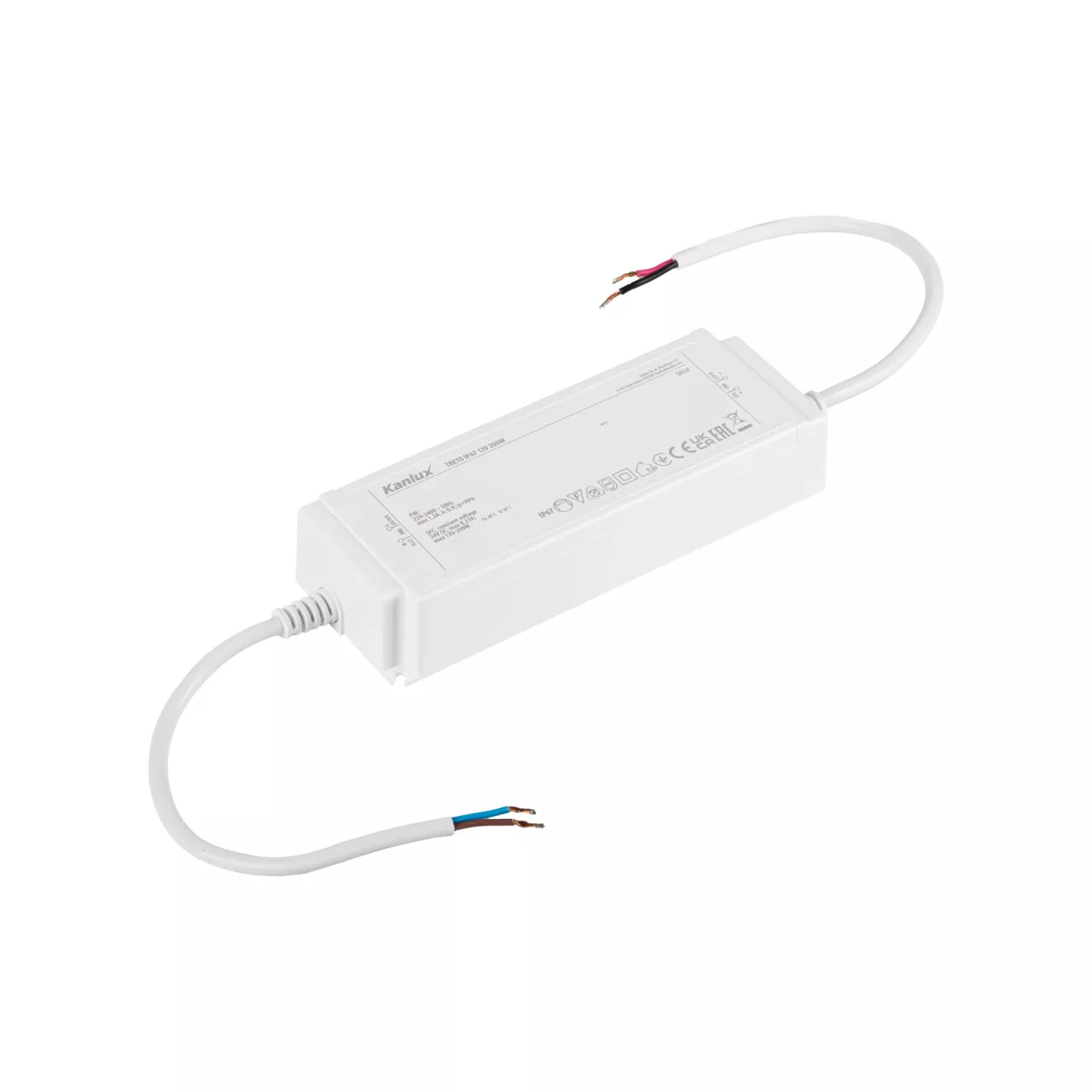 Zasilacz CV, Długość [mm]: 193, Szerokość [mm]: 68, Wysokość [mm]: 37, Typ: Zasilacze, Częstotliwość znamionowa [Hz]: 50, Długość przewodu [m]: 0.19, Klasa ochronności przed porażeniem elektrycznym: II, Kolor: biały, Maksymalna temperatura Ta [°C]: 40, Materiał: tworzywo sztuczne, Miejsce zastosowania: wewnątrz i na zewnątrz, Moc maksymalna [W]: 200, Moc znamionowa [W]: 120-200, Możliwość montażu na powierzchniach normalnie palnych: tak, Możliwość współpracy ze ściemniaczem: nie, Napięcie wejściowe - PRI [V]: 220-240, Napięcie wyjściowe - SEC [V]: 24 DC, Napięcie znamionowe [V]: 220-240 AC, Prąd znamionowy [A]: max 1,3, Rodzaj przyłącza: wolne końce przewodów, Rodzaj zasilacza: stałonapięciowy, Stopień IP: 67, Przekrój przewodu [mm2]: PRI: 1 / SEC: 1,5, Tc [°C]: 85, Zabezpieczenie przeciążeniowe: 1, Zabezpieczenie zwarciowe: 1, Prąd wyjściowy - SEC [mA]: max 8330, λ: 0,9,
