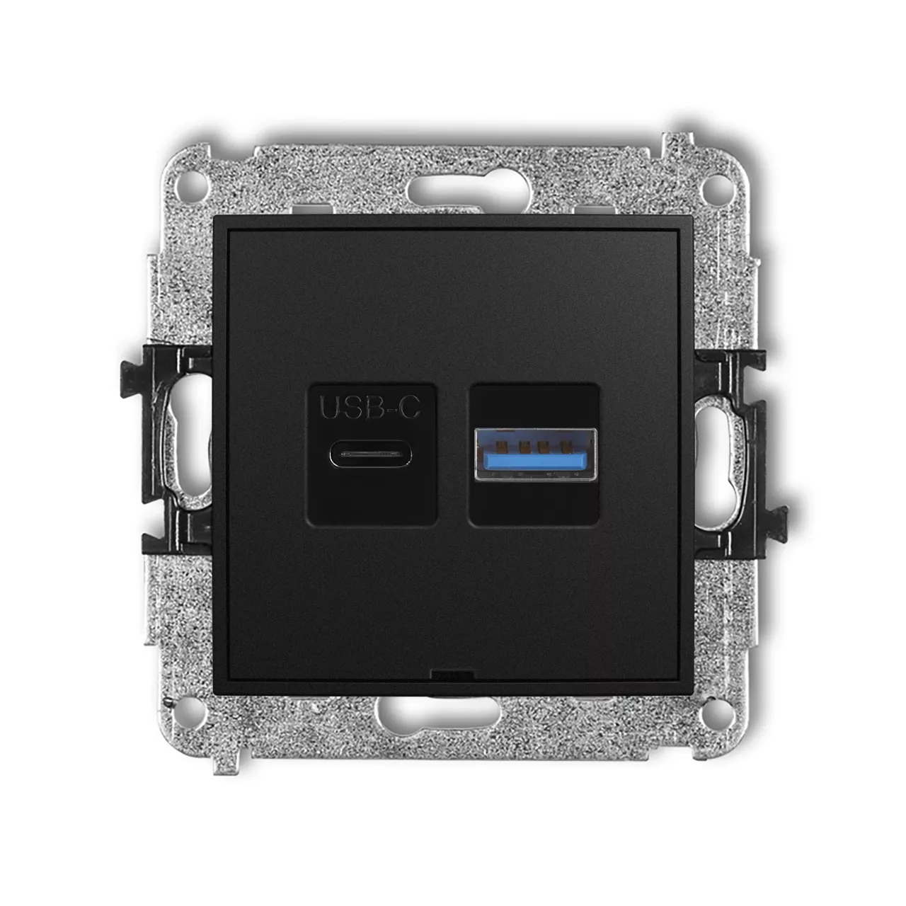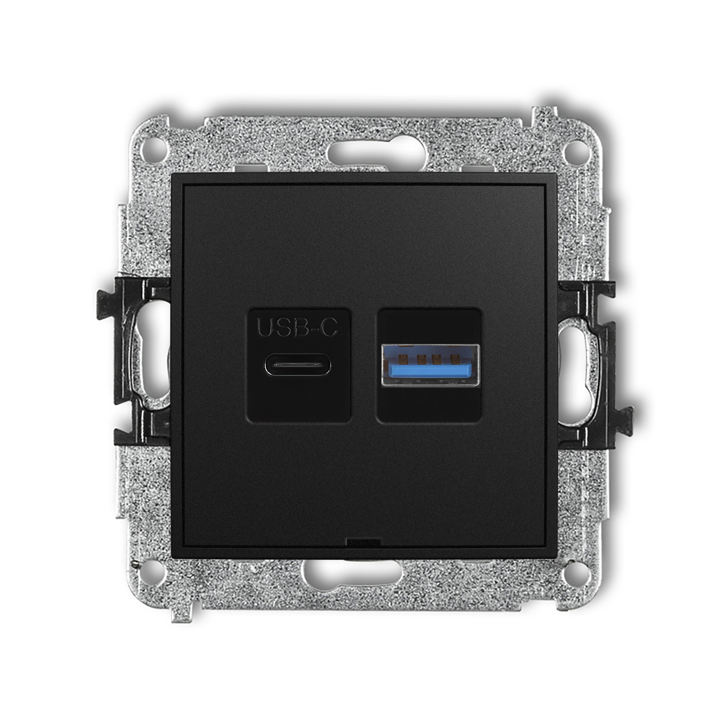 ICON Mechanizm ładowarki USB podwójnej USB C + USB A, 30W max., bez pola opisowego czarny mat