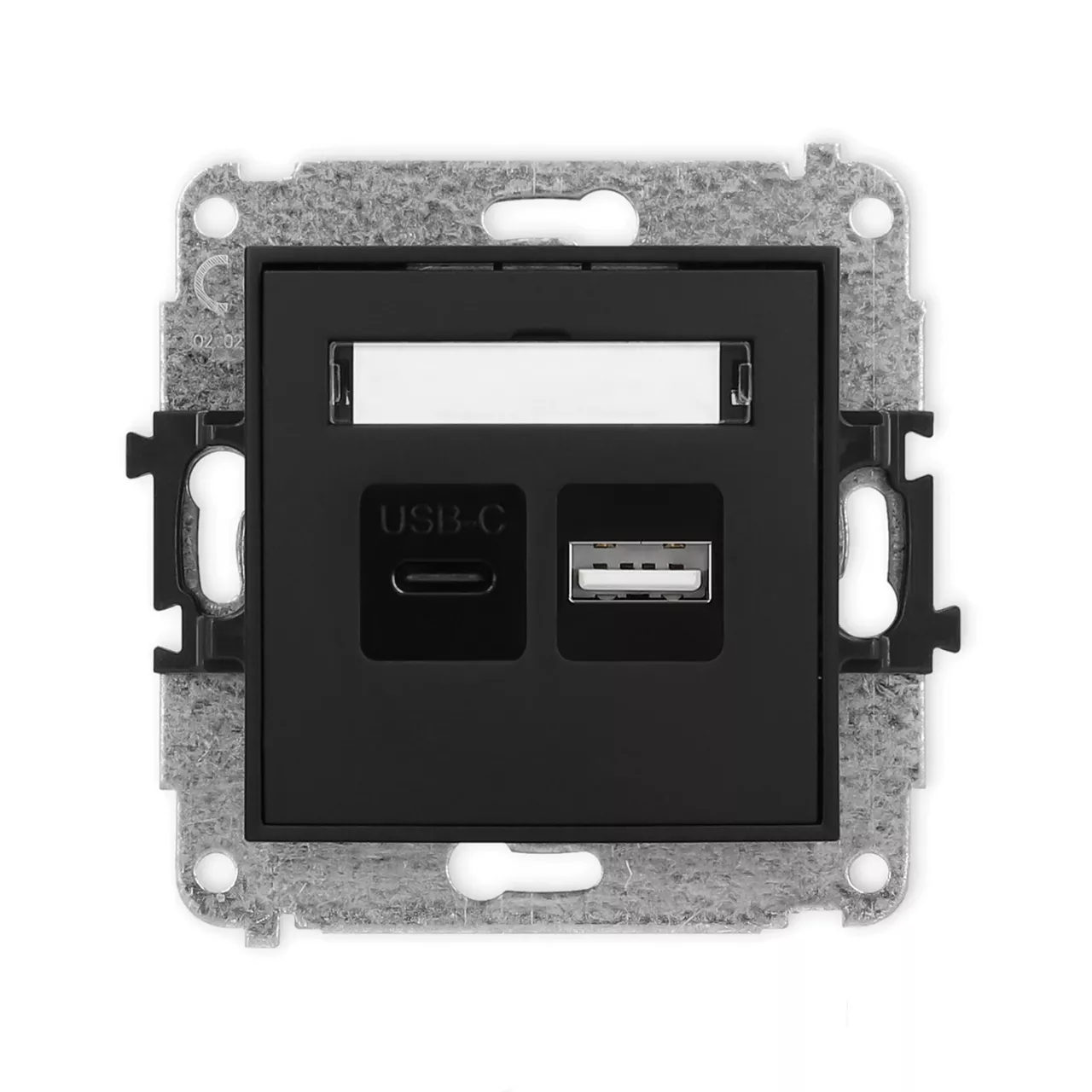 MINI Mechanizm ładowarki USB podwójnej USB C + USB A, 30W max. czarny mat