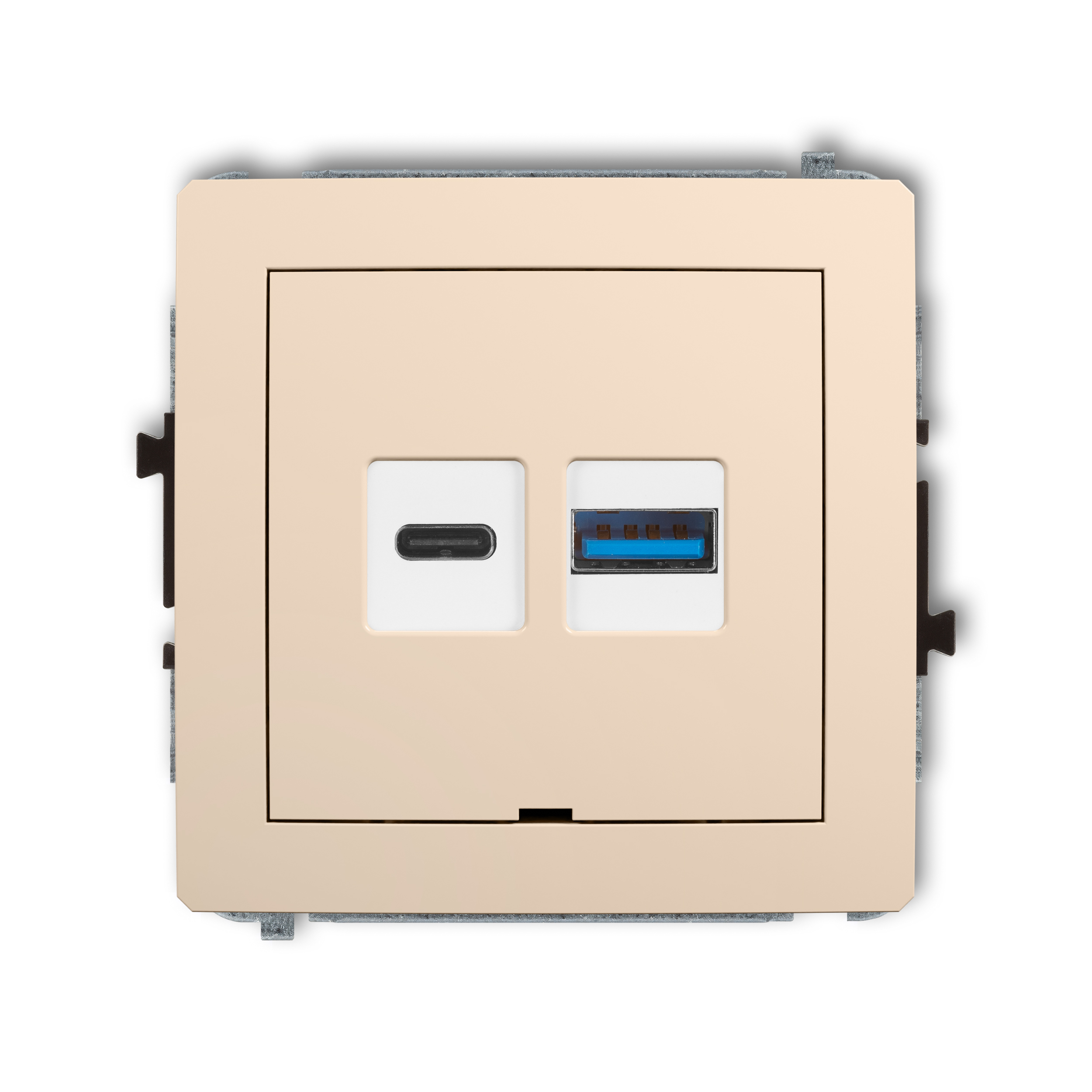 DECO Mechanizm ładowarki USB podwójnej USB C + USB A, 30W max., bez pola opisowego beżowy