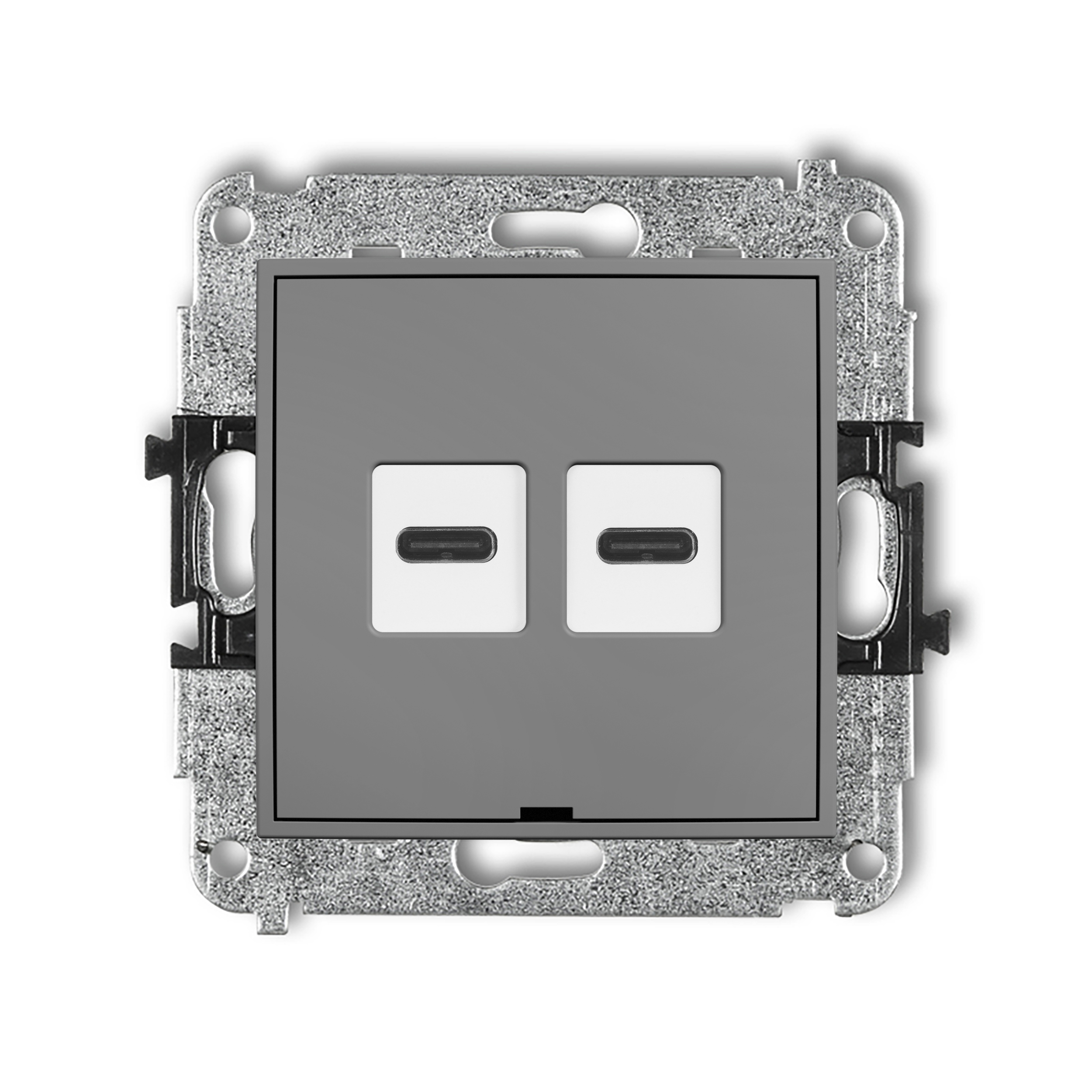 ICON Mechanizm ładowarki USB podwójnej 2xUSB C, 30W max., bez pola opisowego szary mat