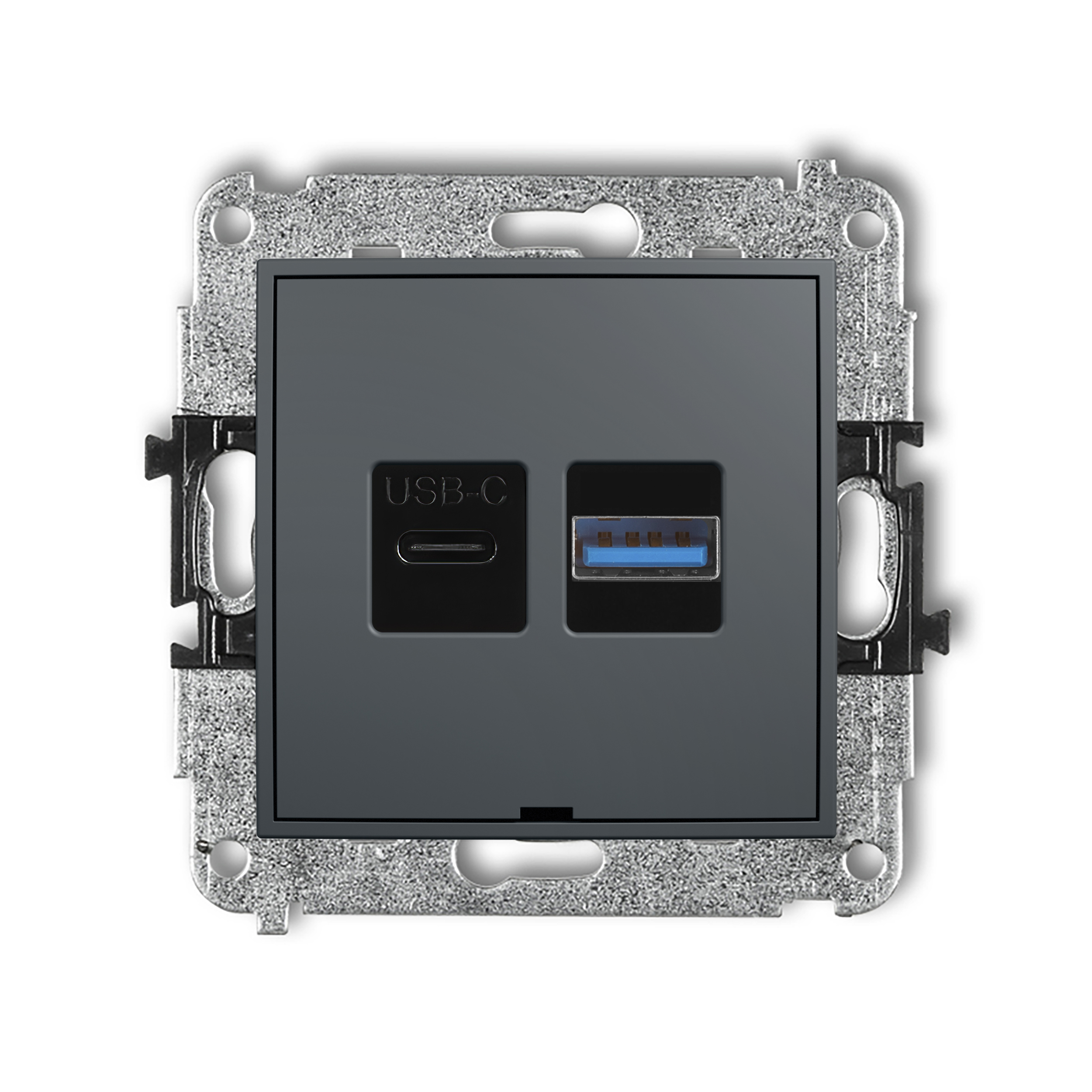 ICON Mechanizm ładowarki USB podwójnej USB C + USB A, 30W max., bez pola opisowego grafitowy mat