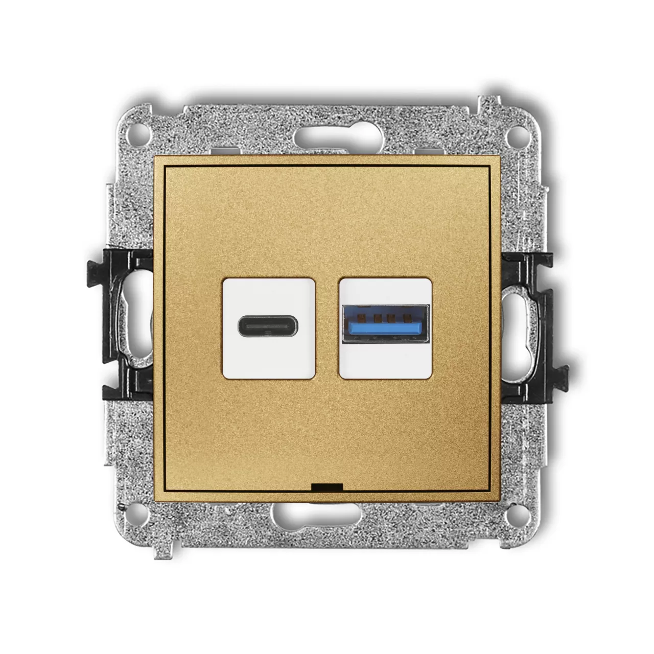 ICON Mechanizm ładowarki USB podwójnej USB C + USB A, 30W max., bez pola opisowego złoty