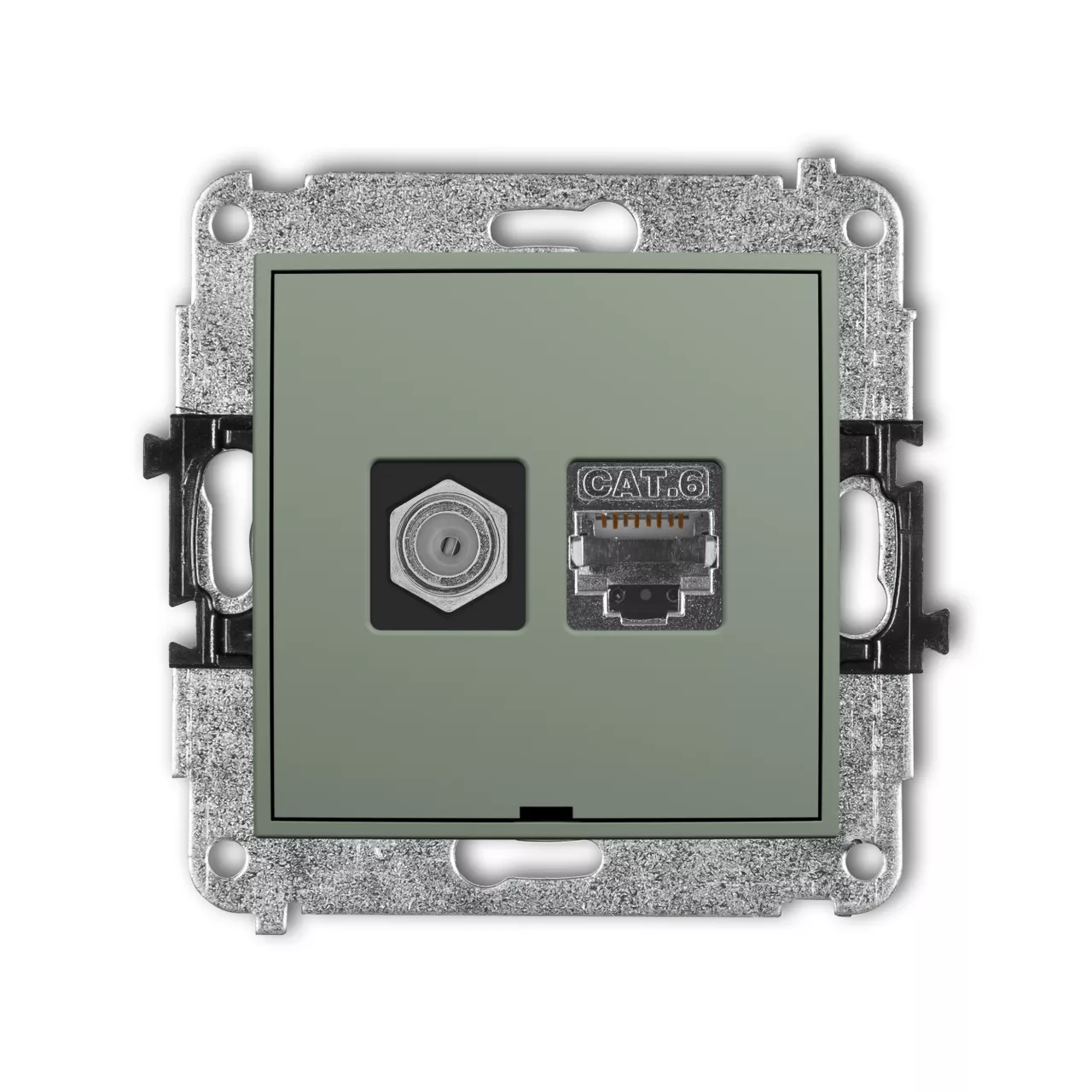 ICON Mechanizm gniazda antenowego poj. typu F (SAT) + gniazda komp. poj. 1xRJ45, kat. 6 ekranowany, 8-stykowy, bez pola opisowego szałwiowy