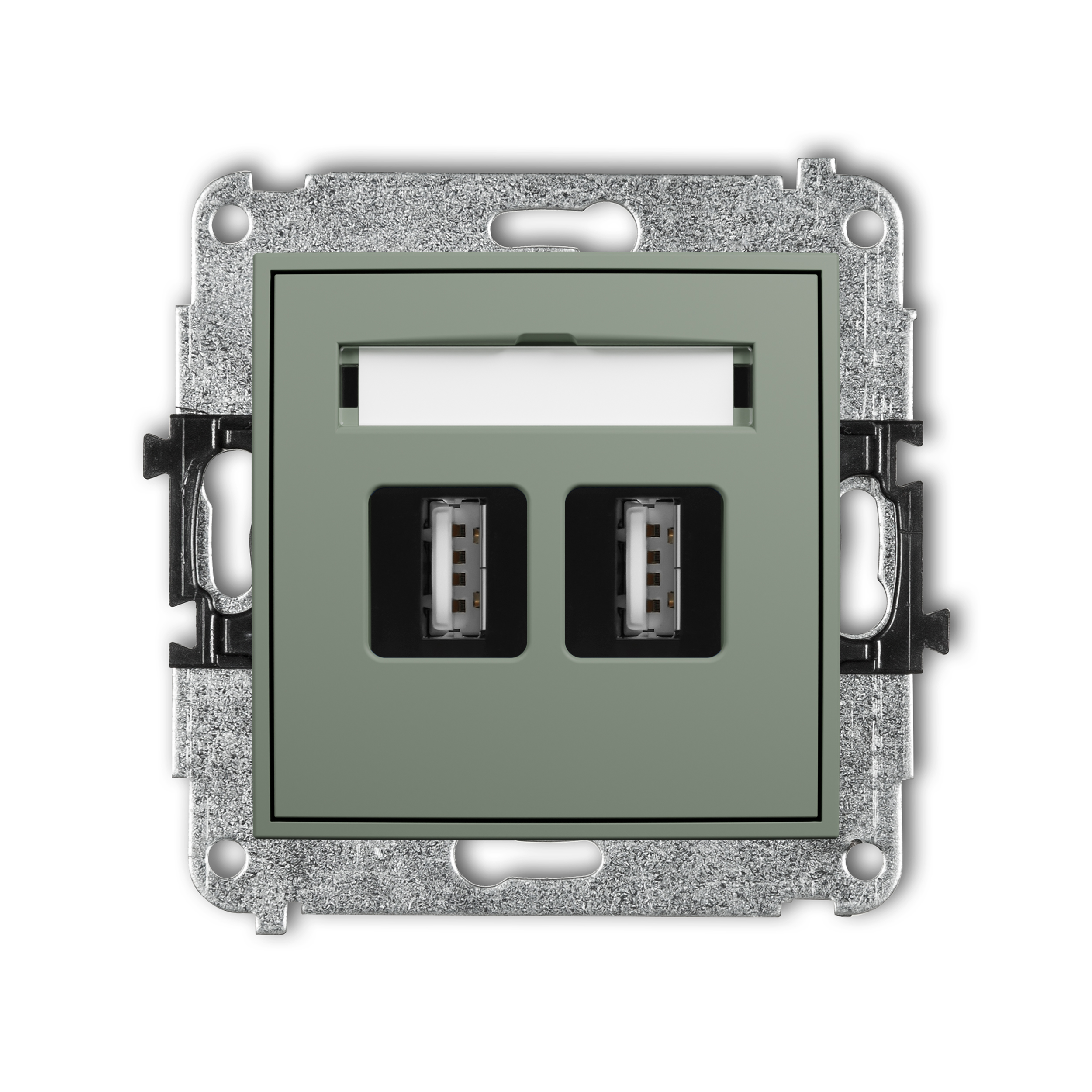 ICON Mechanizm gniazda podwójnego 2xUSB A-A 2.0 szałwiowy