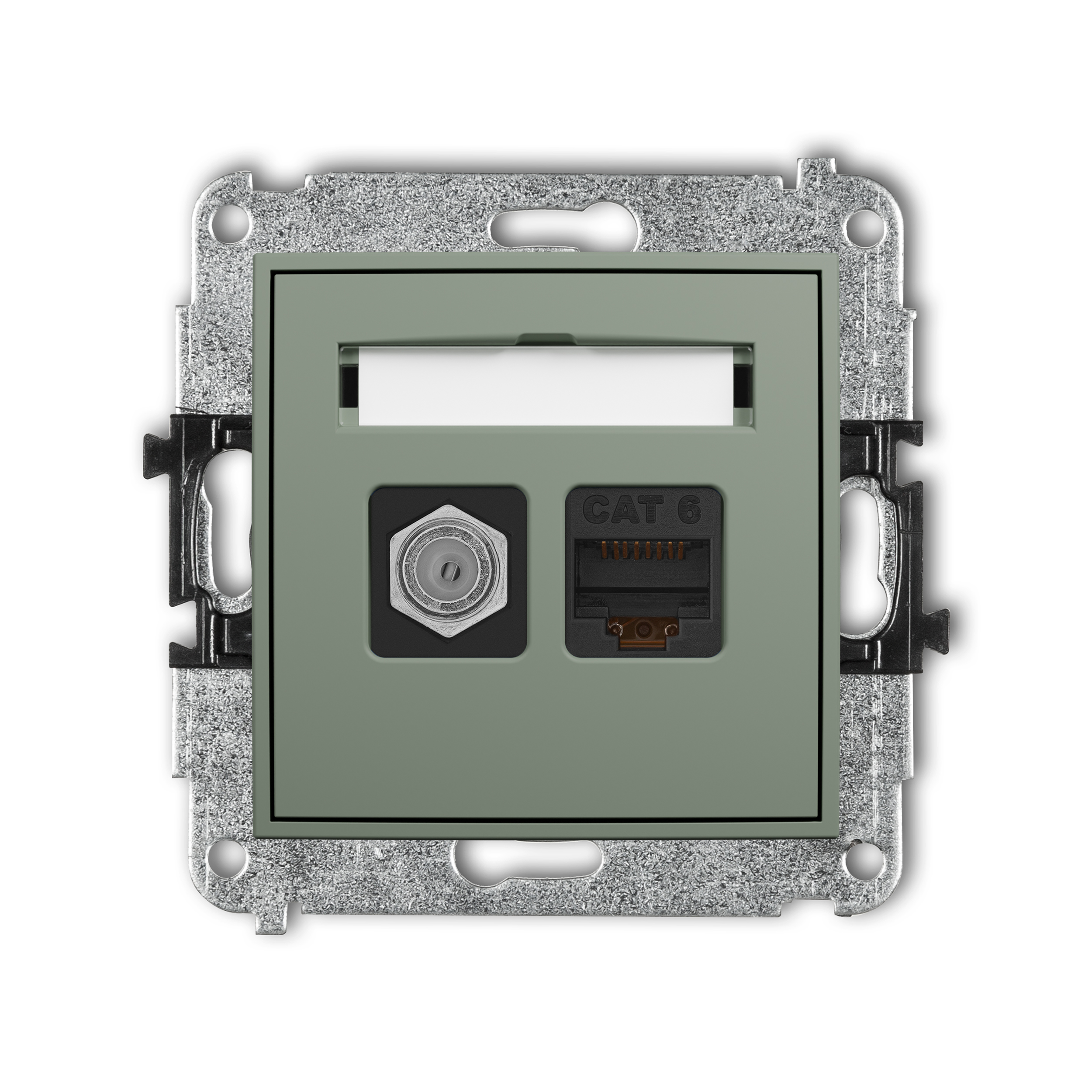MINI Mechanizm gniazda antenowego poj. typu F (SAT) + gniazda komp. poj. 1xRJ45, kat. 6, 8-stykowy szałwiowy