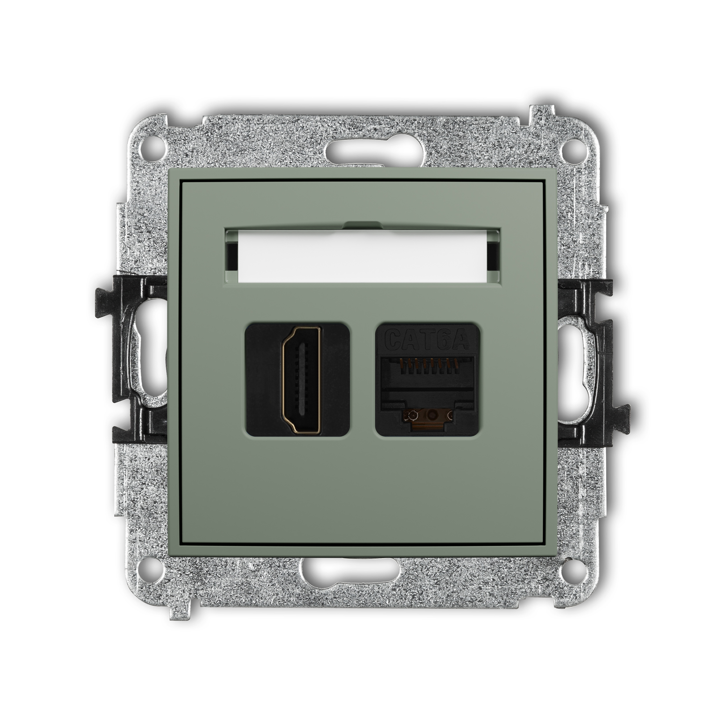 MINI Mechanizm gniazda pojedynczego HDMI 2.1, 8K + gniazda komp. poj. 1xRJ45, kat. 6A, 8-stykowy szałwiowy