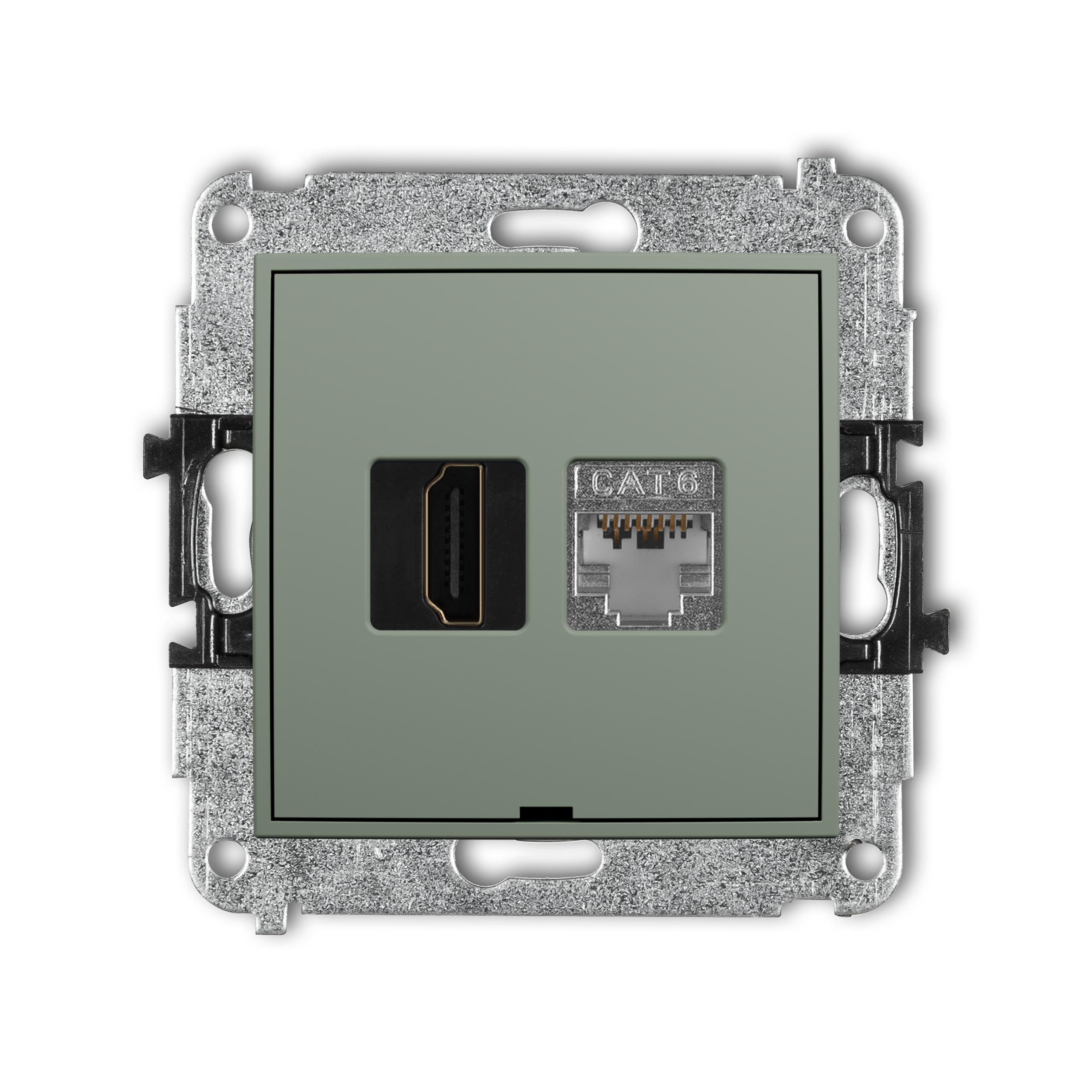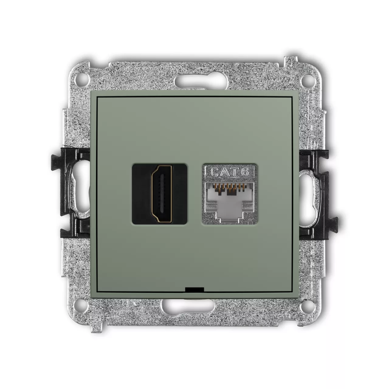 MINI Mechanizm gniazda pojedynczego HDMI 2.0, 4K + gniazda komp. poj. 1xRJ45, kat. 6, ekranowany, 8-stykowy, bez pola opisowego szałwiowy