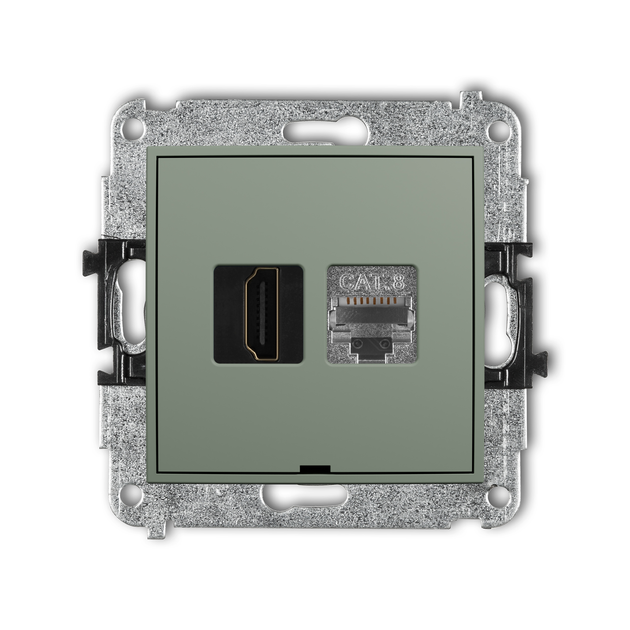 MINI Mechanizm gniazda pojedynczego HDMI 2.1, 8K + gniazda komp. poj. 1xRJ45, kat. 8, ekranowany, 8-stykowy, bez pola opisowego szałwiowy