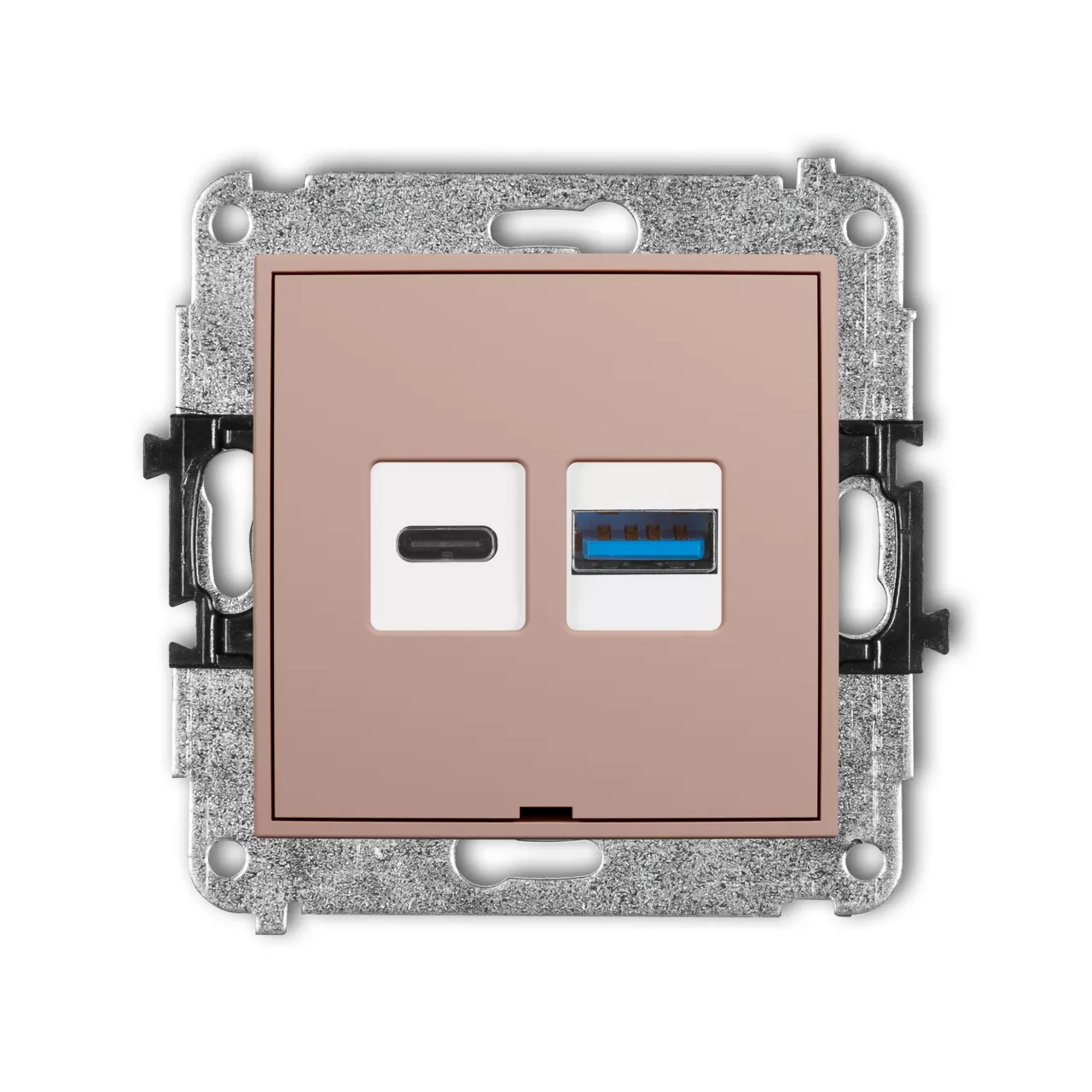 ICON Mechanizm ładowarki USB podwójnej USB C + USB A, 30W max., bez pola opisowego łososiowy